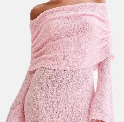 Cyflymder Women Beach Vacation Sexy Mini Skirt Luxury Knitwear Openwork Scoop Neck Long Sleeves Dress Black Dress Summer Dress Mini
