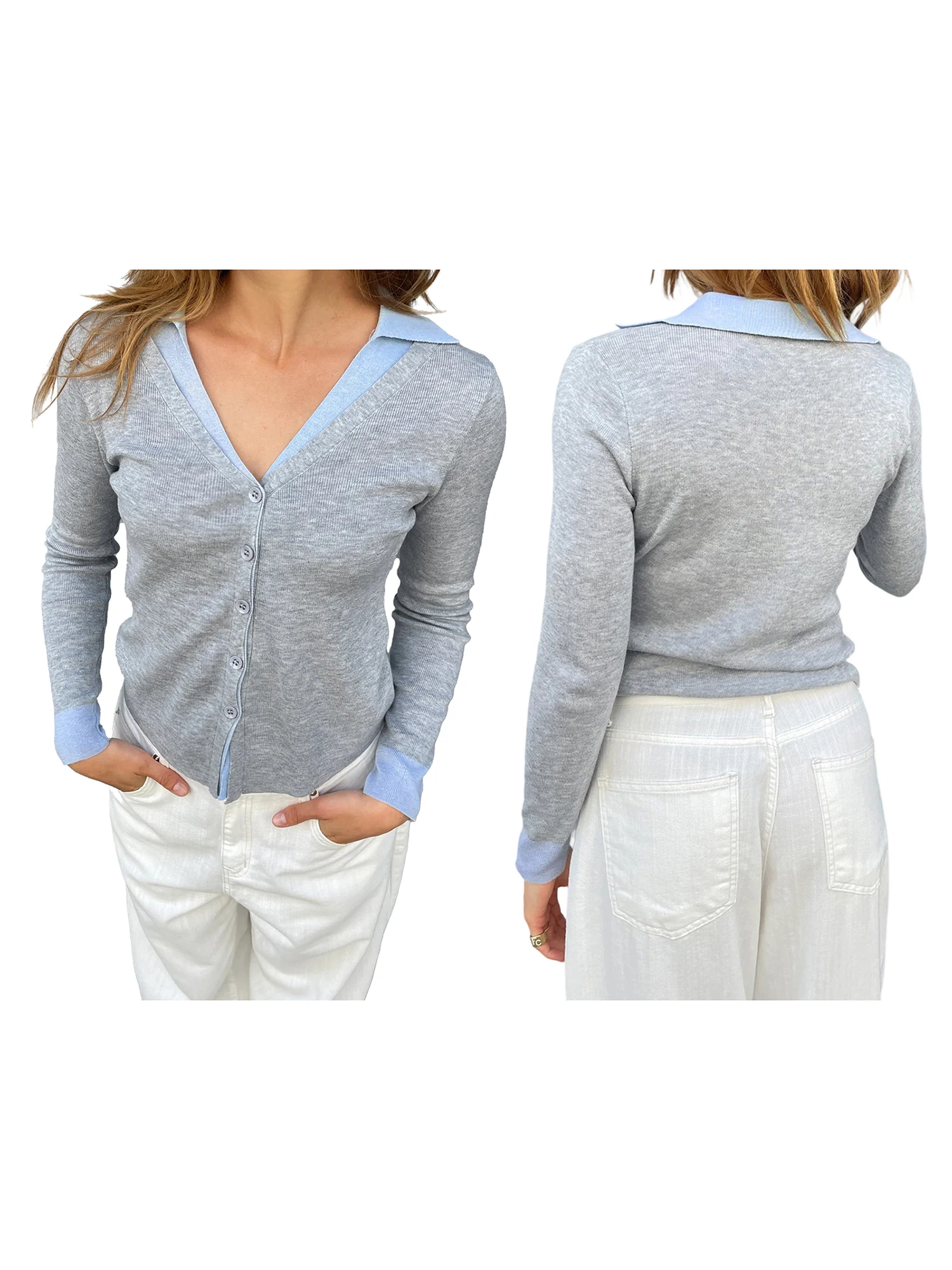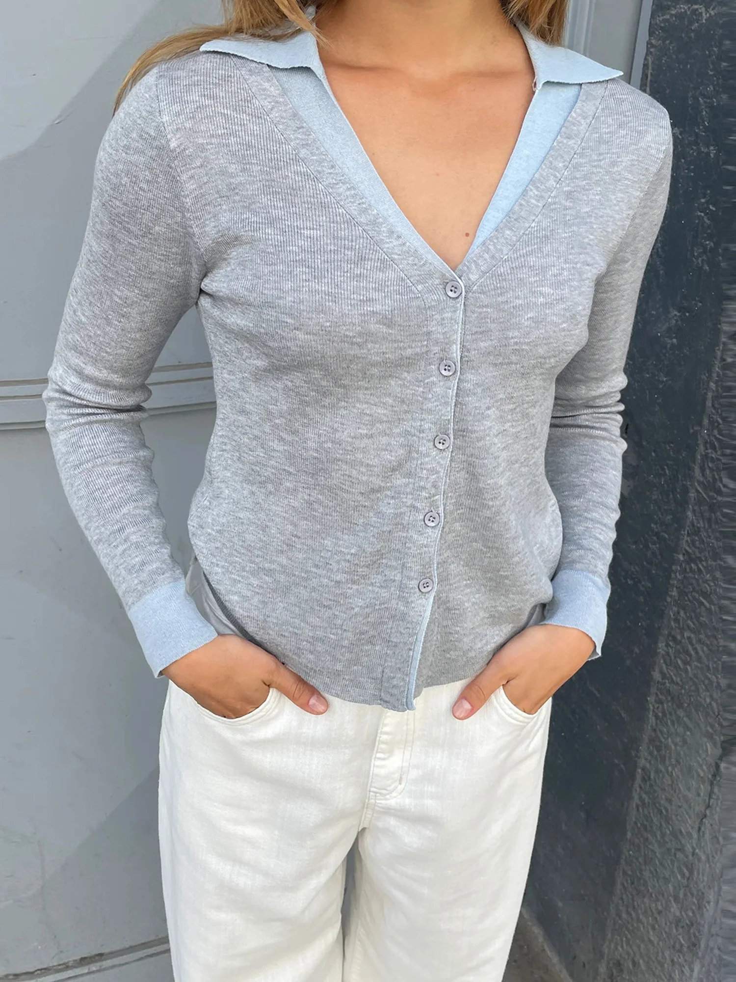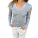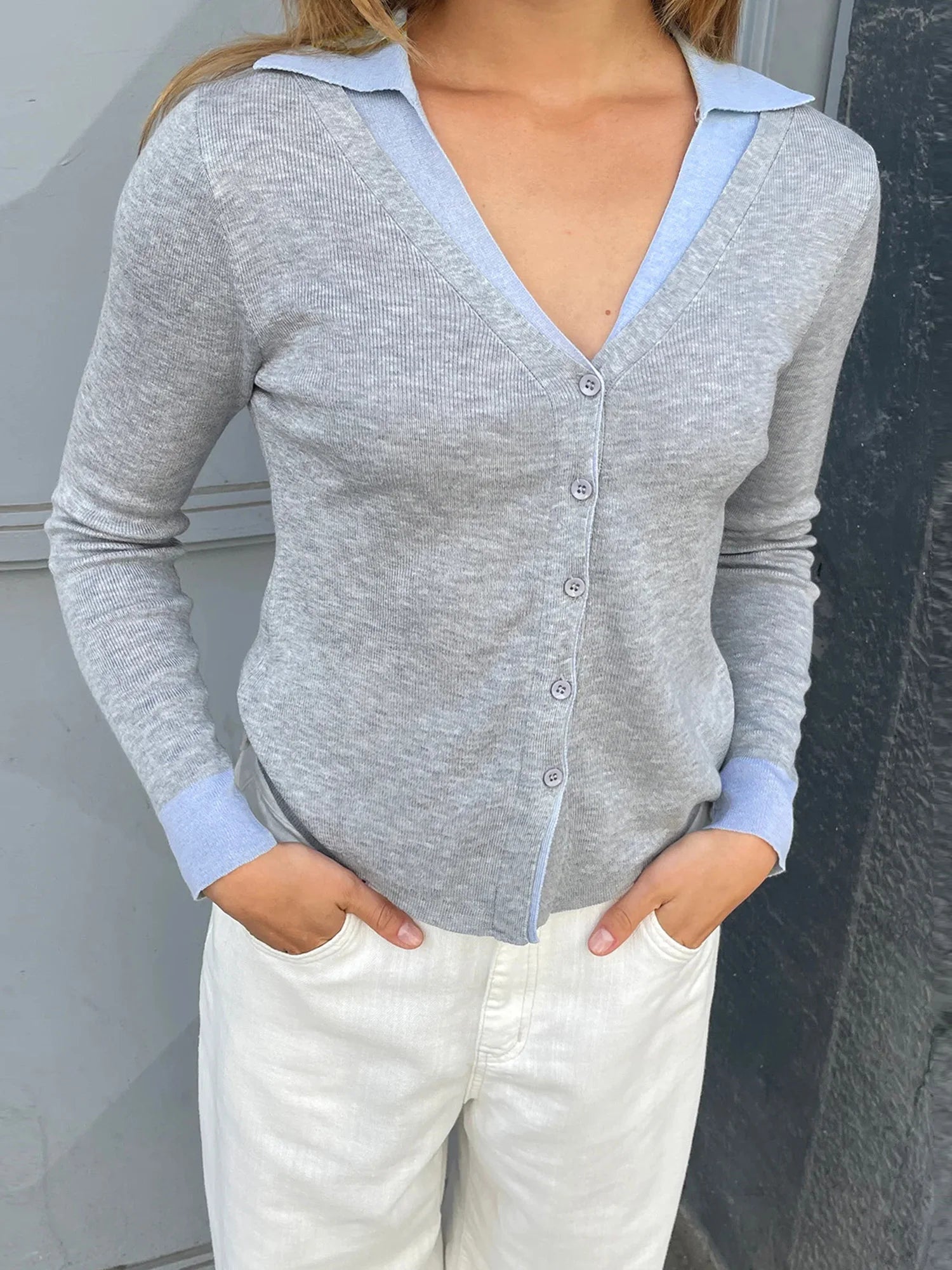 Cyflymder Women Blouses Stylish Long Sleeve V-neck Button Down Patchwork Top with Fit Design for Chic Street Style and Everyday Wear