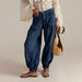 Cyflymder Women Cargo Jeans Casual High Rise Zipper Pocket Denim Bloomers Pants Loose Vintage Streetwear Ruched Basic Jeans Trousers