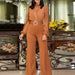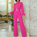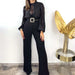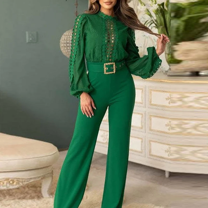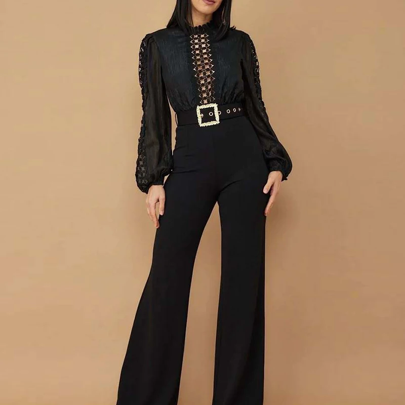 Cyflymder Women Casual O-neck Long Sleeve Party Romper Elegant Lace-Up Belt Waist Solid Playsuits Fashion Patchwork Hollow Long Jumpsuit