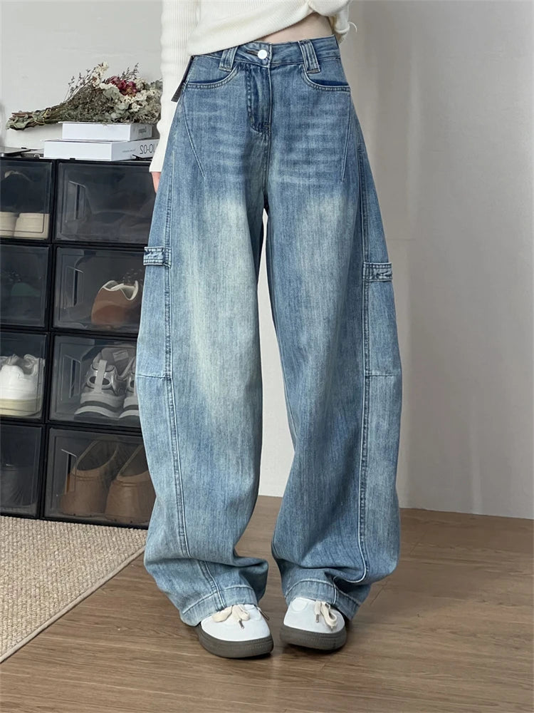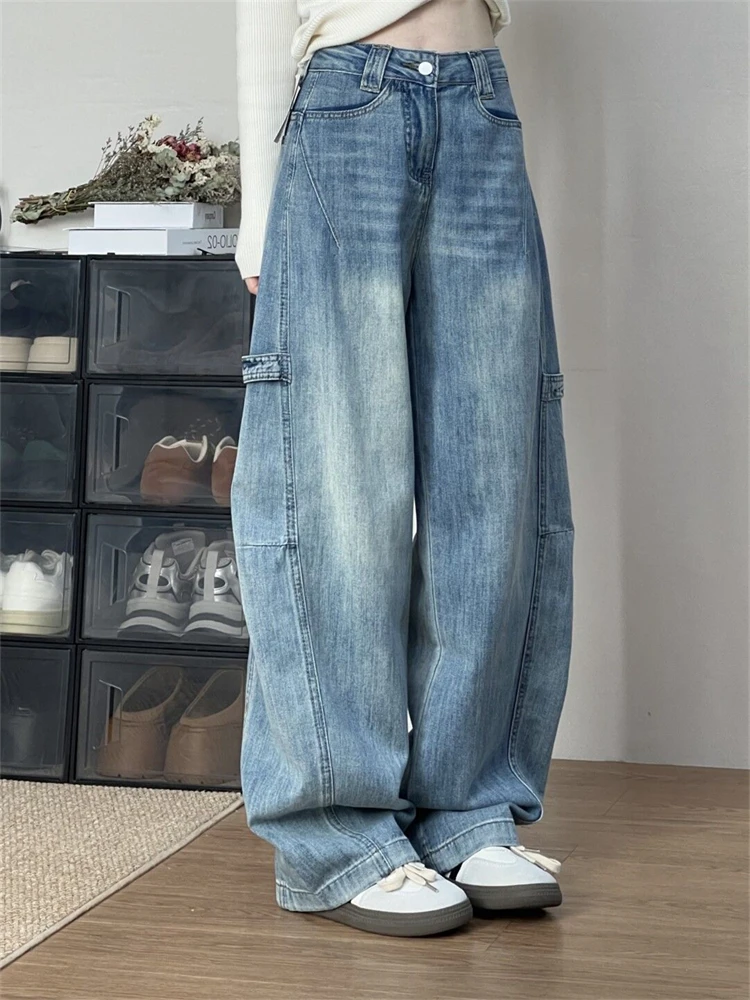 Cyflymder Women' Curved Straight Wide Leg Light Blue Jeans Young Girl Denim Trousers Vintage Street Style Bottoms Female High Waisted Pant