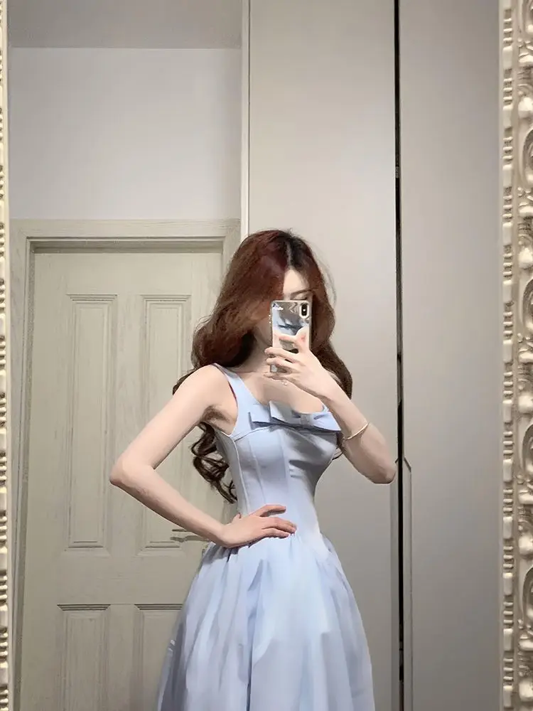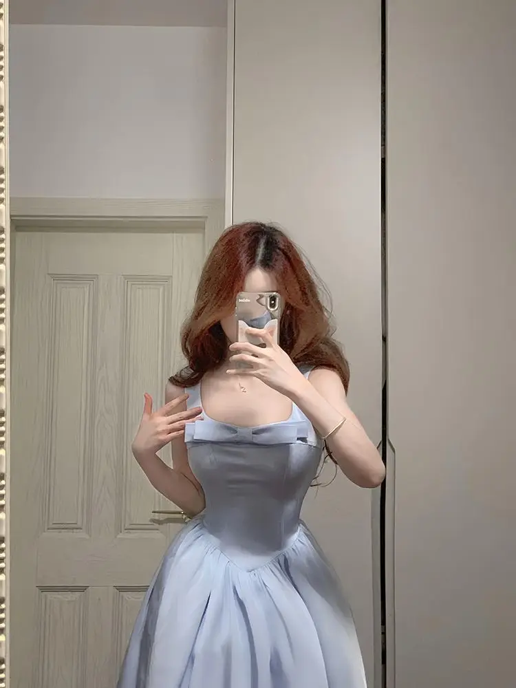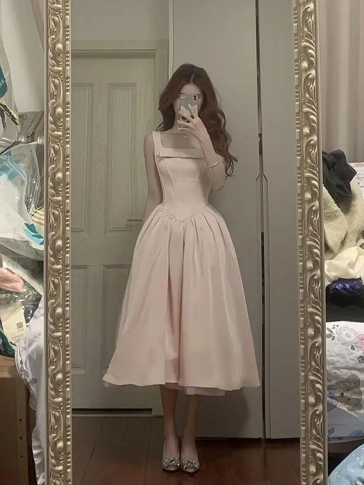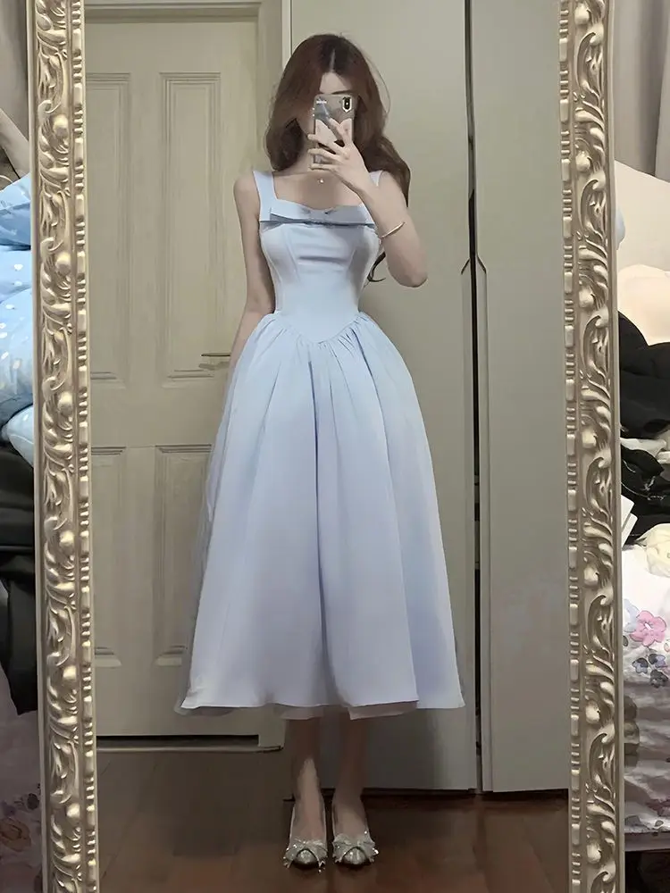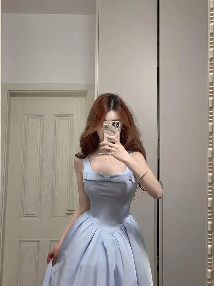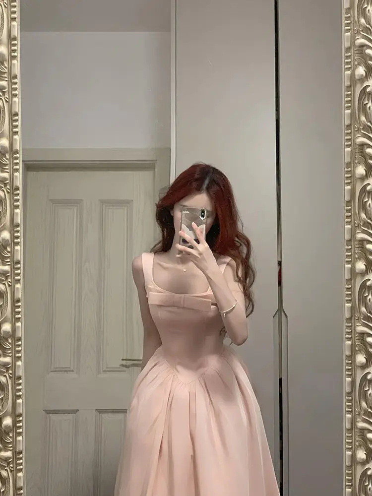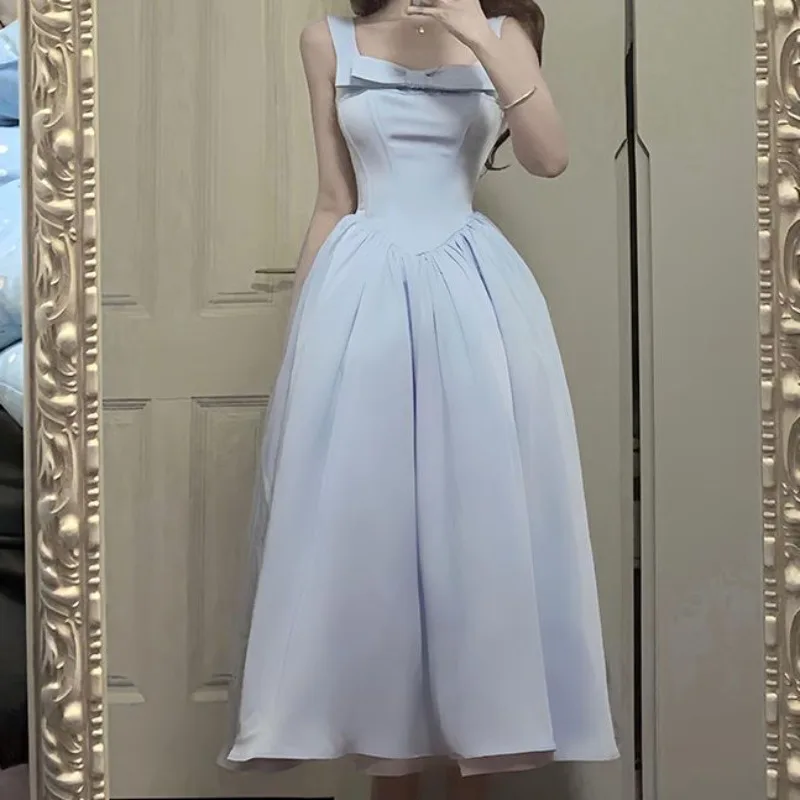 Cyflymder Women Dresses Bow Square Collar Sleeveless Spring Summer Elegant Sweet French Style Chic Party Dress Ladies Princess