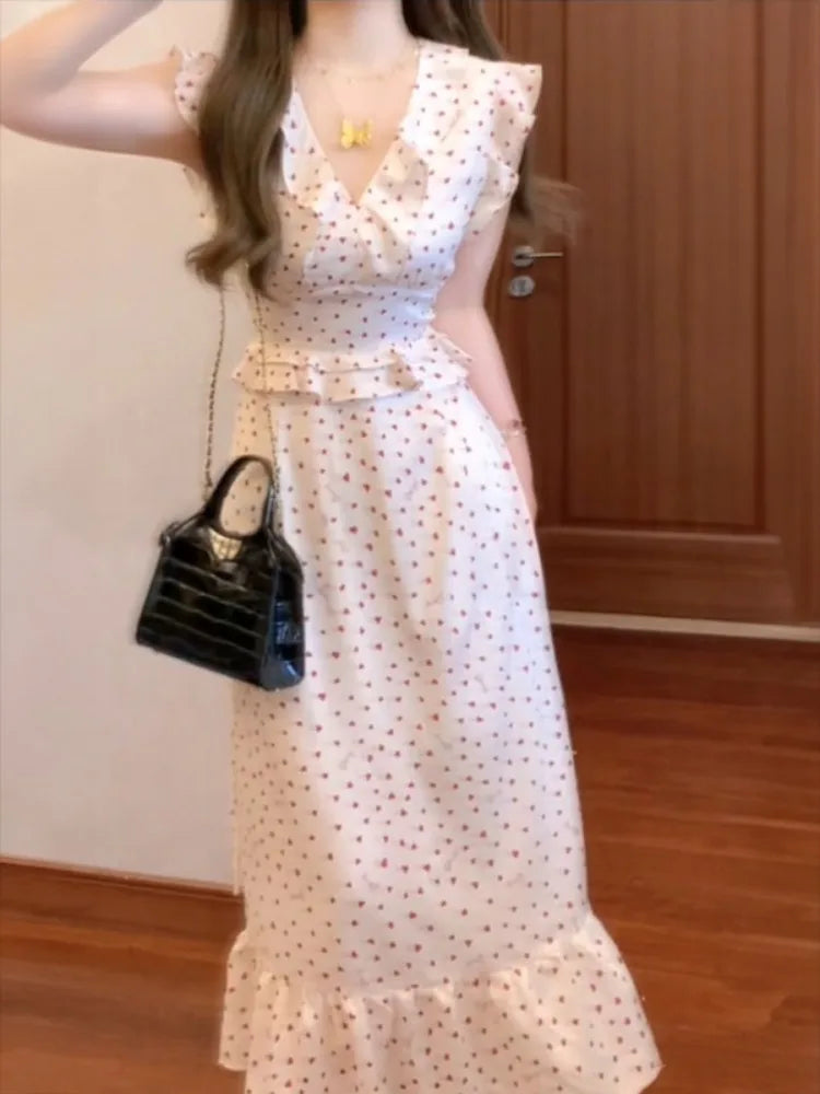 Cyflymder Women Dresses Sweet Flying Sleeve Ruffles Patchwork Polka Dot French Style Elegant Mermaid Dress Female Fashion