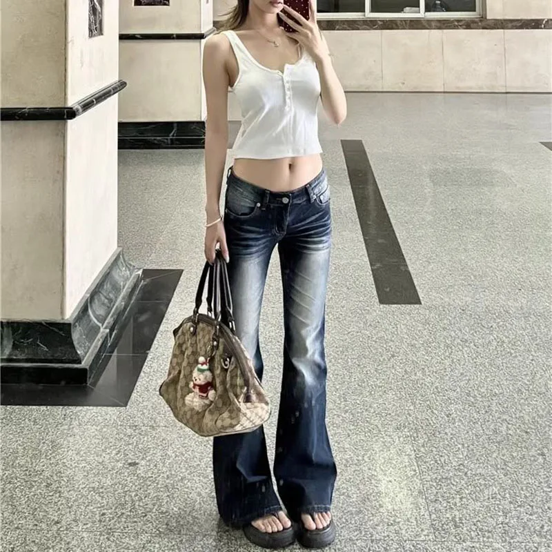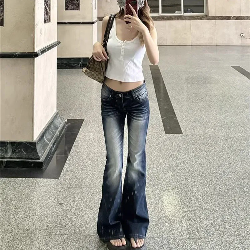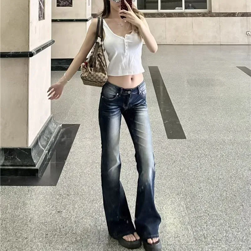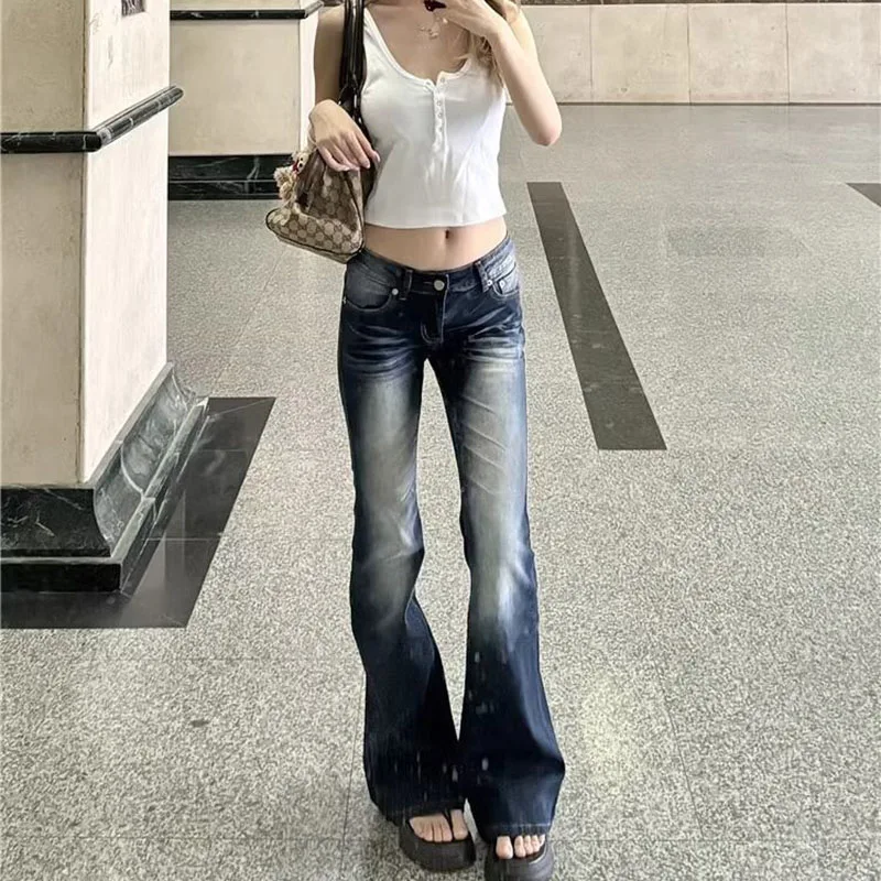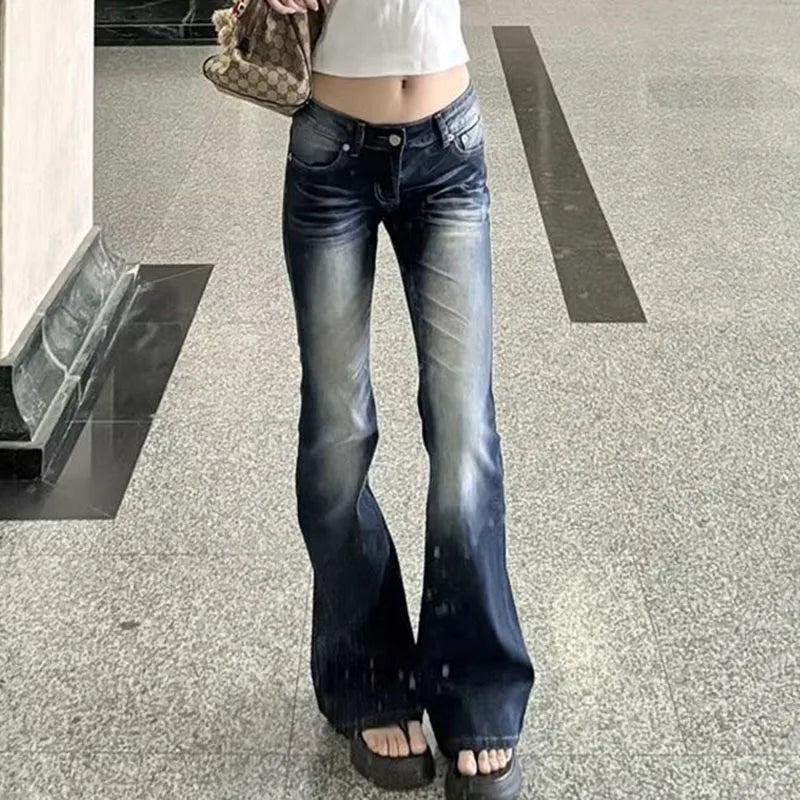 Cyflymder Women Fashion Washed Denim Flares Pants Korean Style Low-Waist Slimming Wide Leg Jeans Female Streetwear Sexy Slim Y2K Trousers
