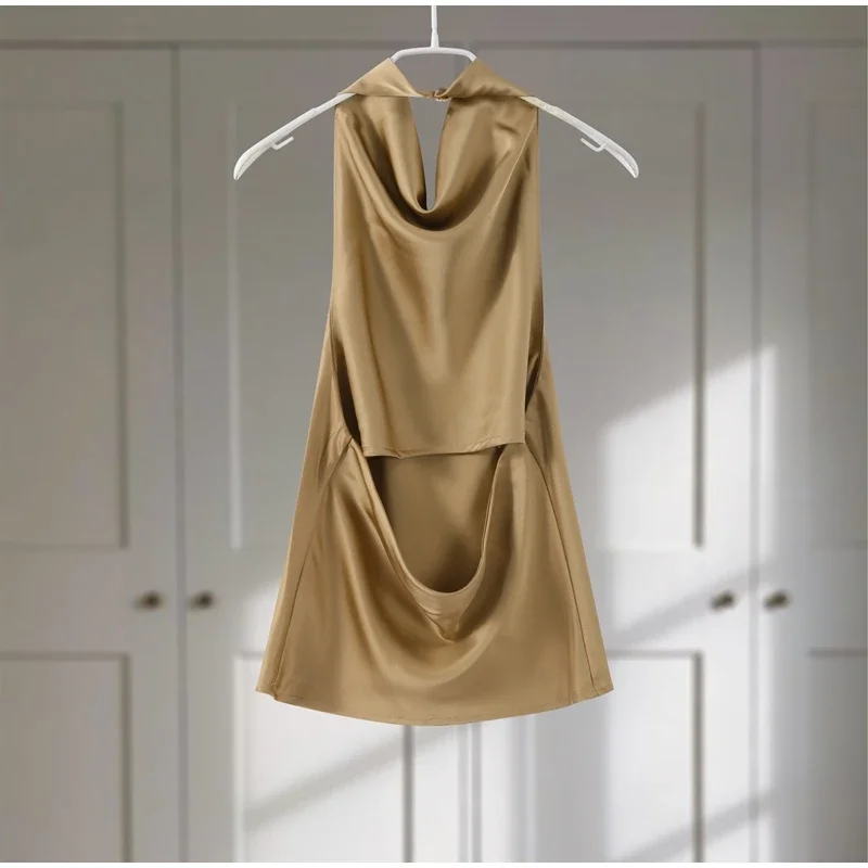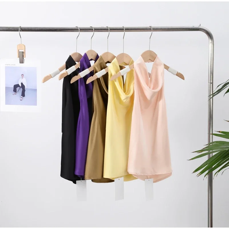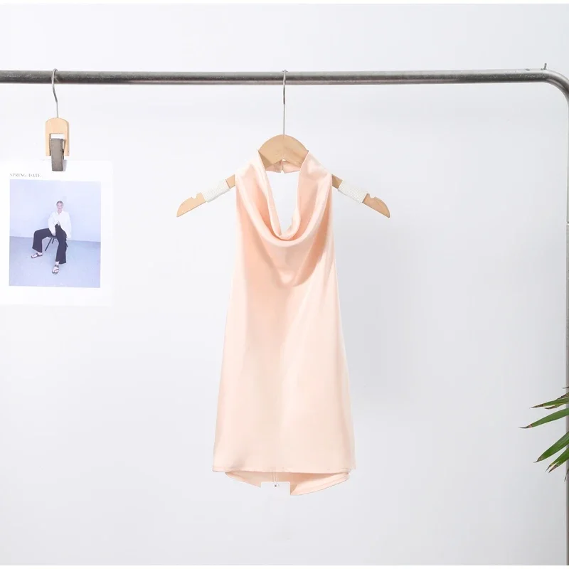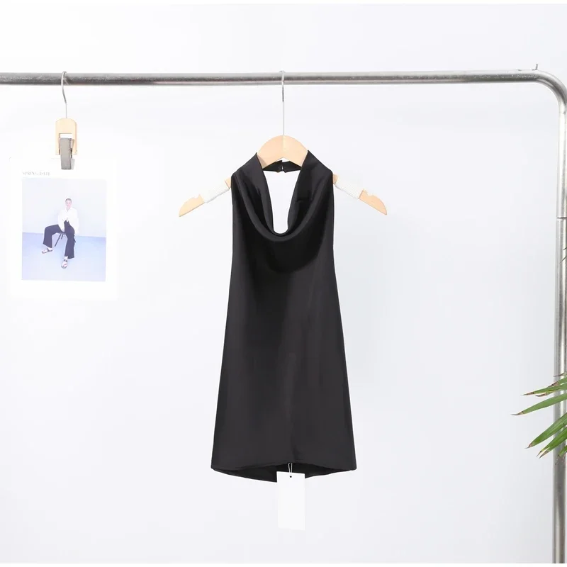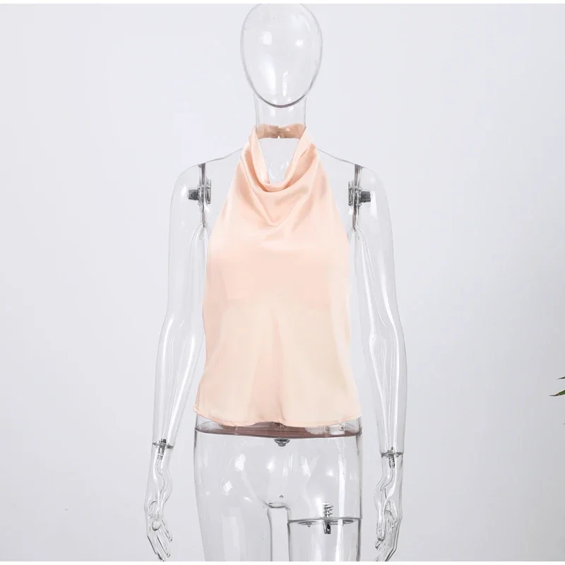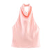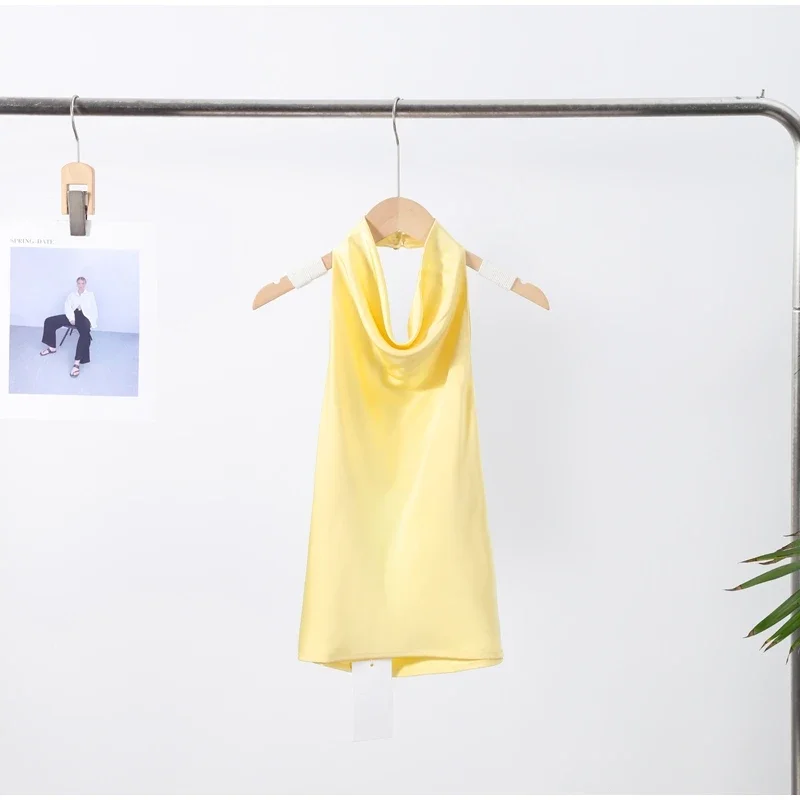 Cyflymder Women Halter Top Solid Satin Backless Slip Tank Top Casual Office Ladies Off Shoulder Evening Party Vest Spring New Fashion