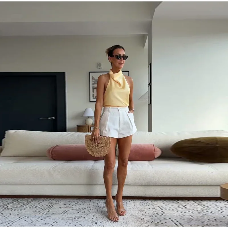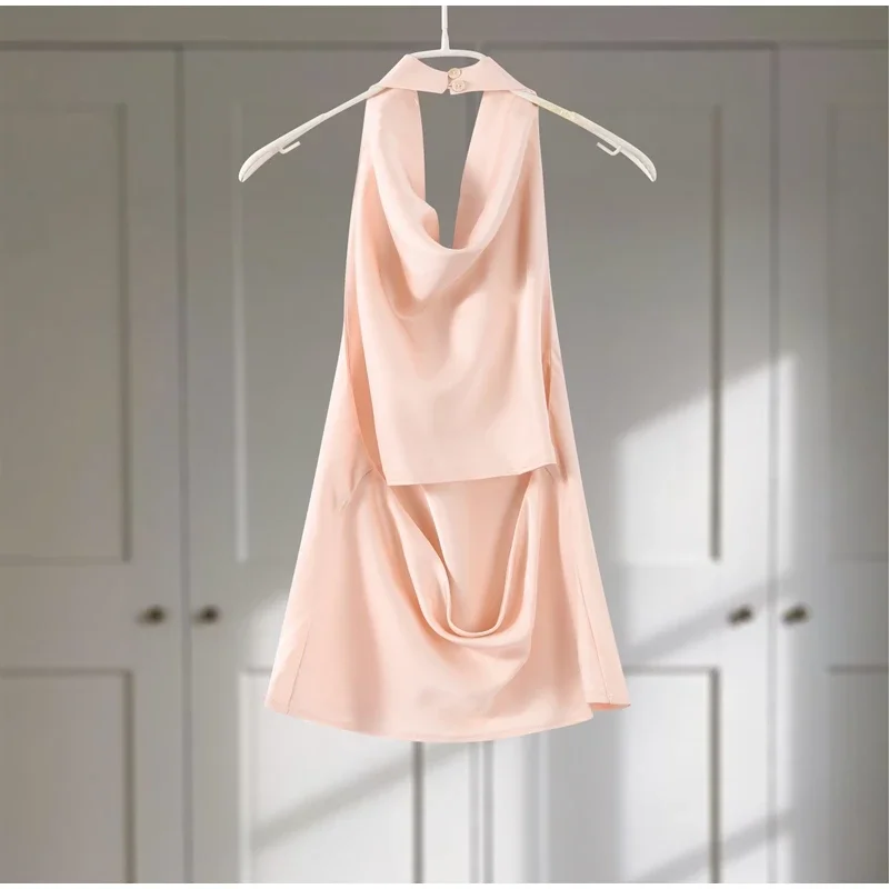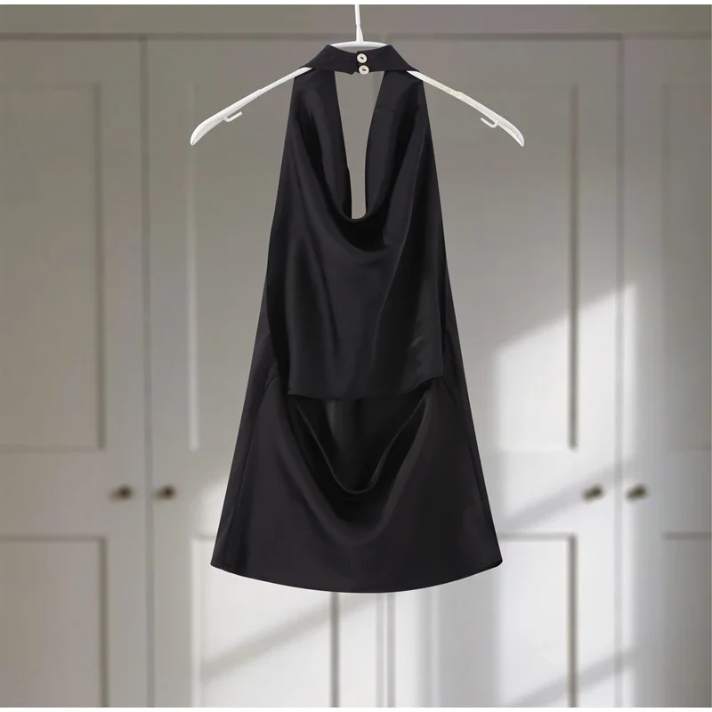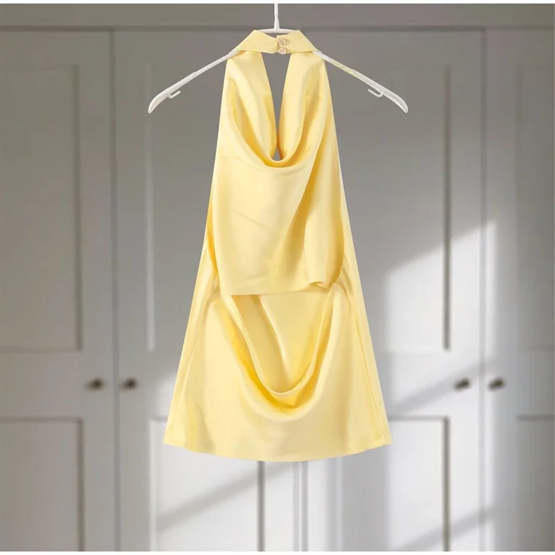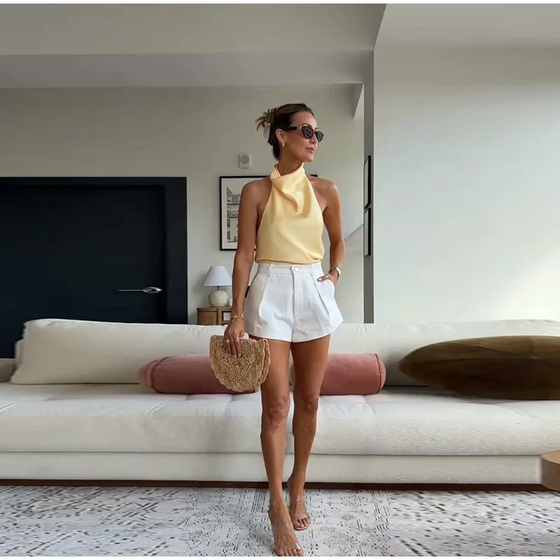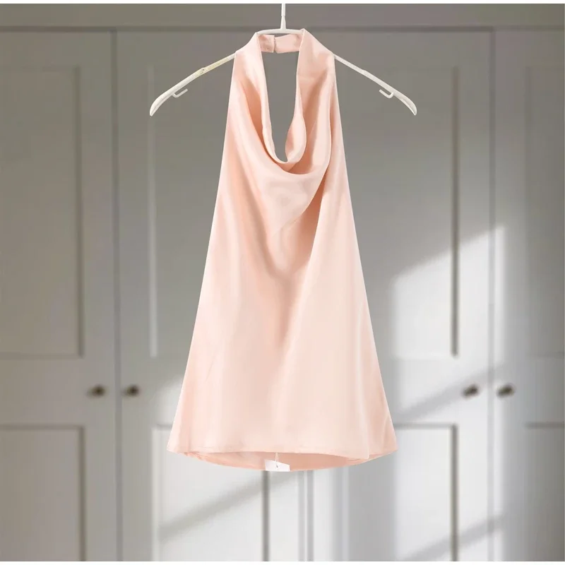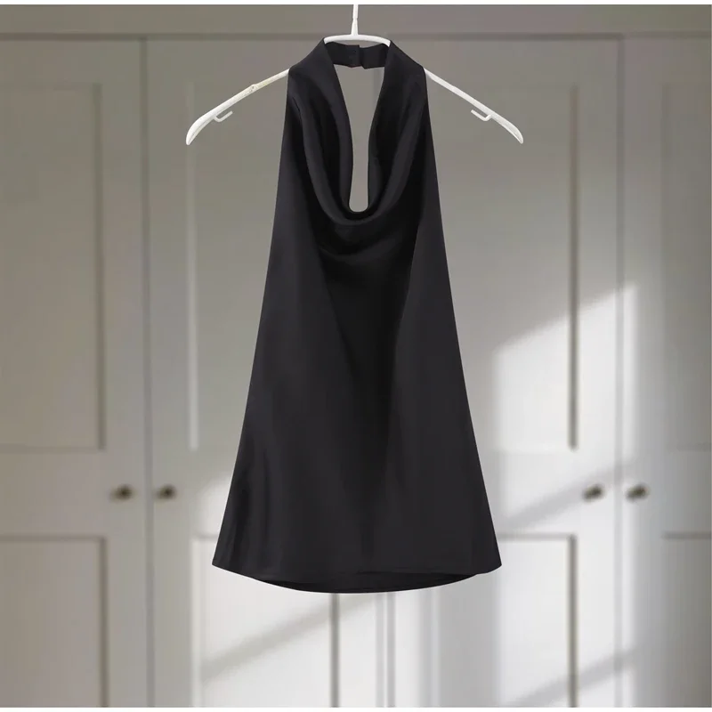 Cyflymder Women Halter Top Solid Satin Backless Slip Tank Top Casual Office Ladies Off Shoulder Evening Party Vest Spring New Fashion