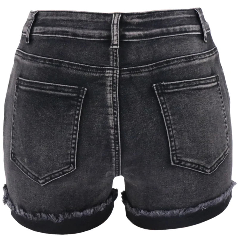 Cyflymder Women High Waist Vintage Broken Holes Denim Shorts Tassel Trouser Legs Three Quarter Pants Female Mini Jeans Trend Streetwear