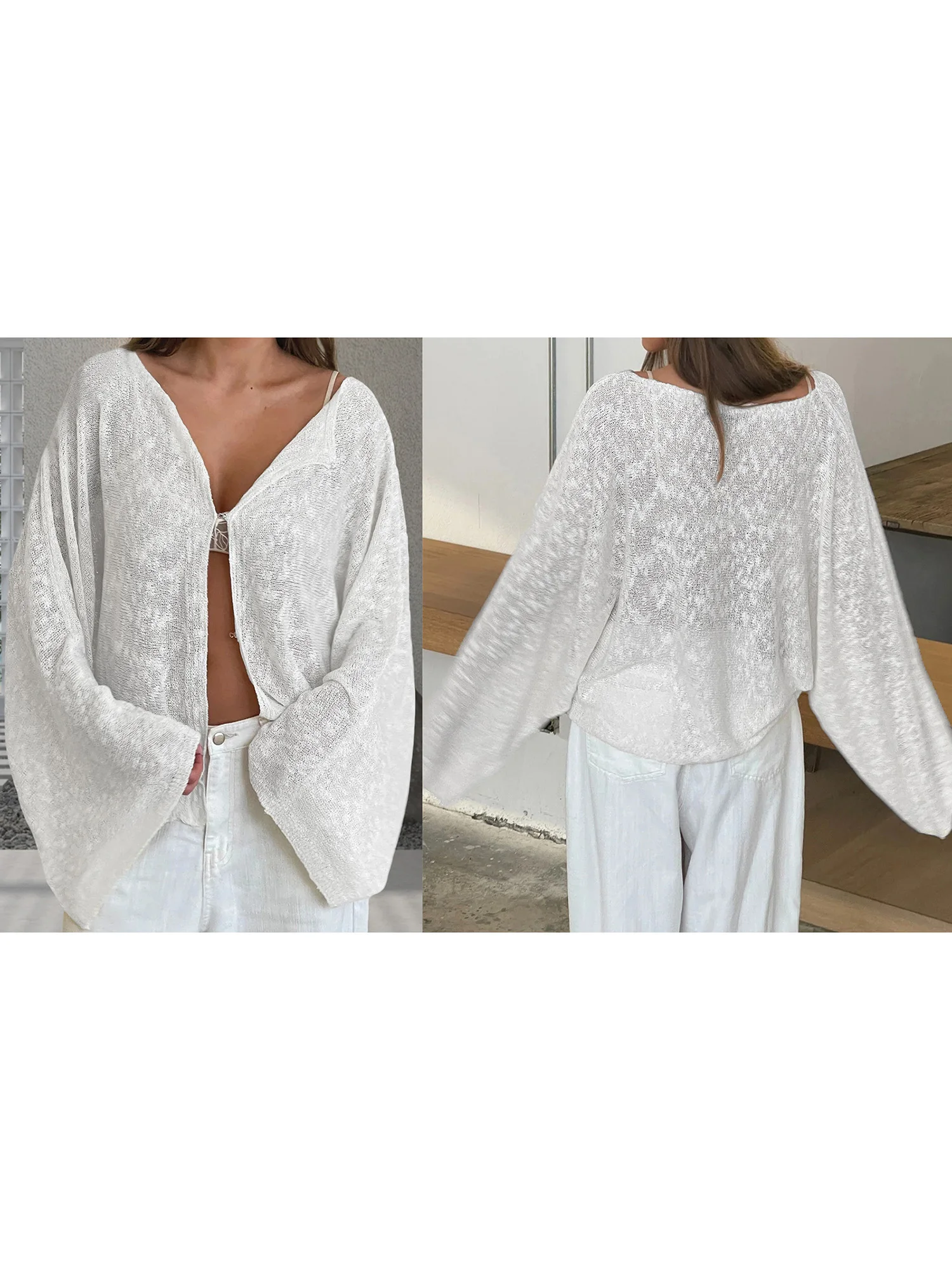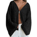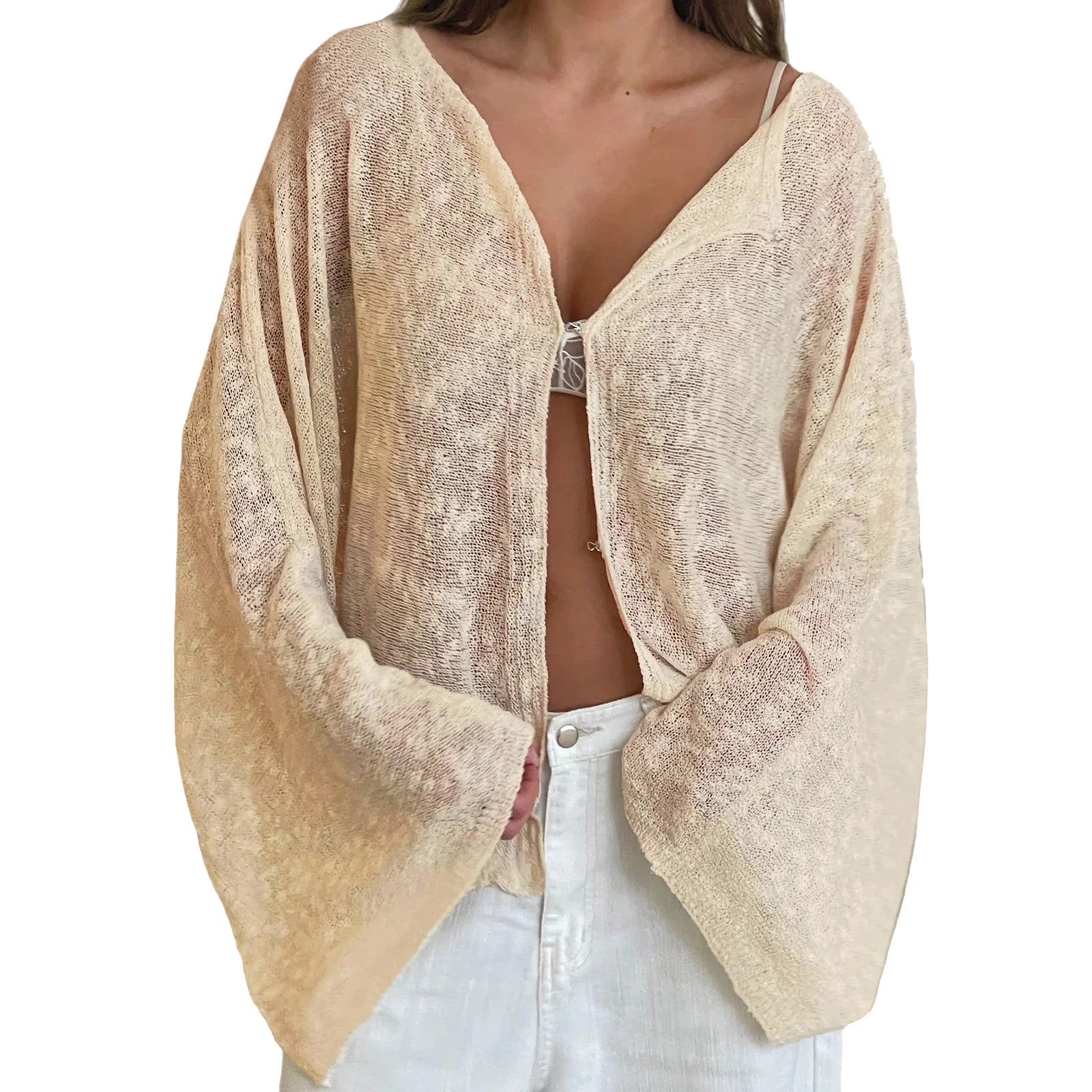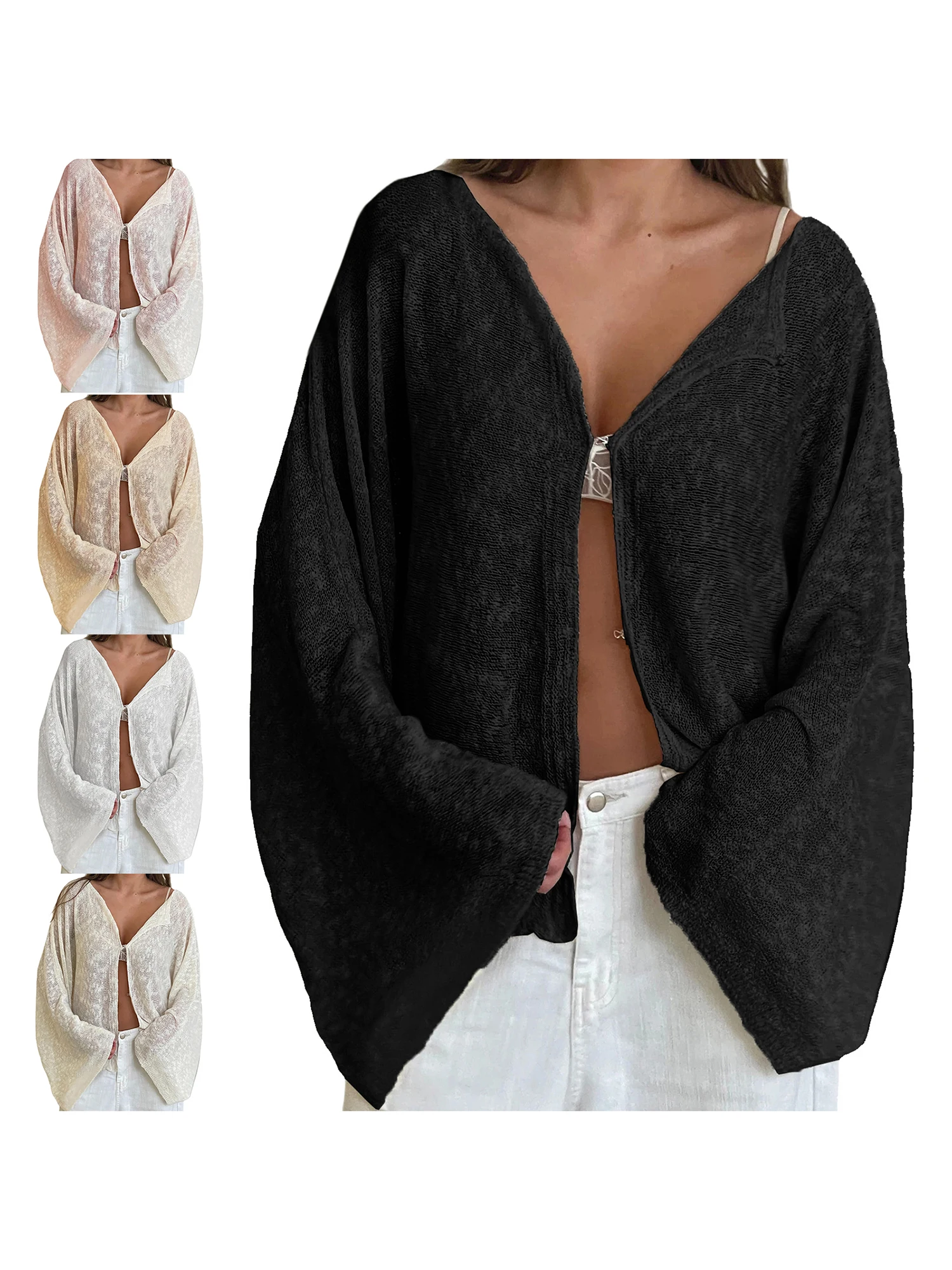 Cyflymder Women Loose Cardigan Solid Boat Neck Hook and Eye Long Sleeve Knitted Tops Casual Fall Clothes