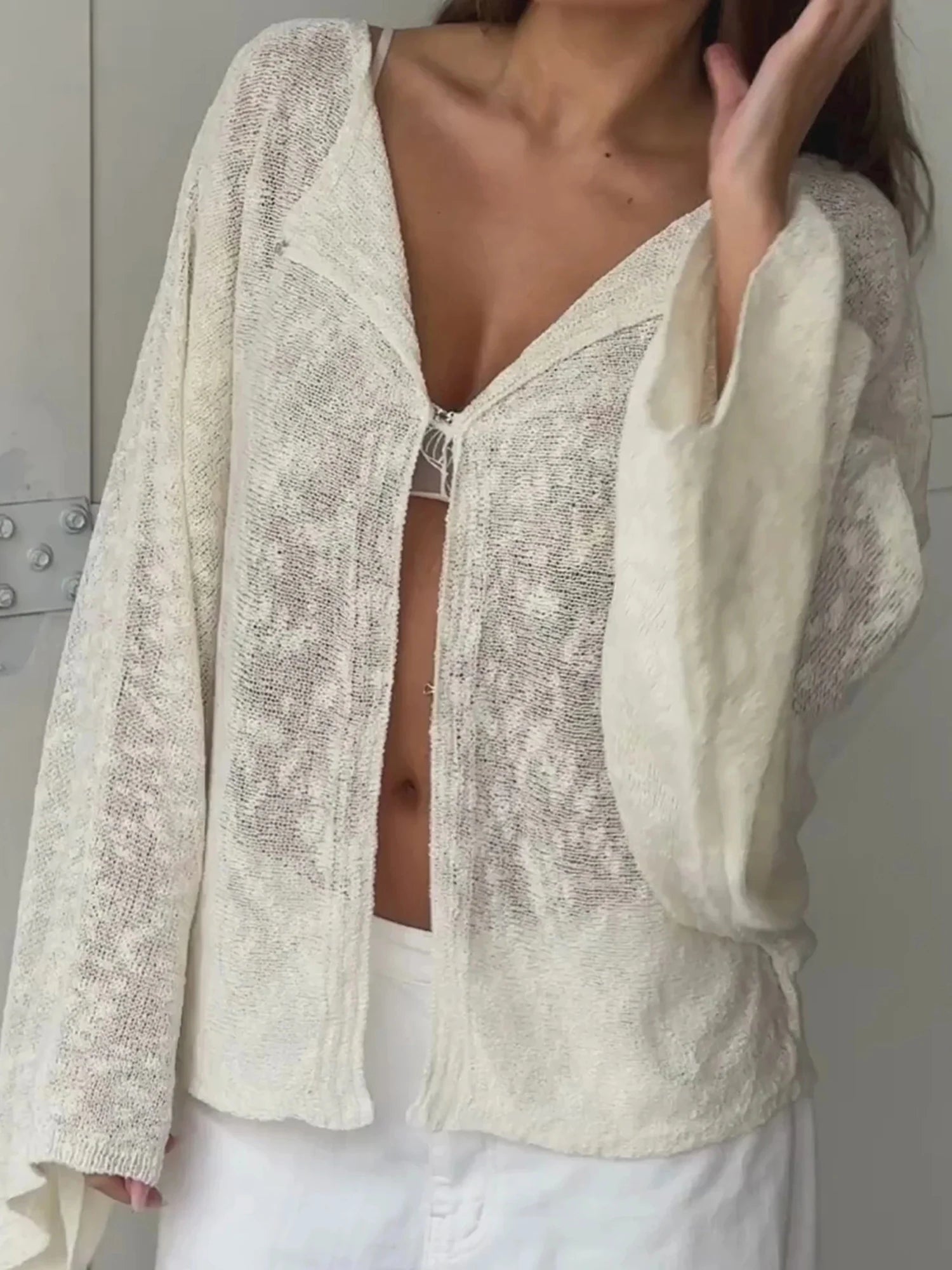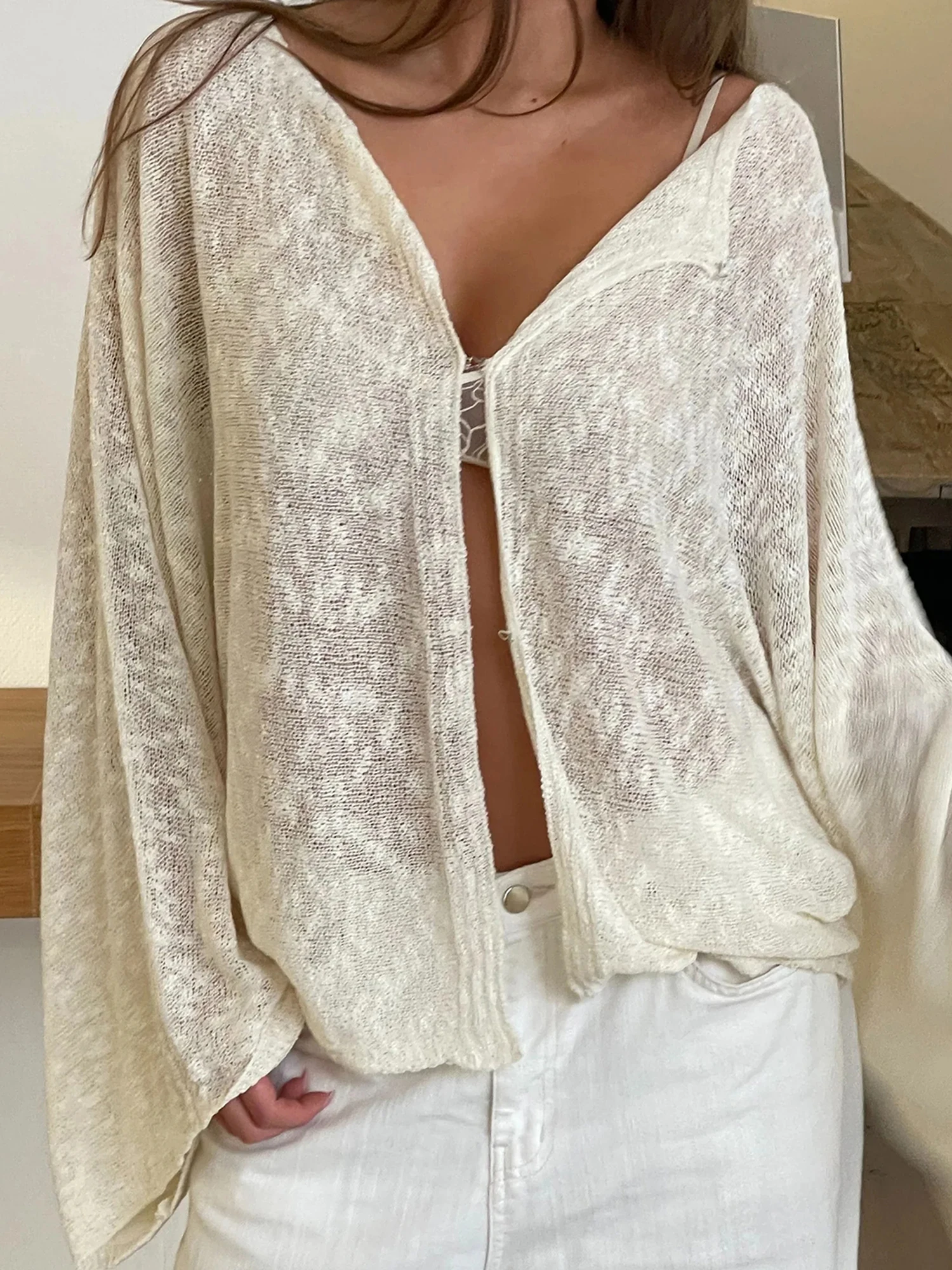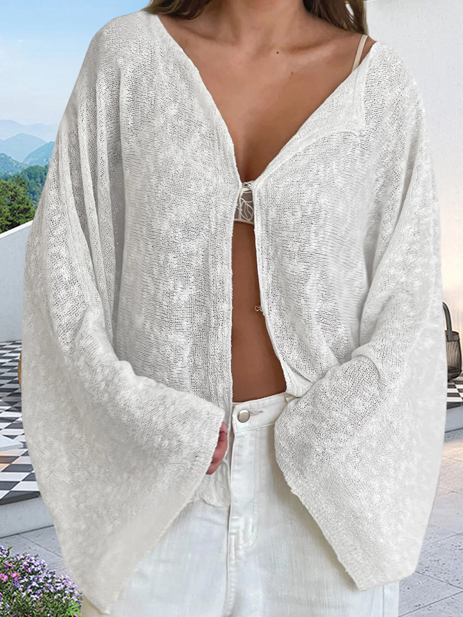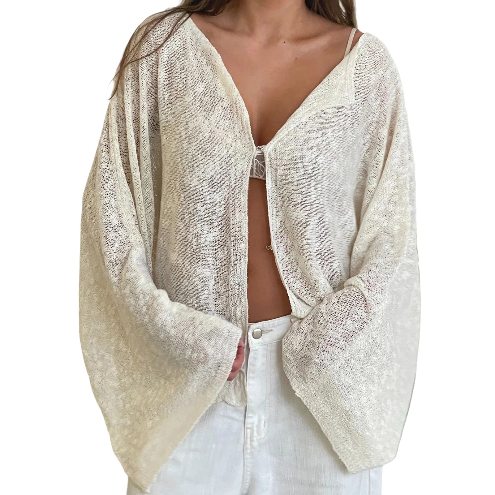 Cyflymder Women Loose Cardigan Solid Boat Neck Hook and Eye Long Sleeve Knitted Tops Casual Fall Clothes