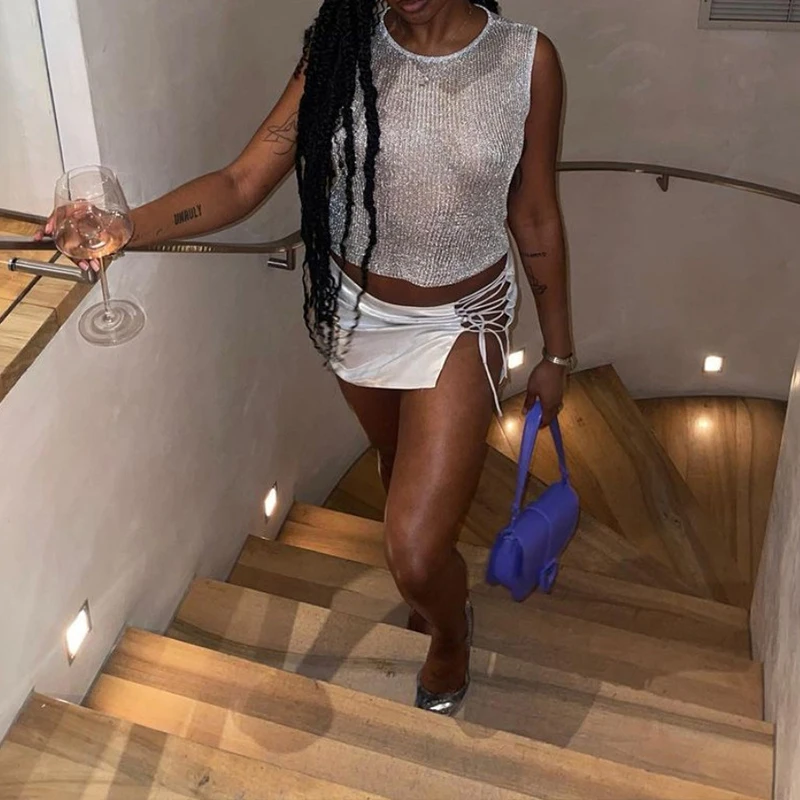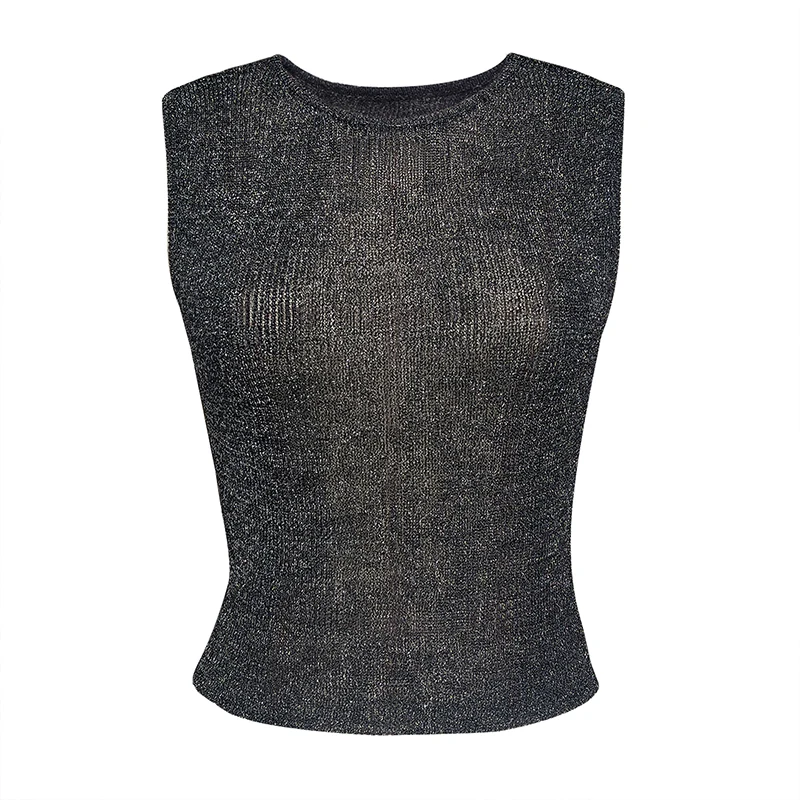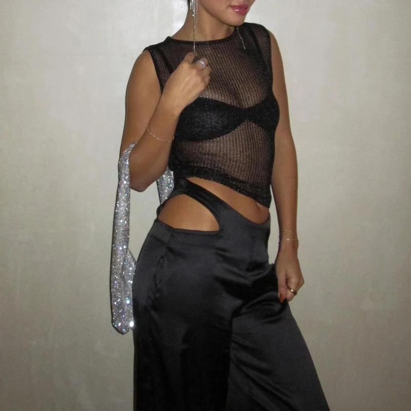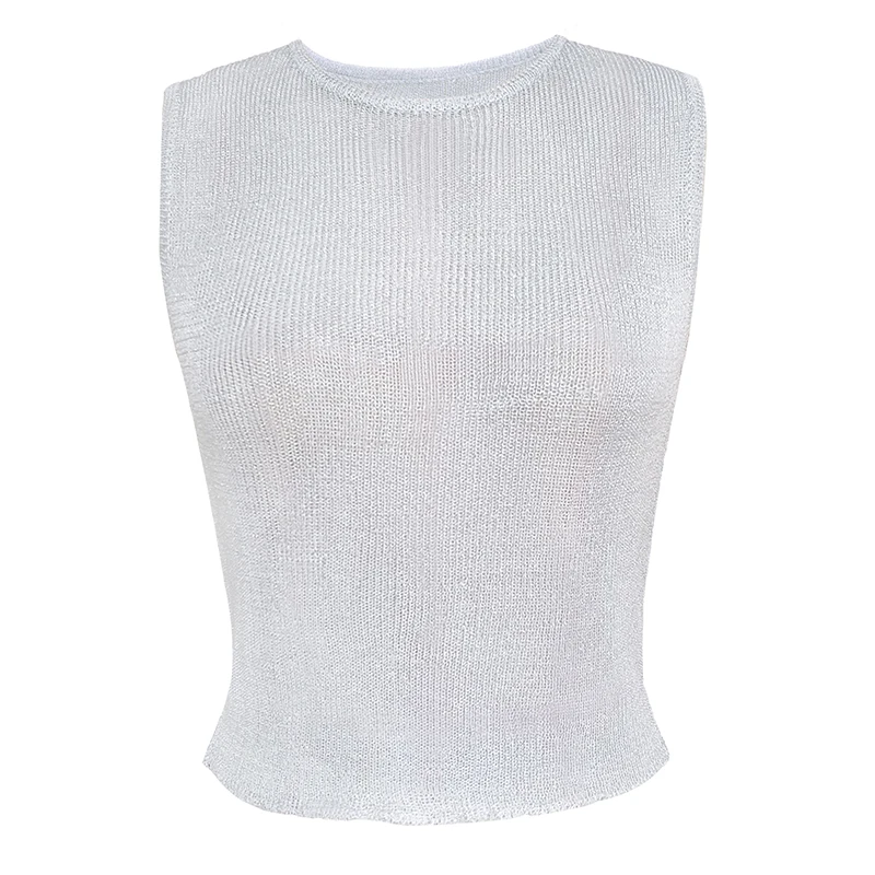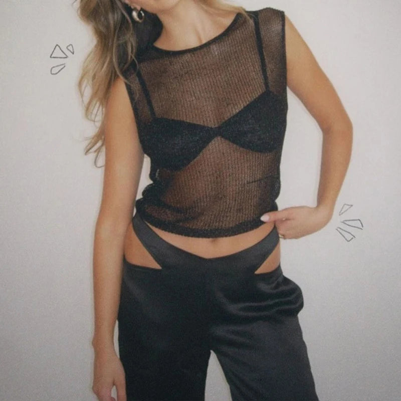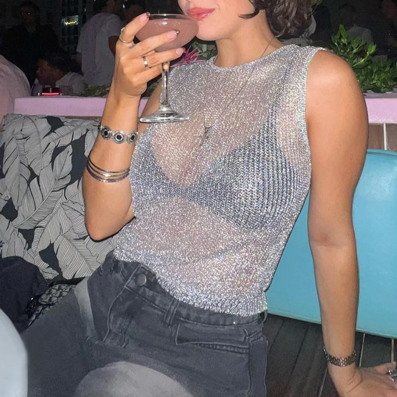 Cyflymder Women New 2025 Sexy Sleeveless Tank Tops Sparkling Fashion See-through Simple Style Carnival Party Vest Tops Y2K Streetwear