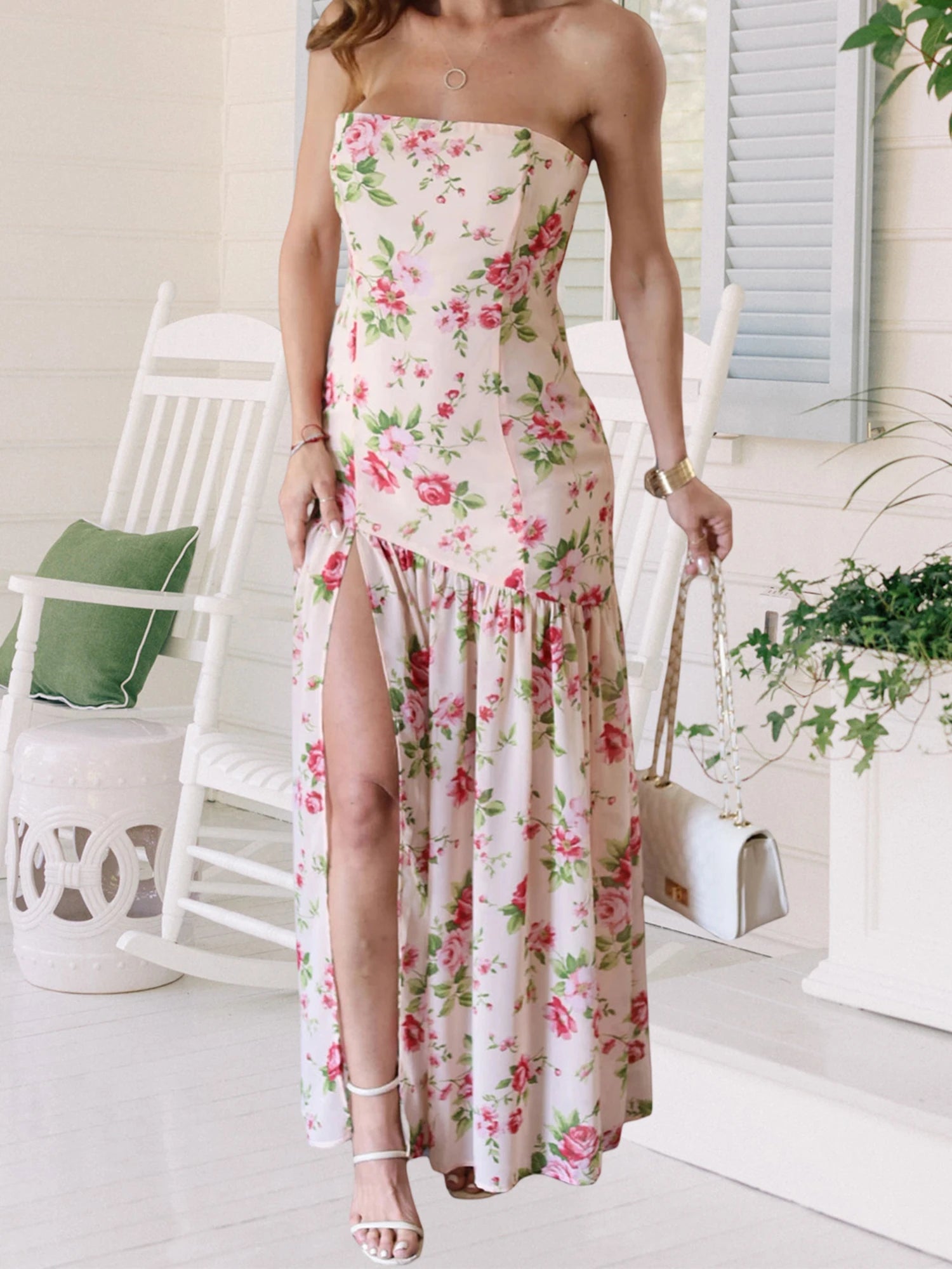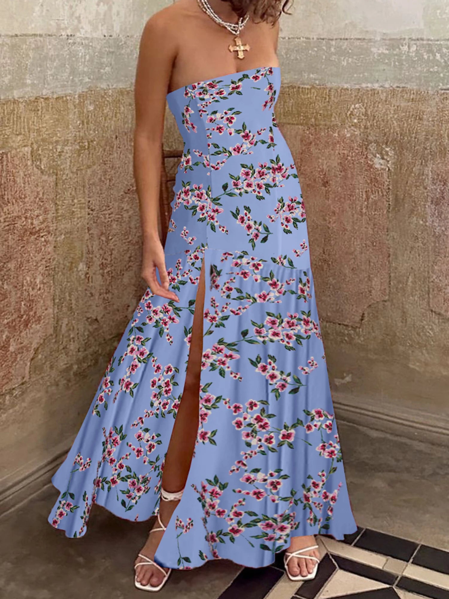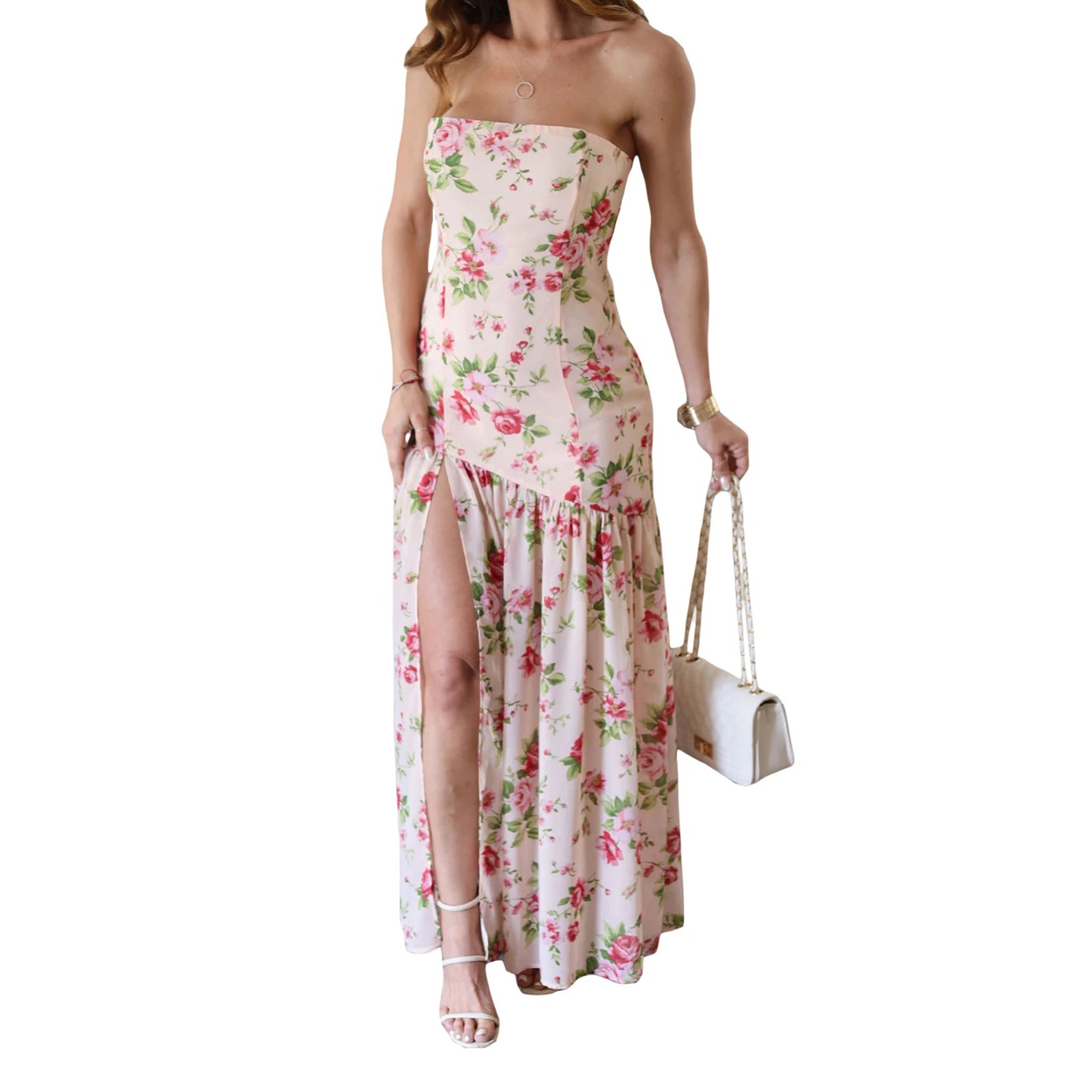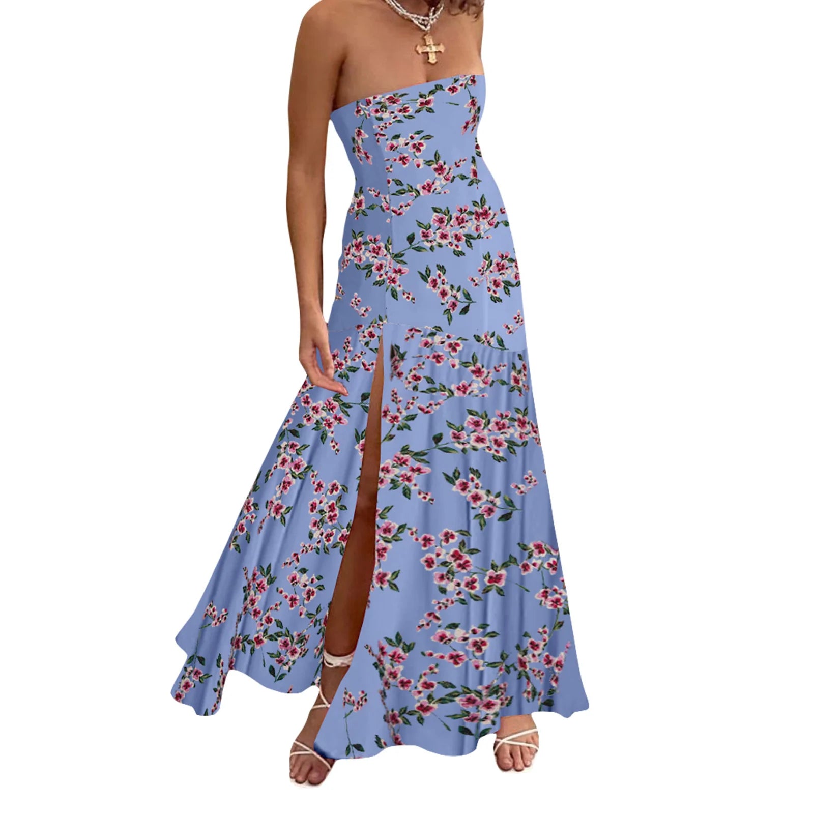 Cyflymder Women Off Shoulder Ruffle Dress Elegant Floral Print High Low Hem Maxi Dress for Wedding Party Prom Evening Gown Beach