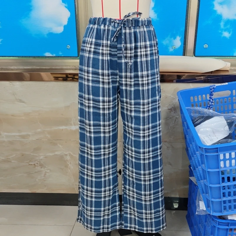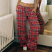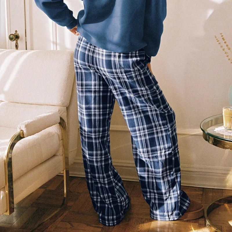 Cyflymder Women Plaid Lounge Pants Fashionable Casual Loose Fit Drawstring Waist Wide Leg Pants Preppy Vintage Trousers