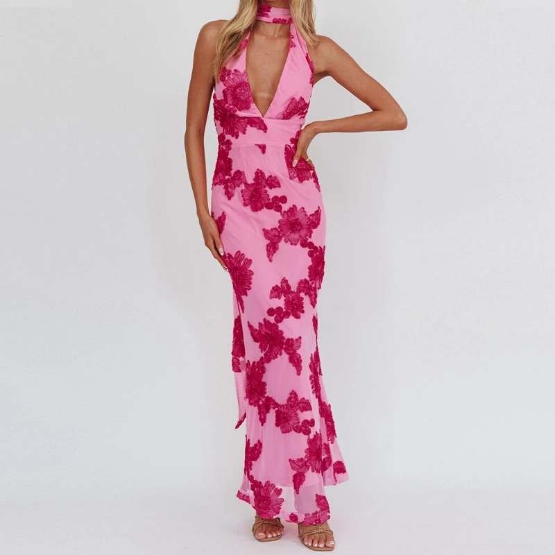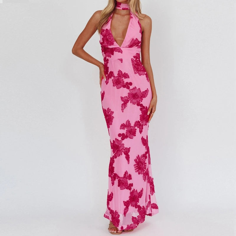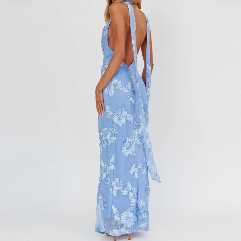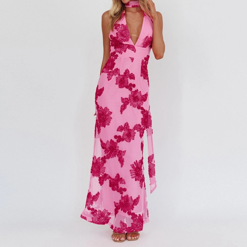 Cyflymder Women Print Floral Maxi Dress Spaghetti Strap Slip Dress Y2k Bodycon Backless Going Out Long Sundress Evening Cocktail Party
