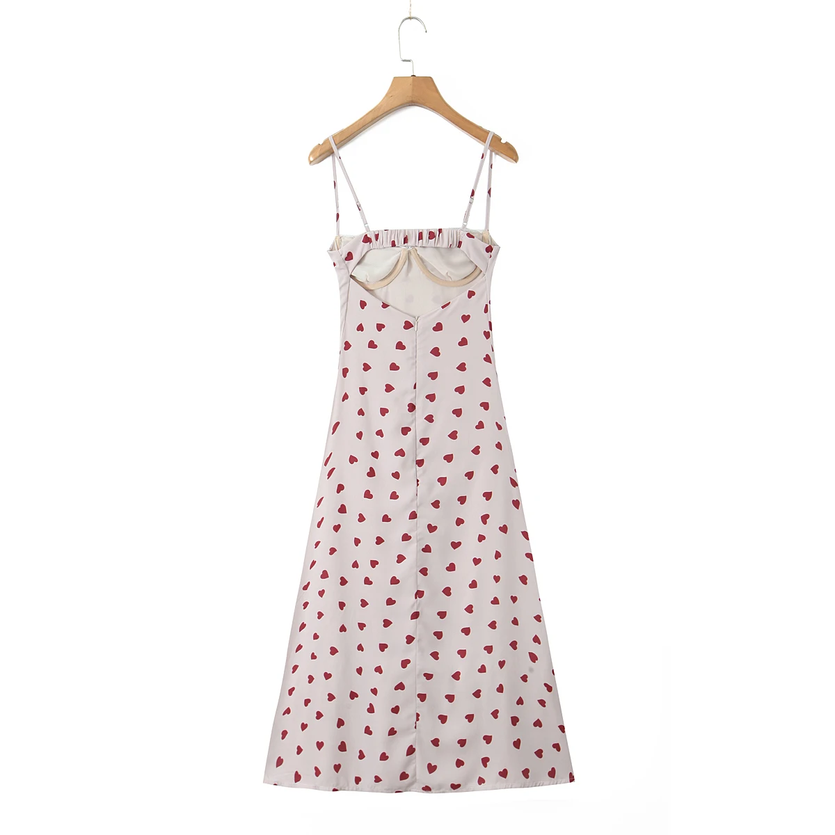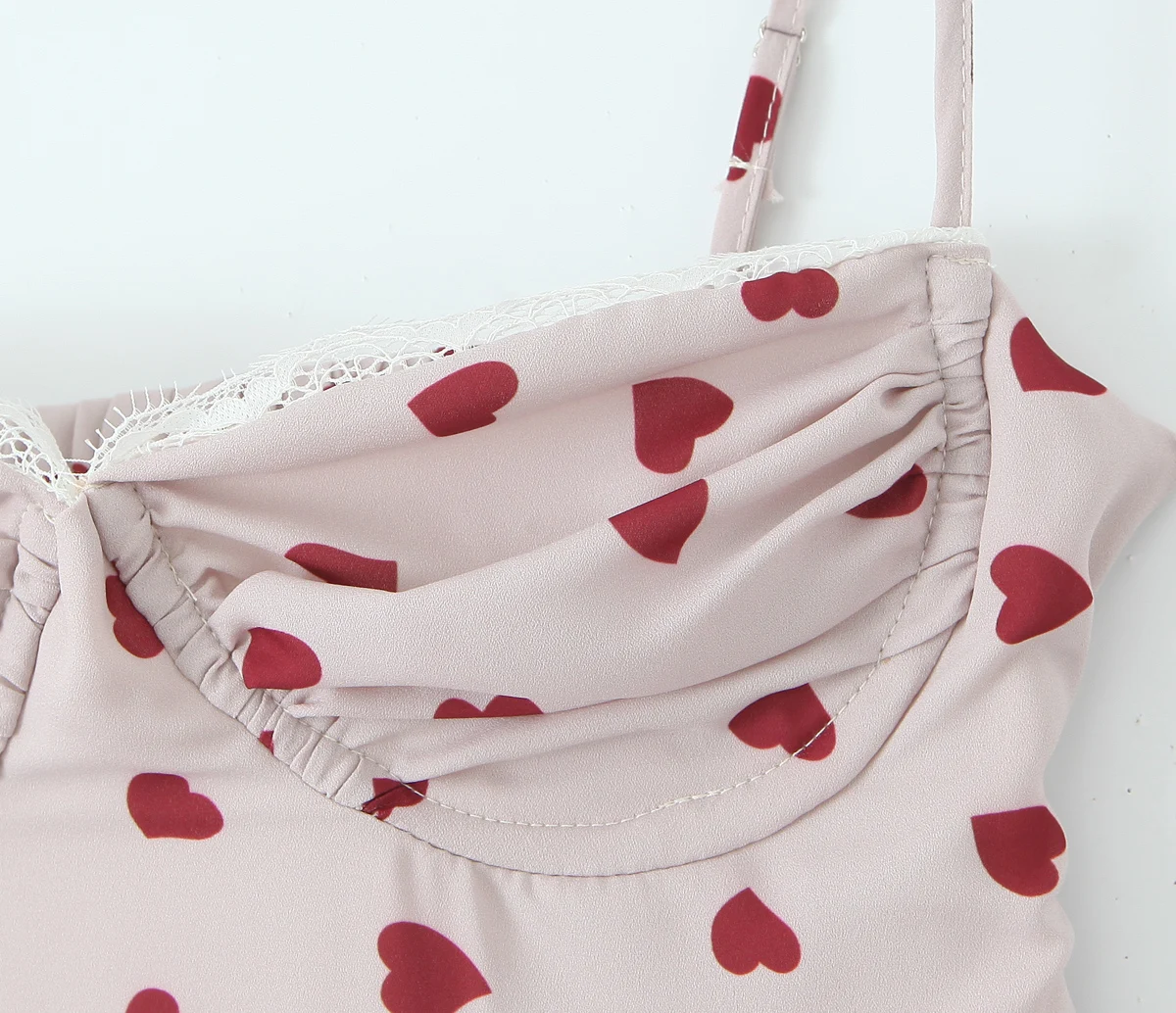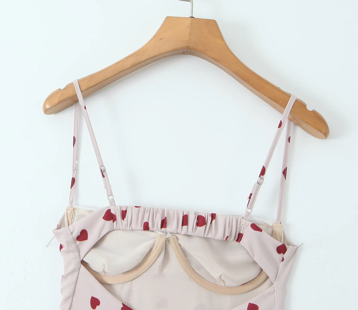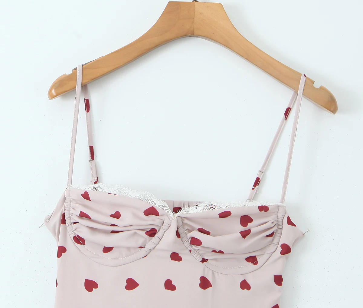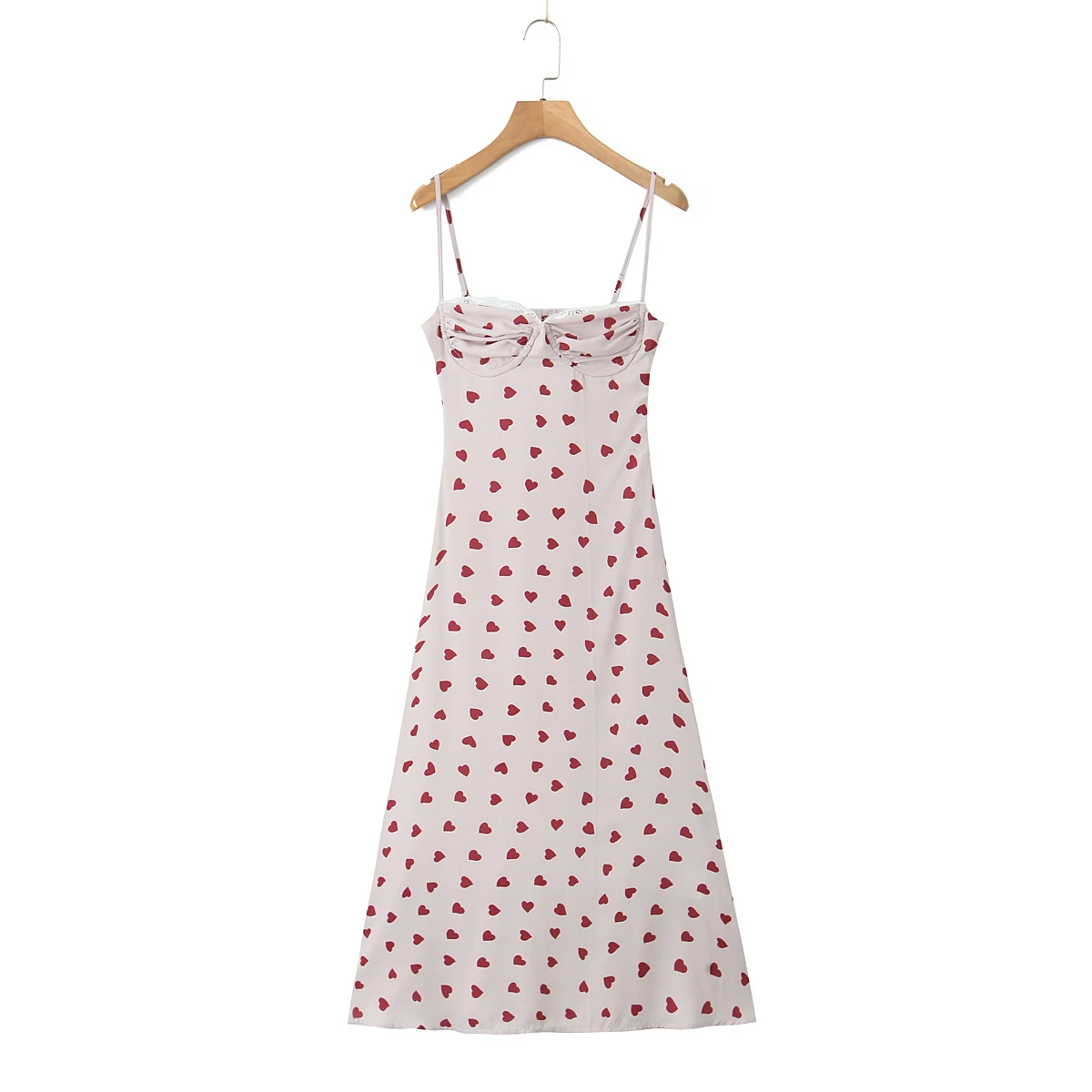 Cyflymder Women Ruched Wire Bra Spliced Lace V Collar Push Up Bandage Backless Sling Dress Sexy Heart Print Night Out Party Midi Long Robe