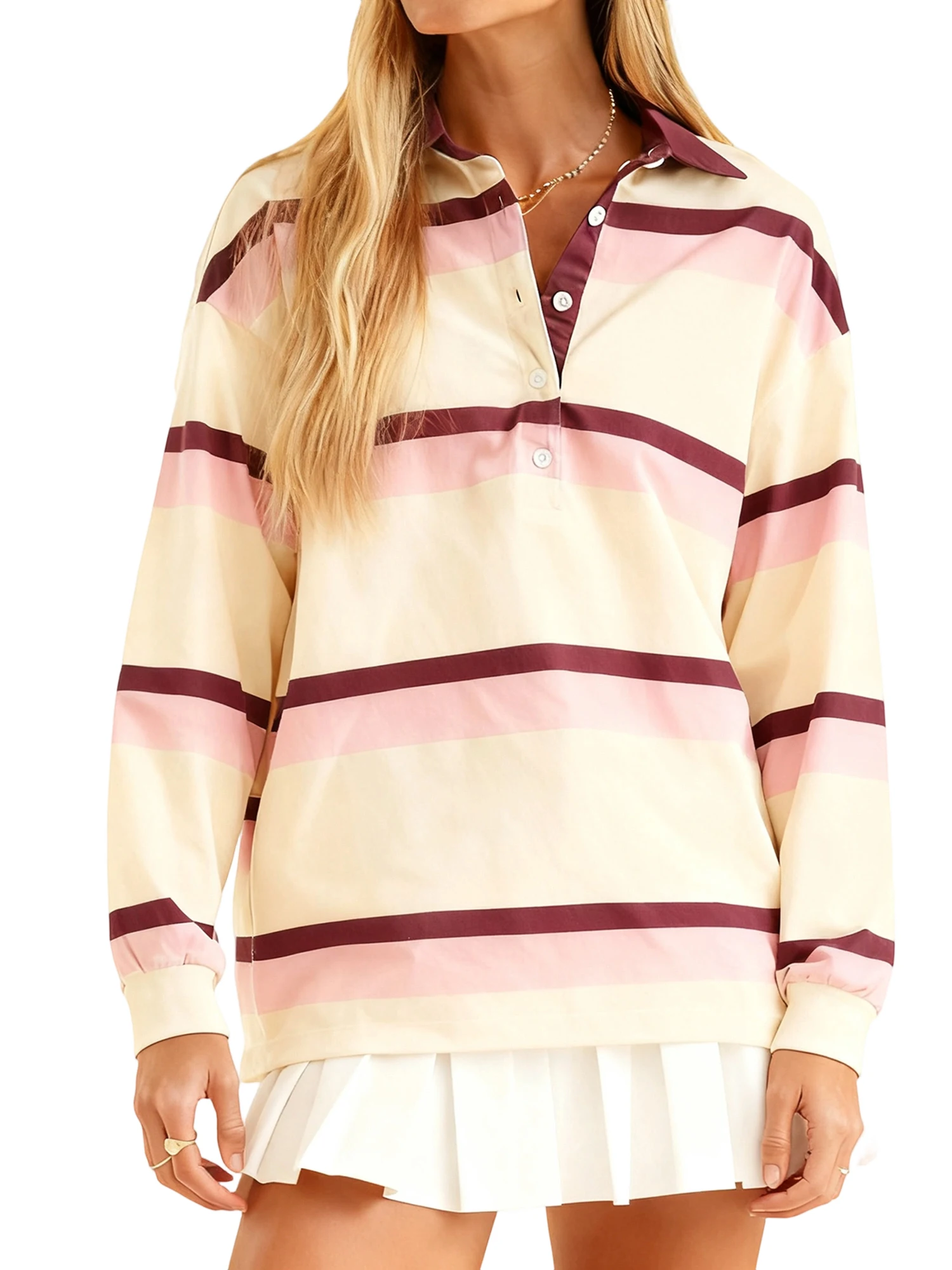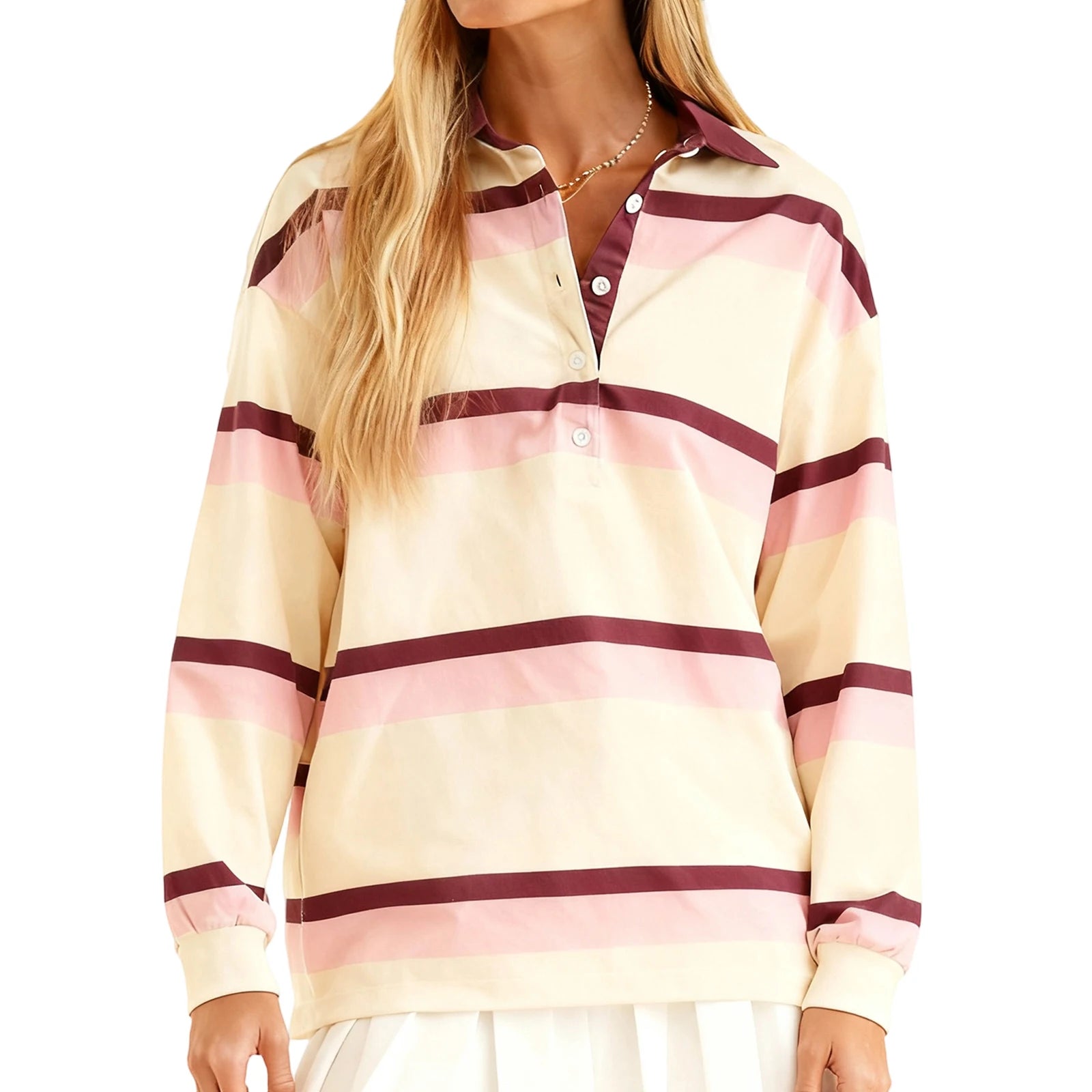 Cyflymder Women s Autumn Casual Stripe Tops Long Sleeve Turn Down Collar Button Up T-shirt