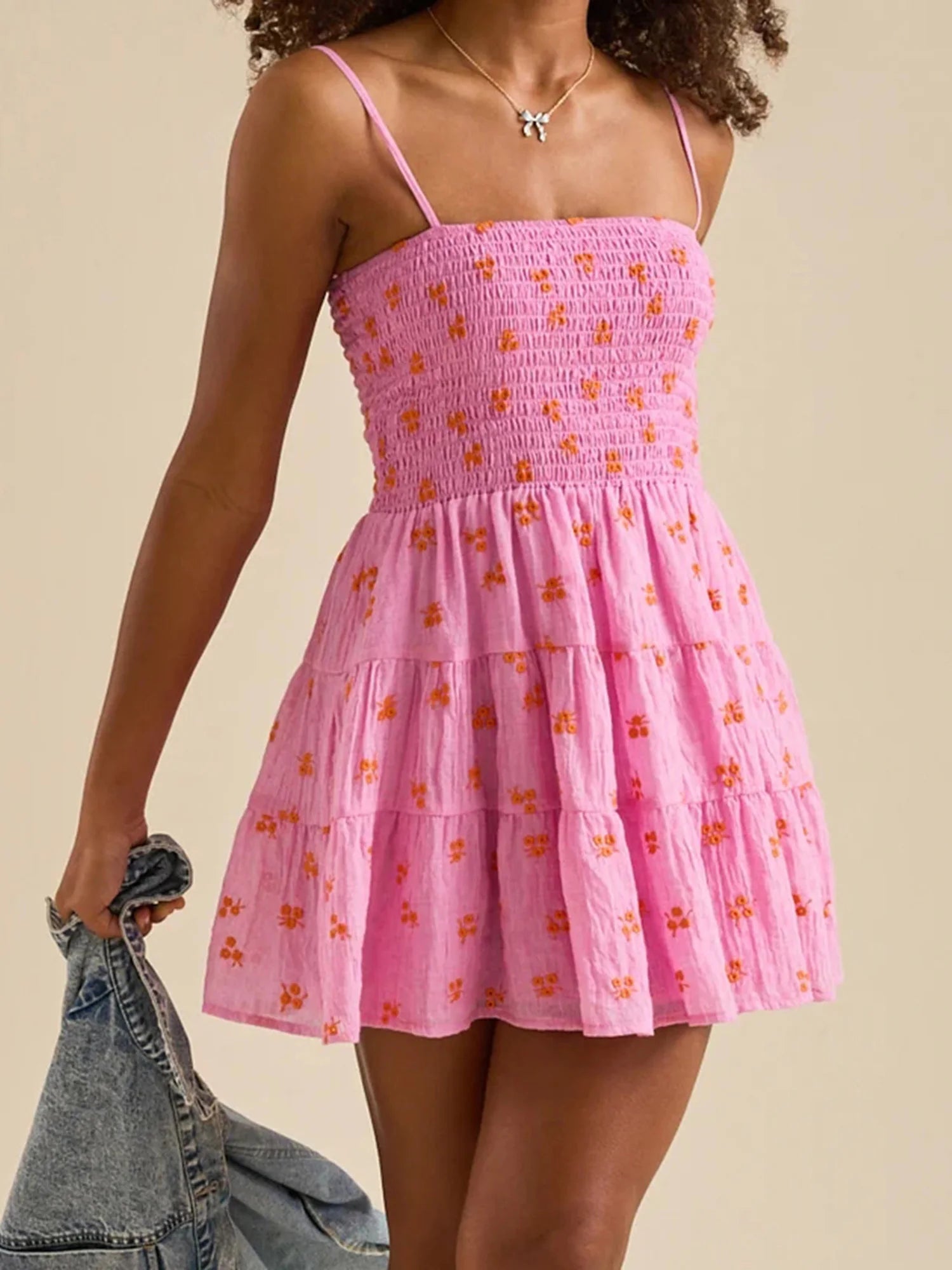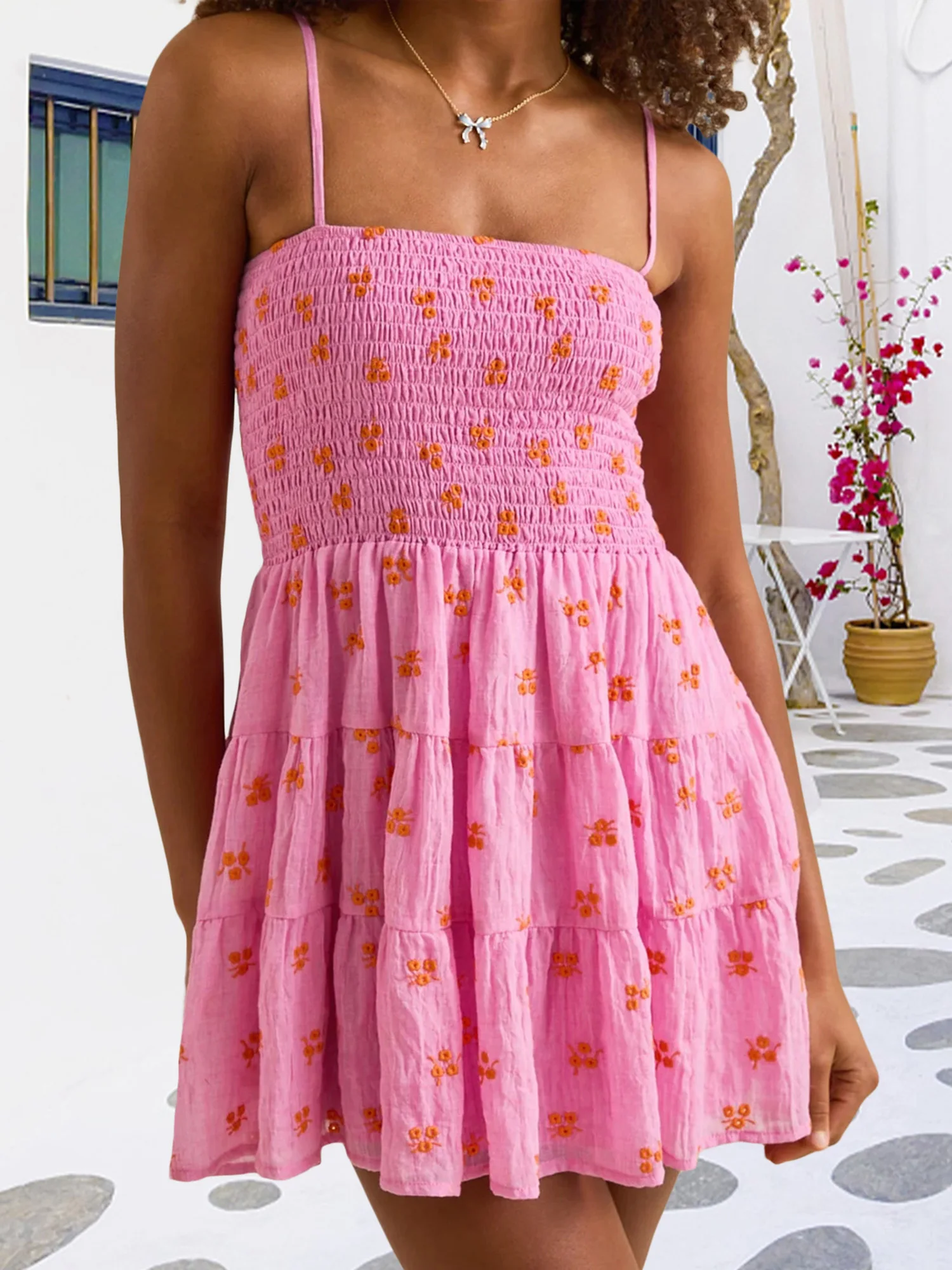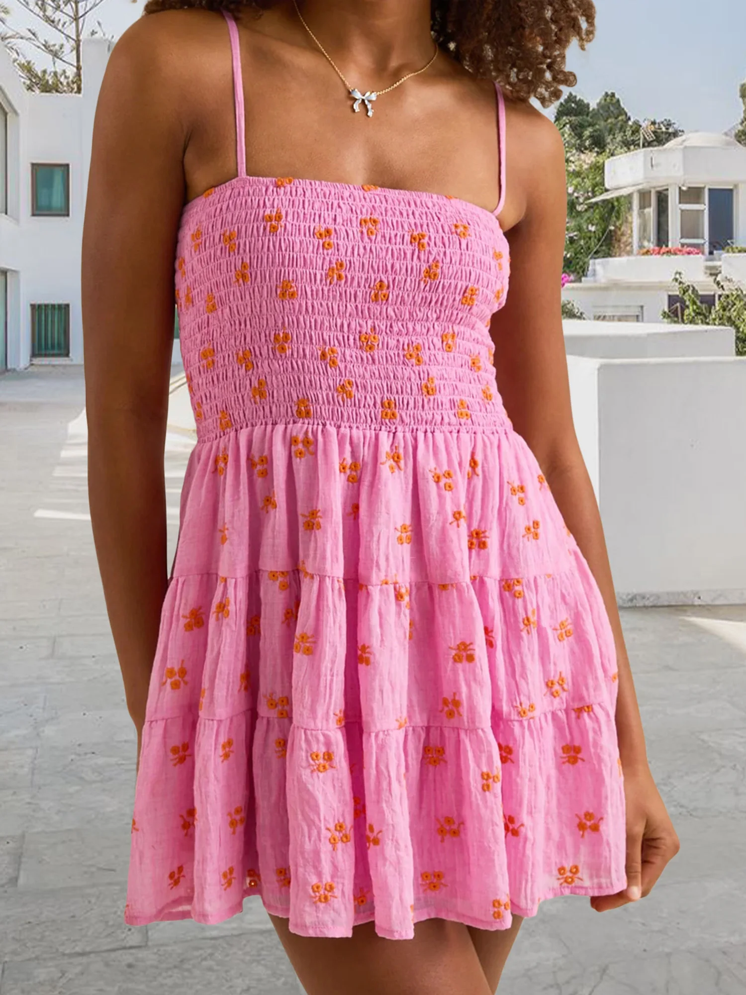 Cyflymder Women s Boho Chic Halter Neck Floral Print Sleeveless Backless Mini Dress Summer Beach A Line Sundress with Adjustable Straps