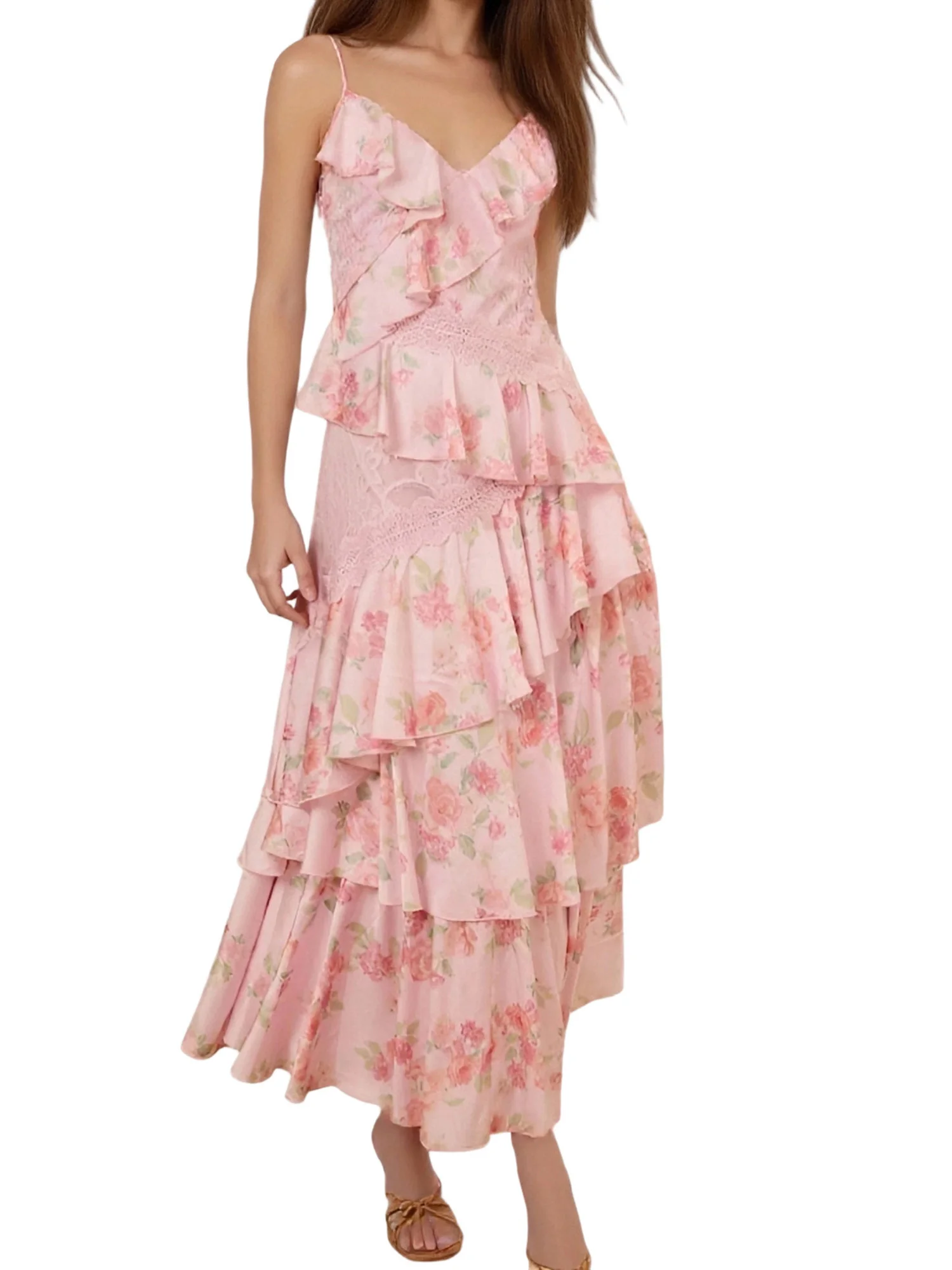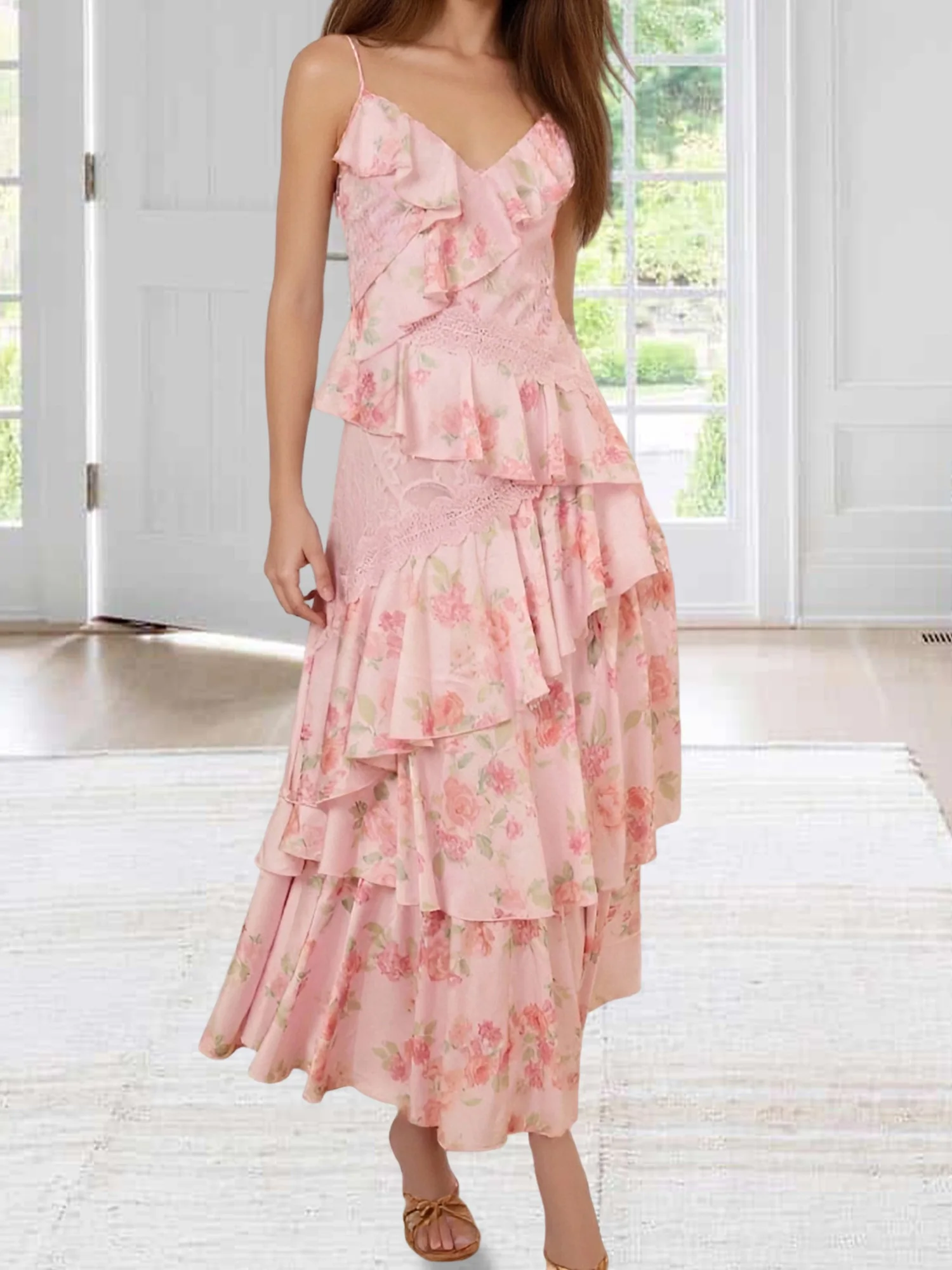 Cyflymder Women s Boho Chic Maxi Dress with Off-Shoulder Ruffle Detail and Floral Print Sleeveless Spaghetti Strap V-Neck Backless
