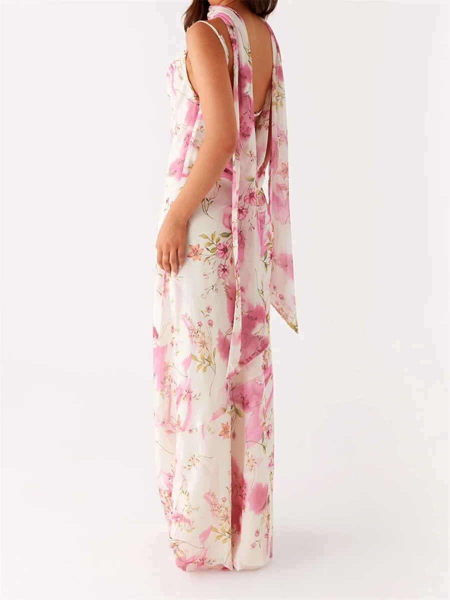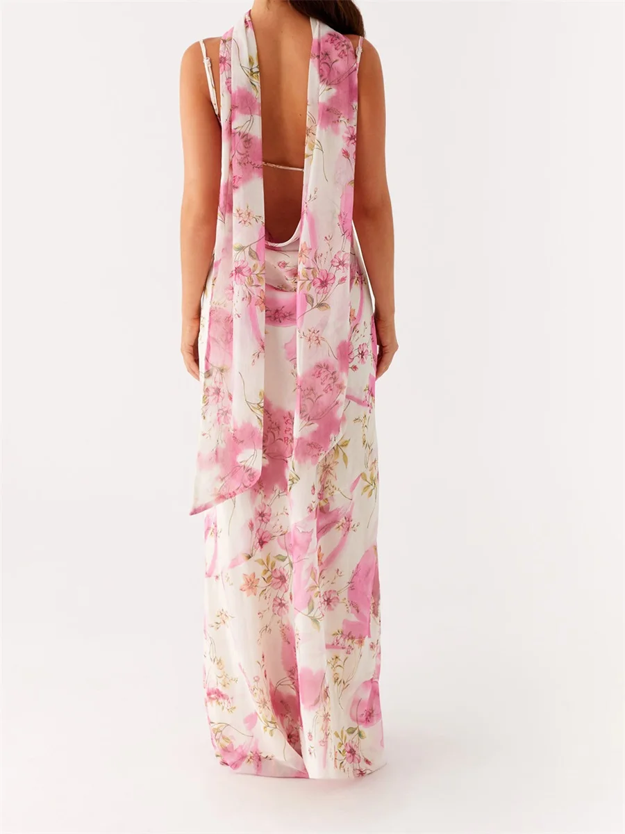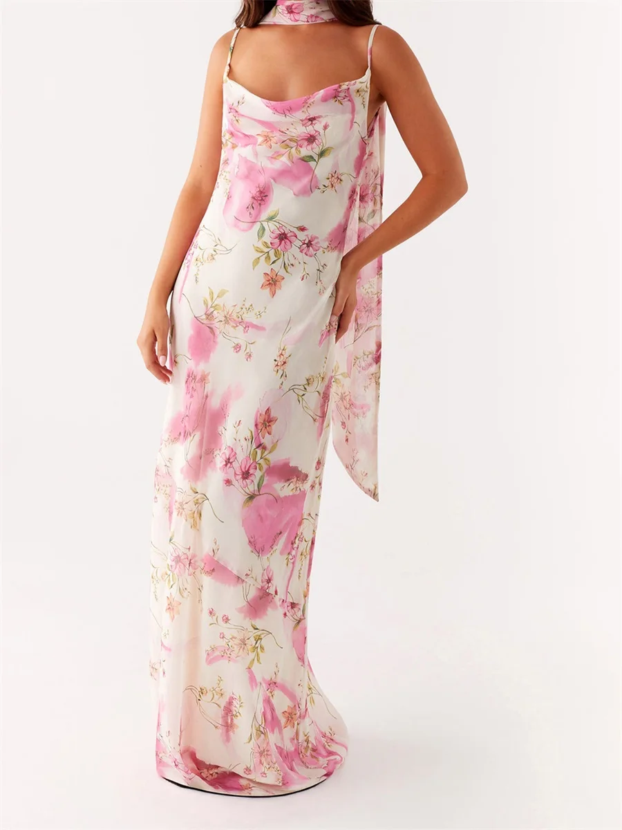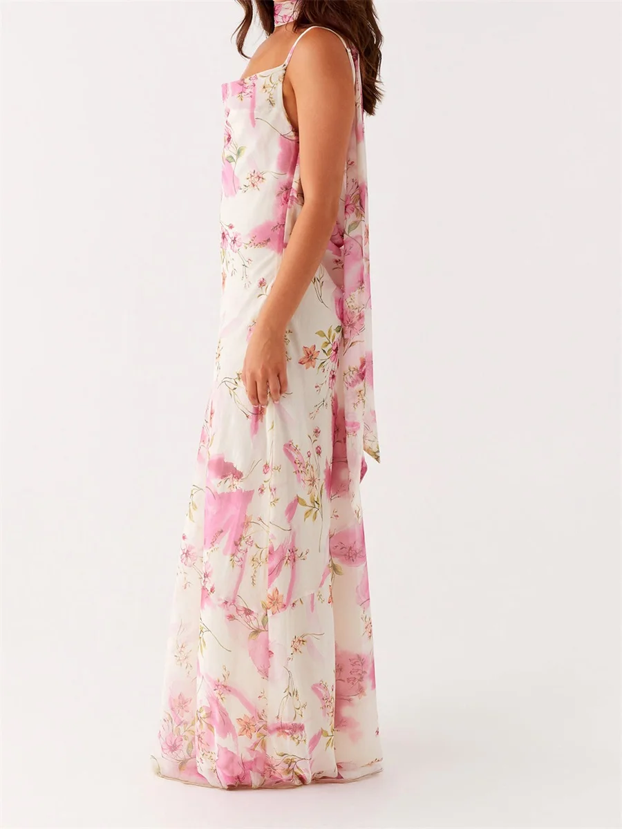 Cyflymder Women s Boho Maxi Dress with Off-Shoulder Ruffle Sleeve and Floral Print Summer Beach Party Casual Dress with Matching Headband