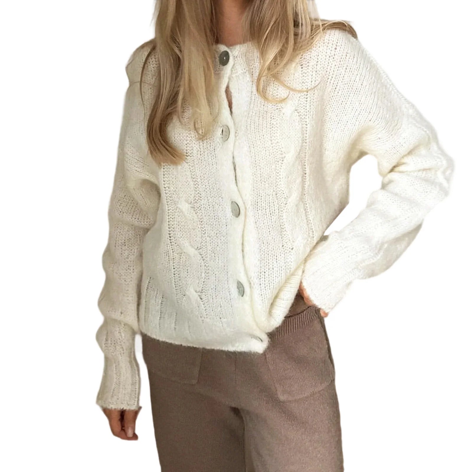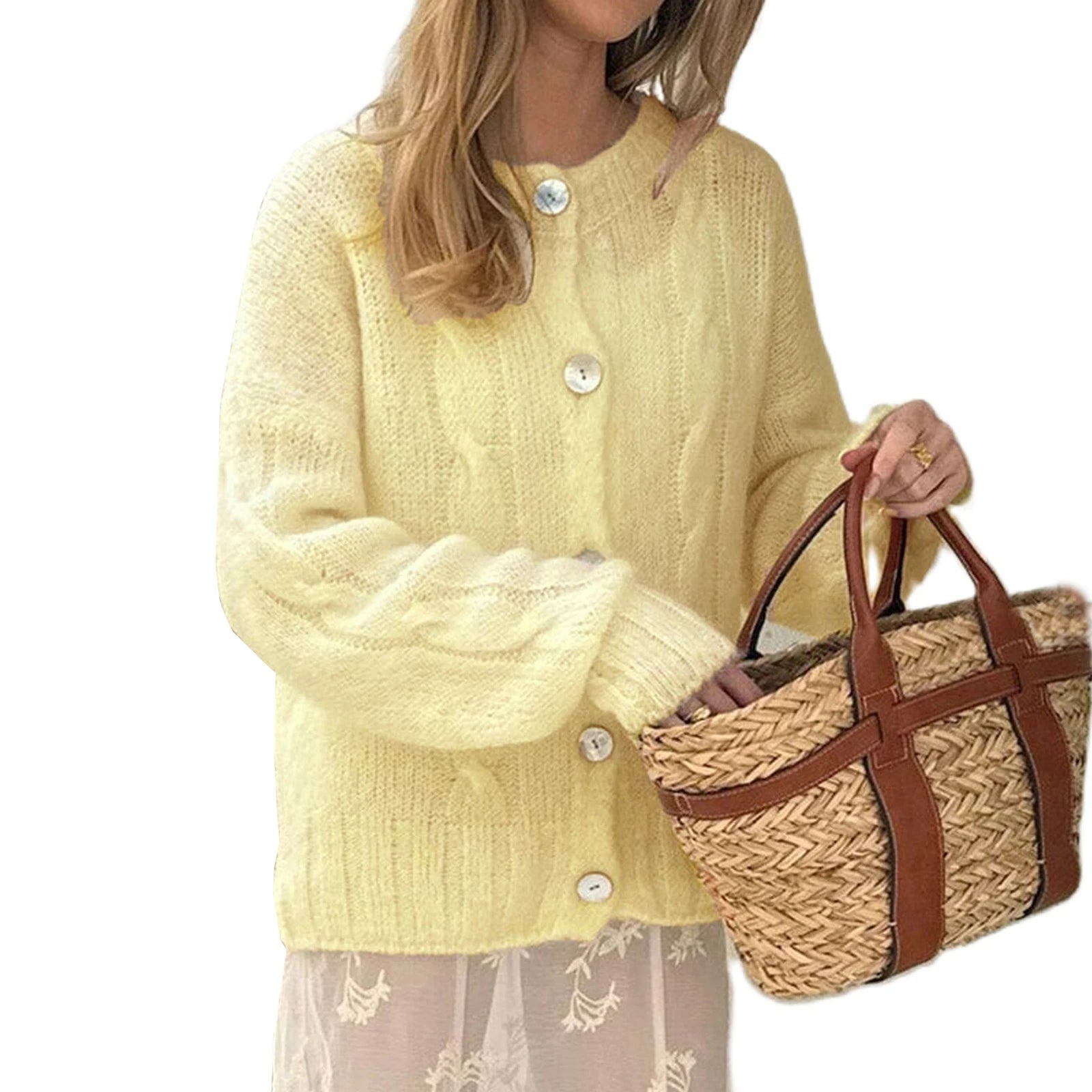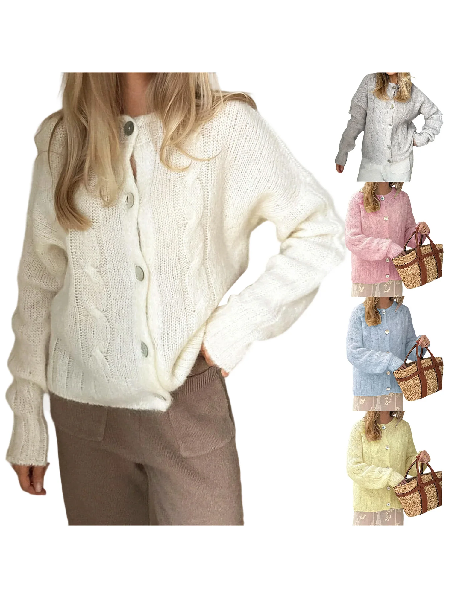 Cyflymder Women s Cable Knit Cardigan Sweater with Long Sleeves and Button Closure - Cozy Fall Jacket for Casual Streetwear Style