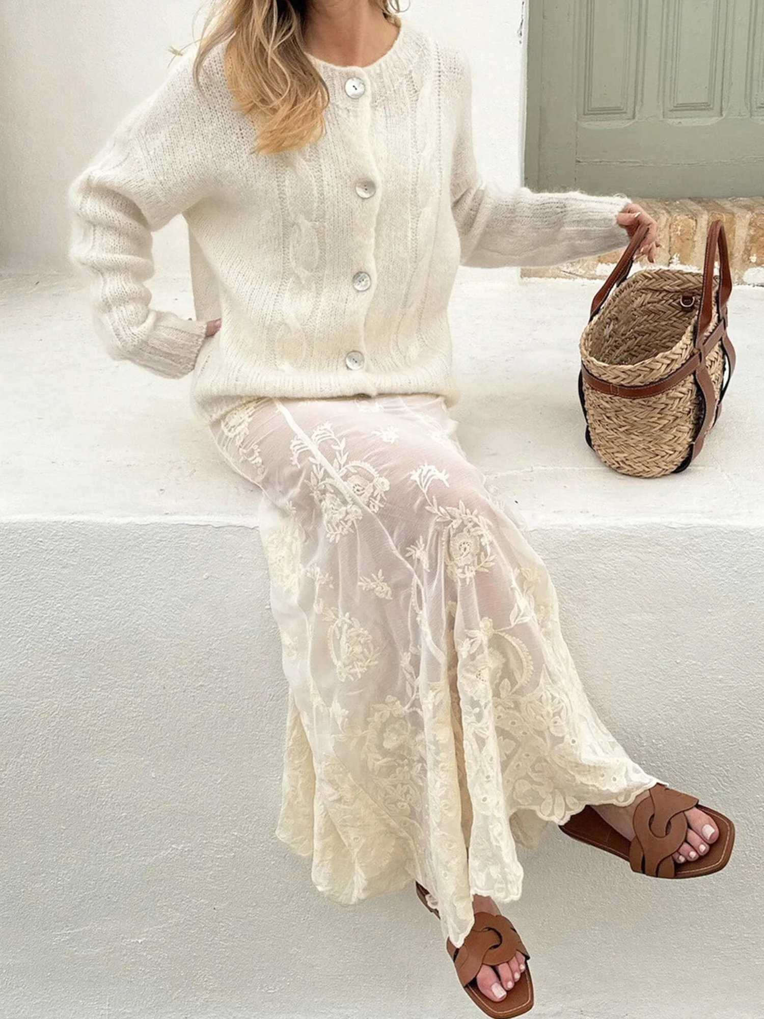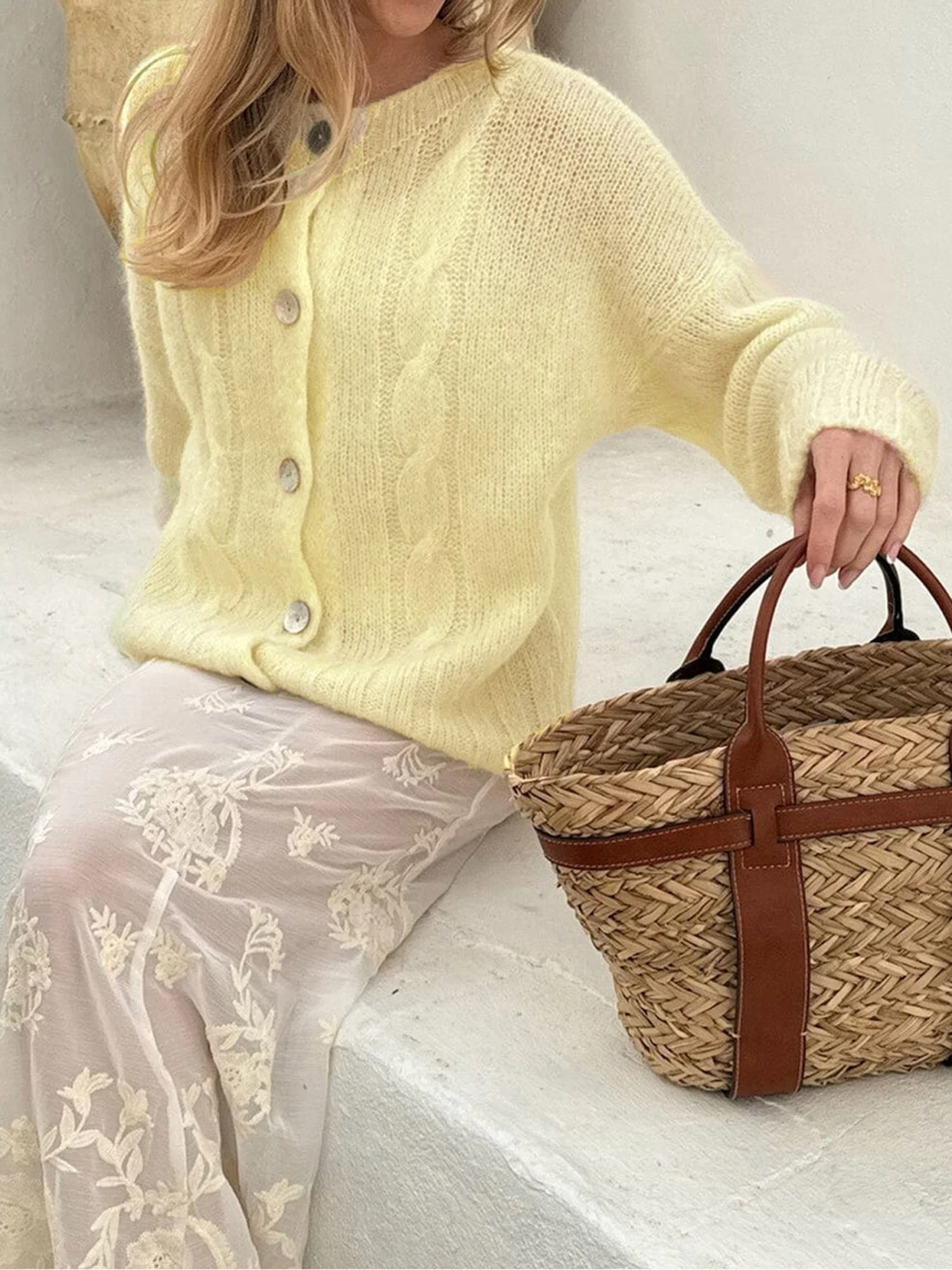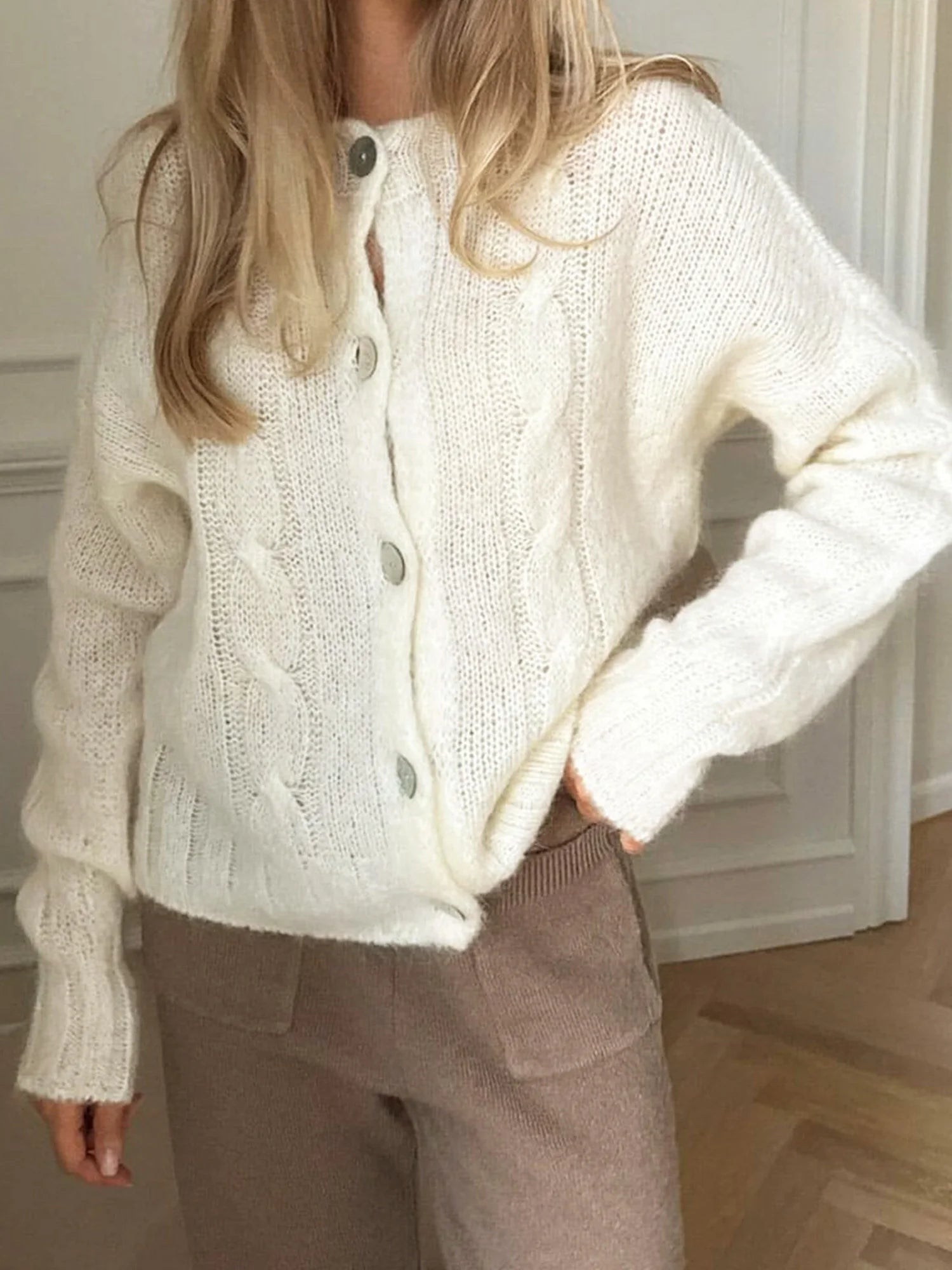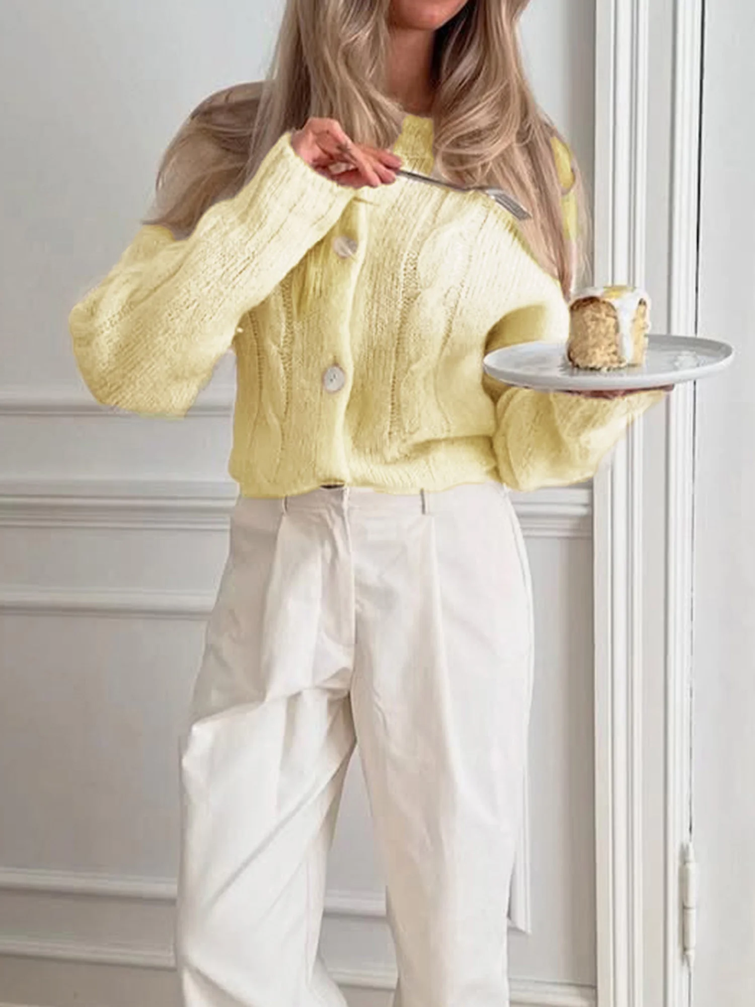 Cyflymder Women s Cable Knit Cardigan Sweater with Long Sleeves and Button Closure - Cozy Fall Jacket for Casual Streetwear Style