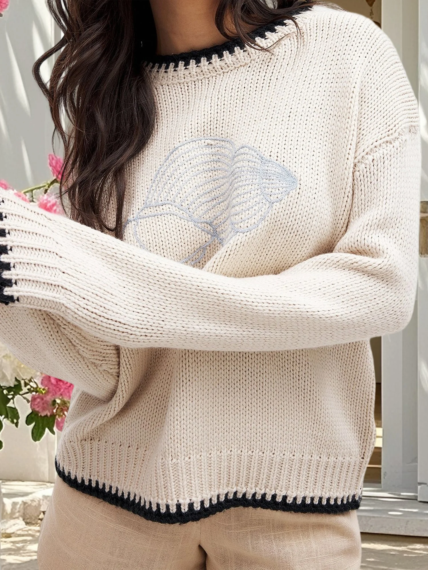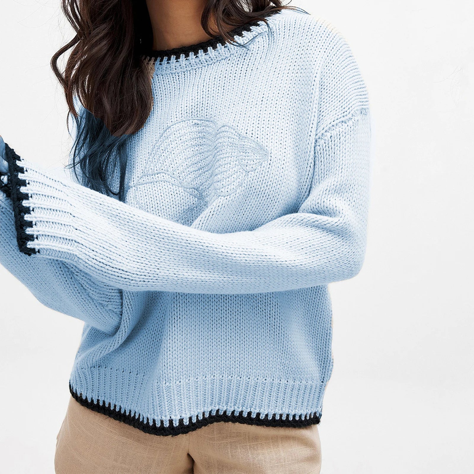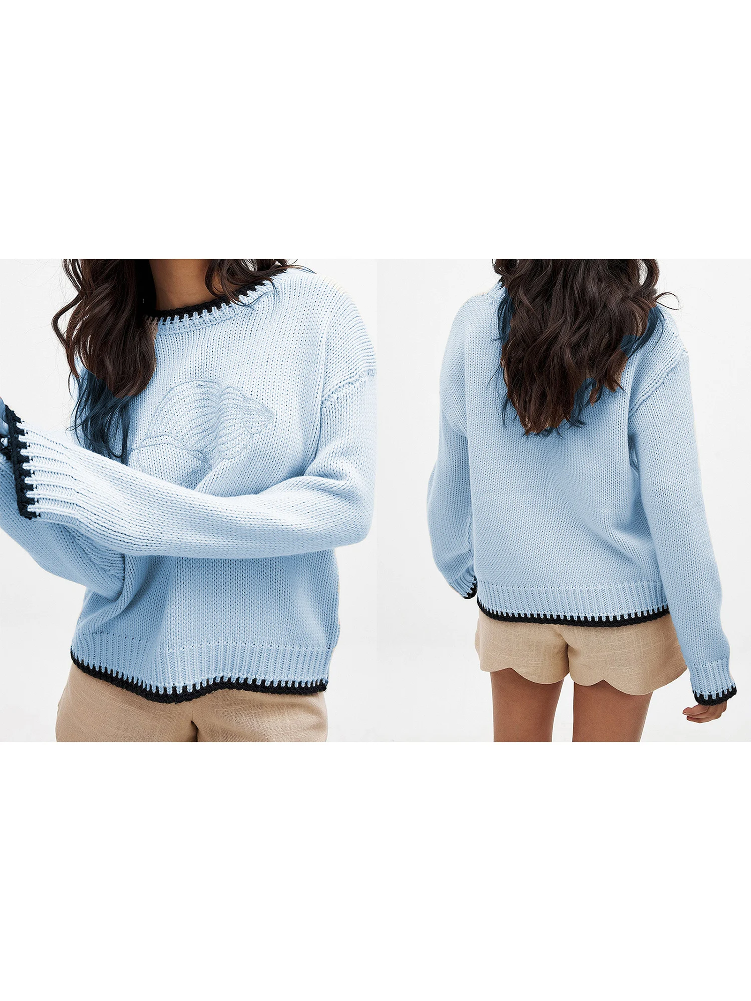 Cyflymder Women s Cable Knit Sweaters Long Sleeve V-Neck Star Embroidery Pullovers Oversized Fit Tops with Ribbed Trim