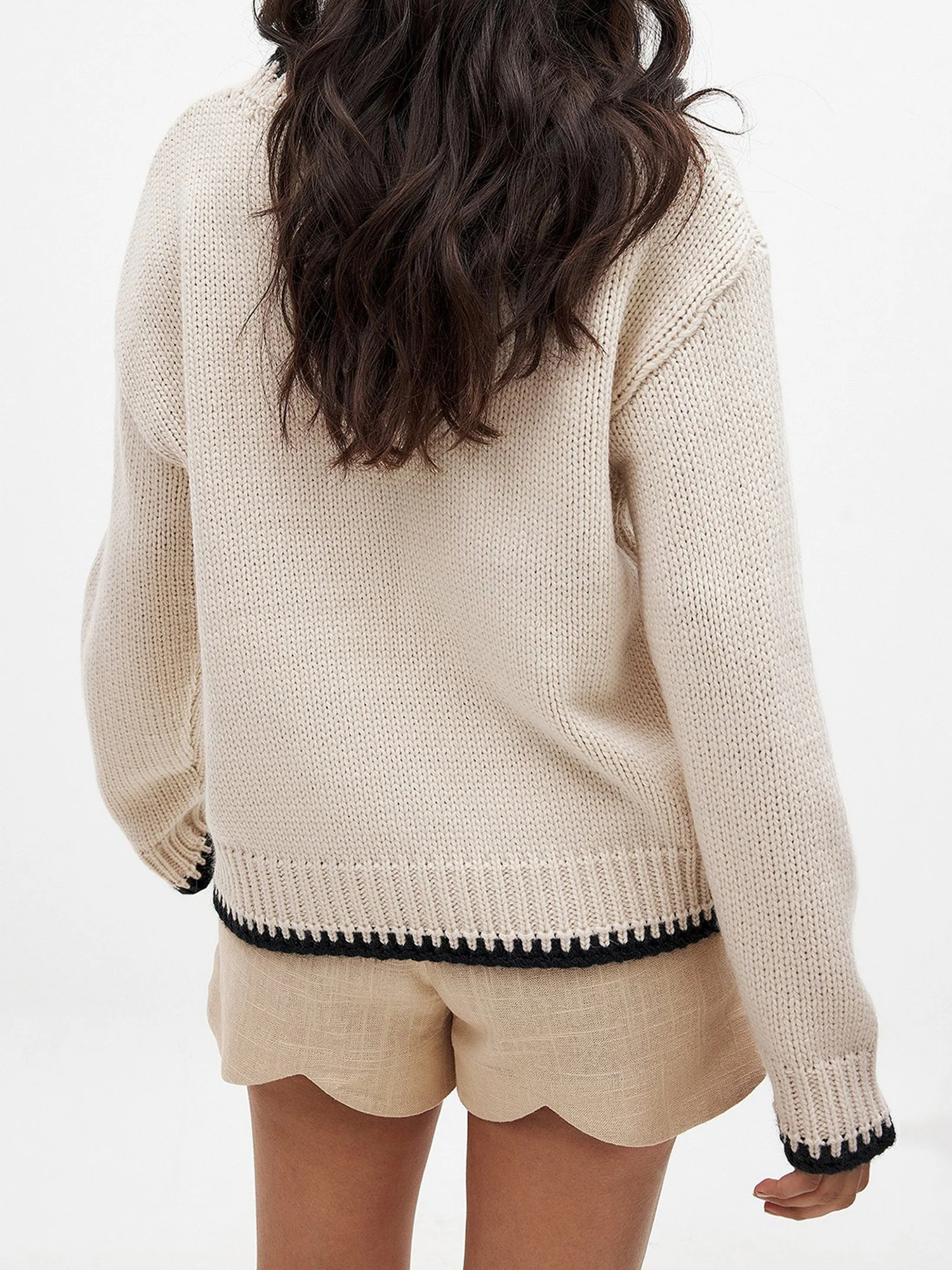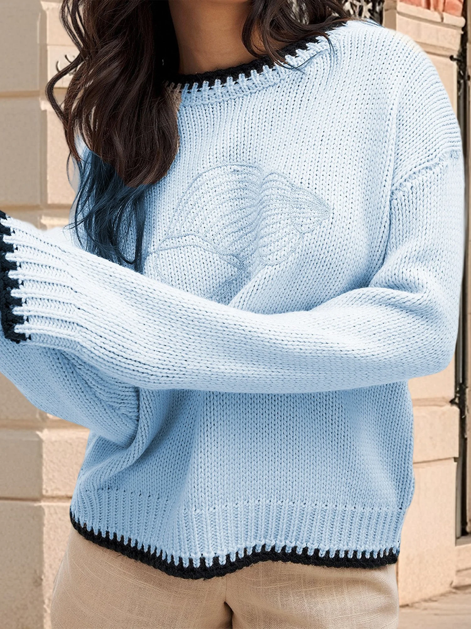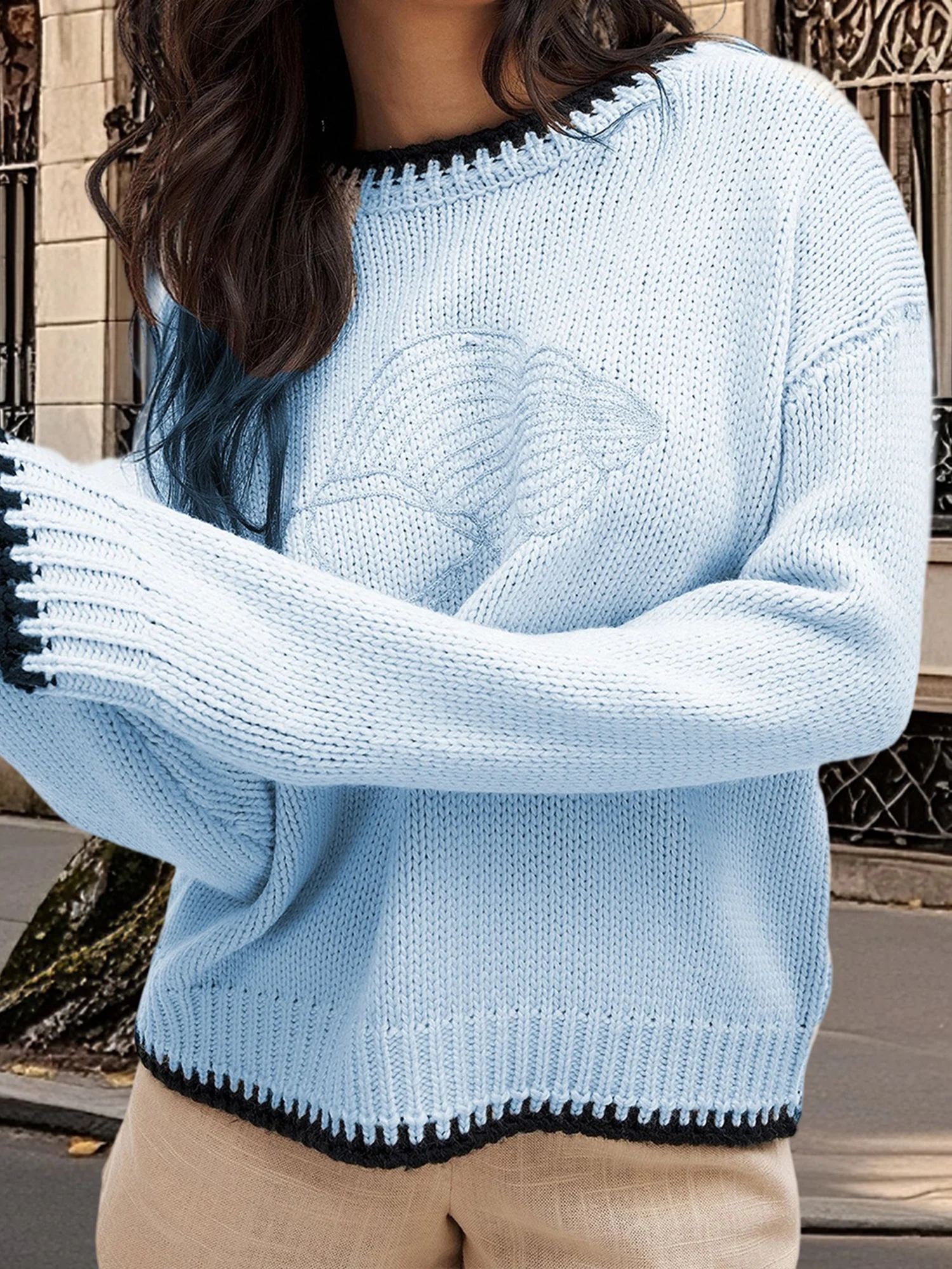 Cyflymder Women s Cable Knit Sweaters Long Sleeve V-Neck Star Embroidery Pullovers Oversized Fit Tops with Ribbed Trim