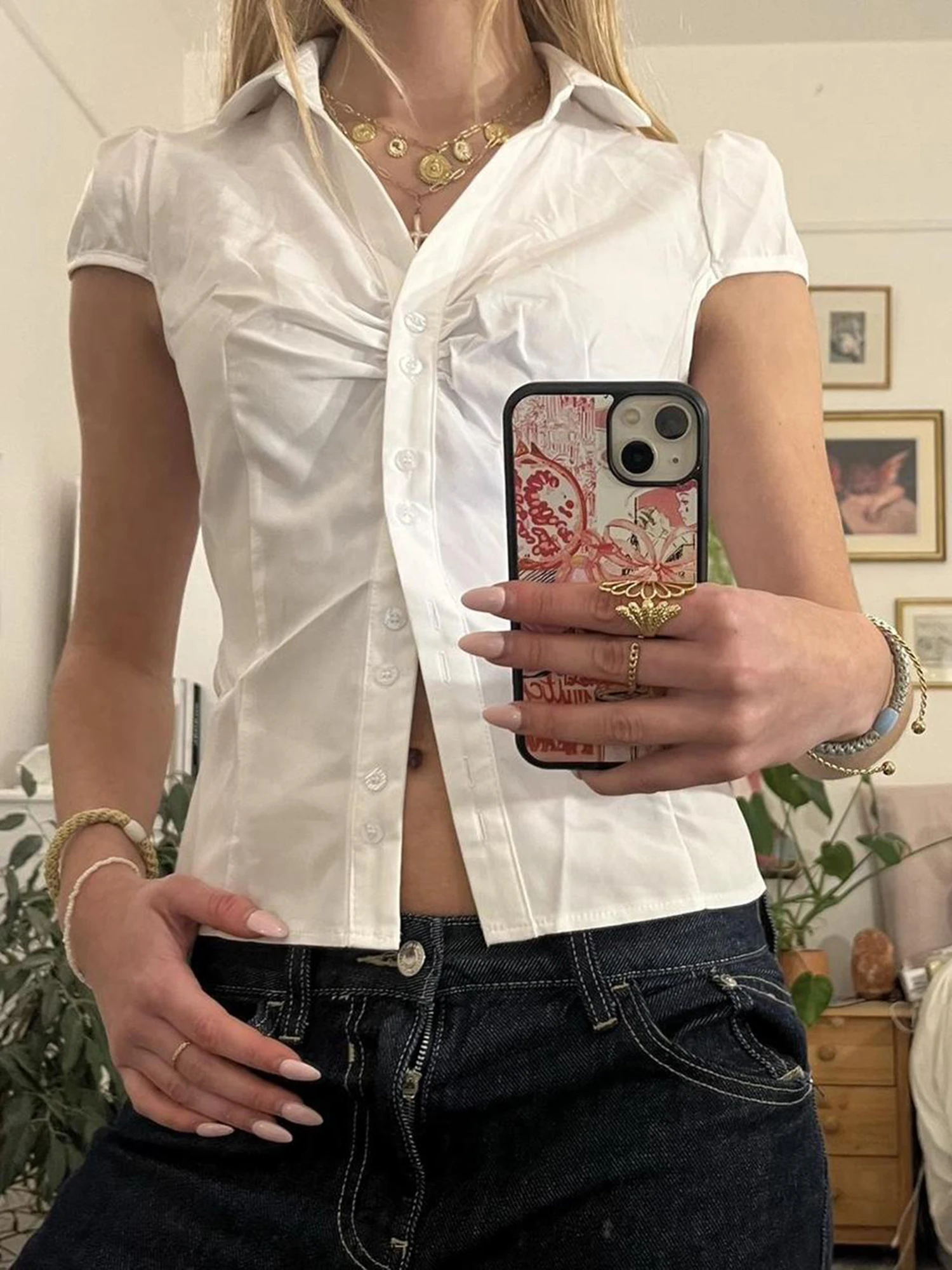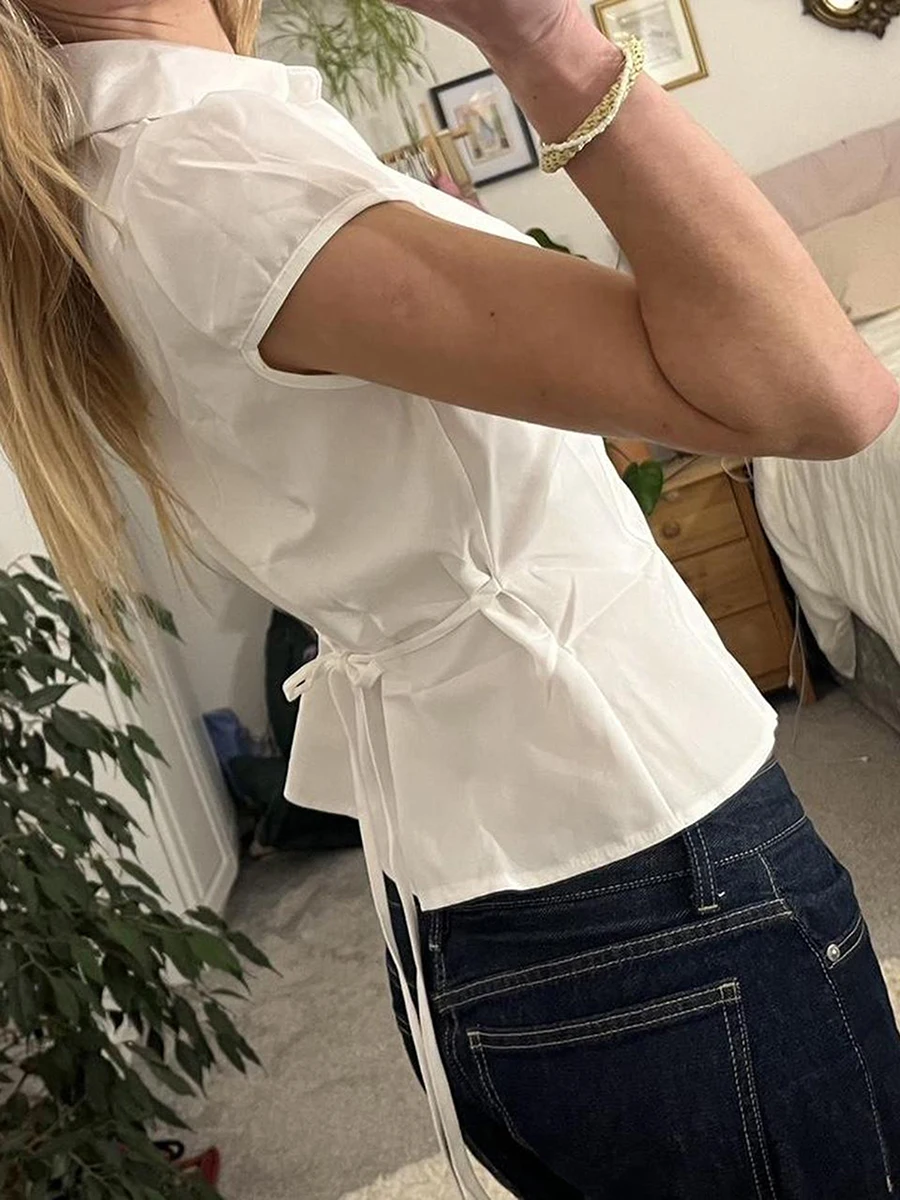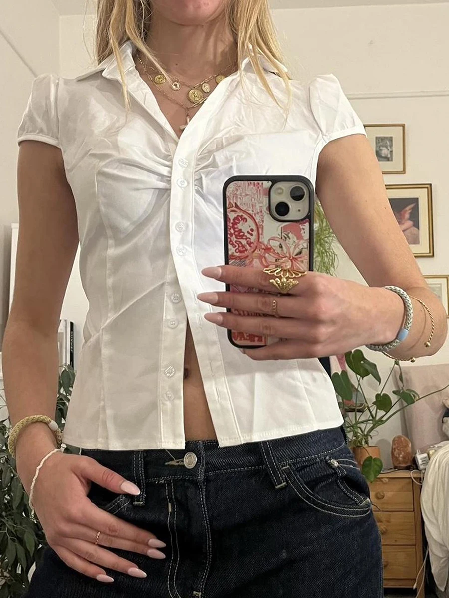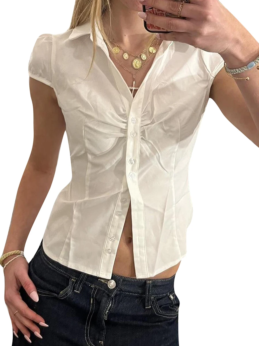 Cyflymder Women s Casual Fit Solid Color Button Down Shirt with Lapel V Neck and Short Sleeves - Perfect for Summer Fashion