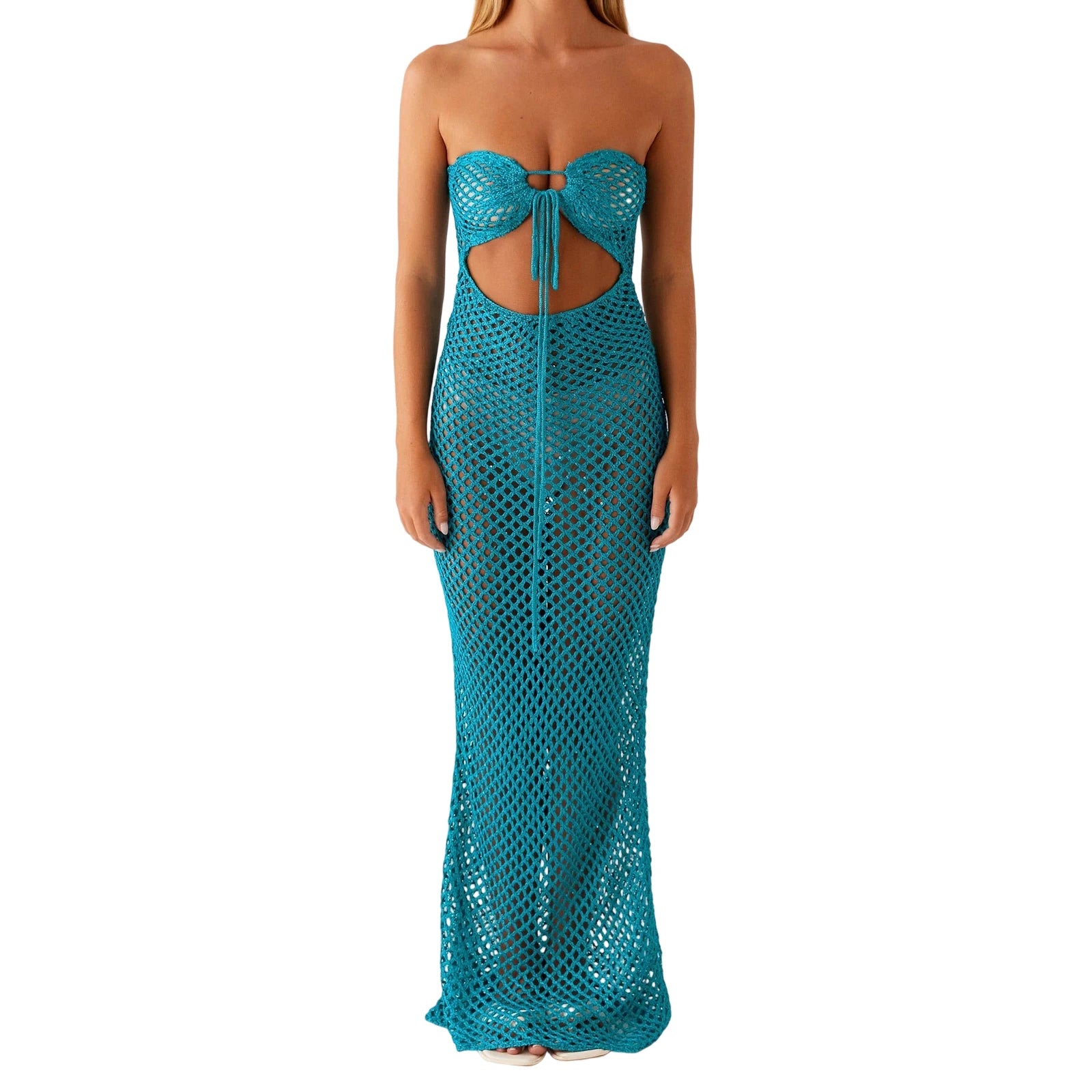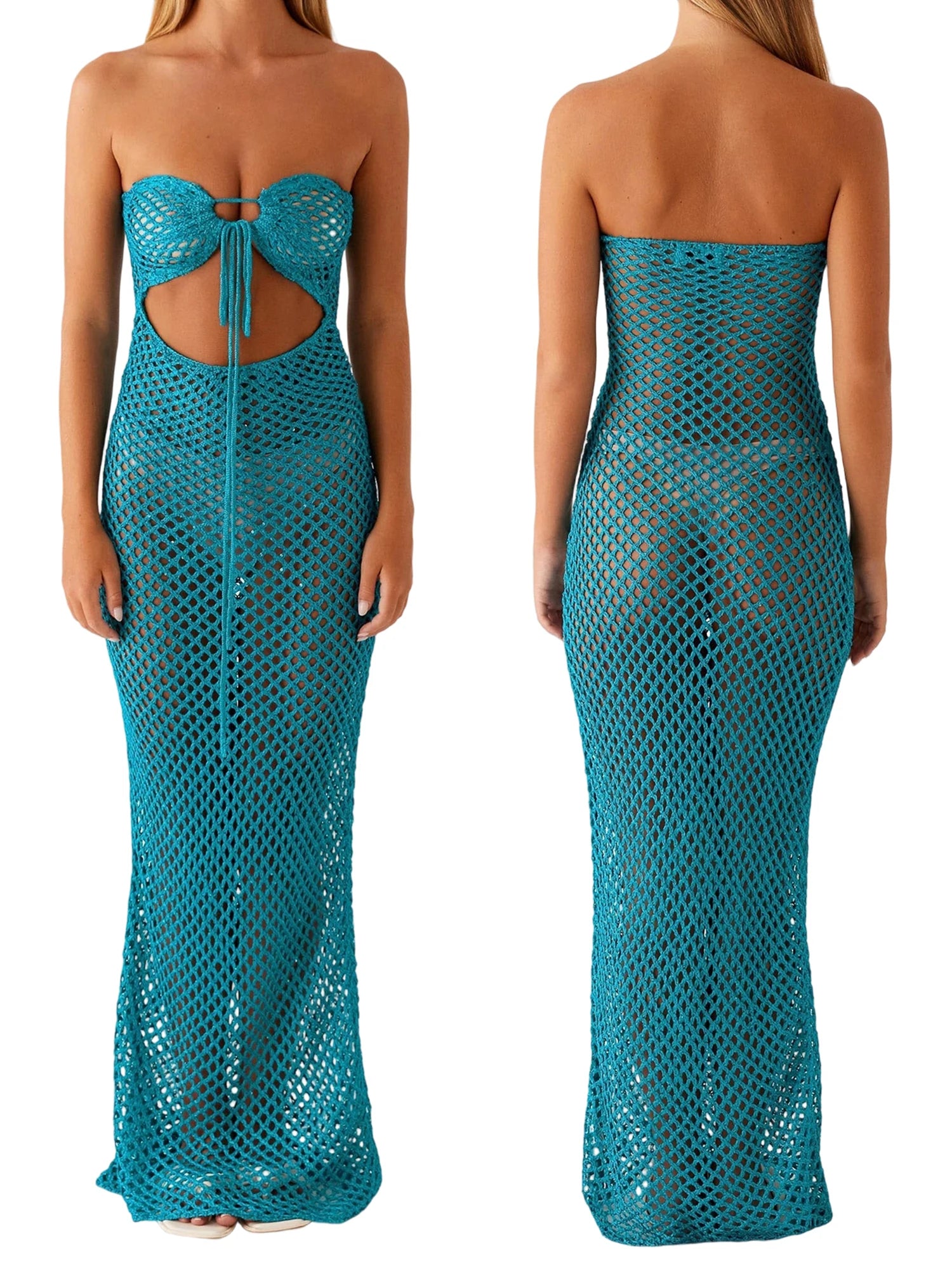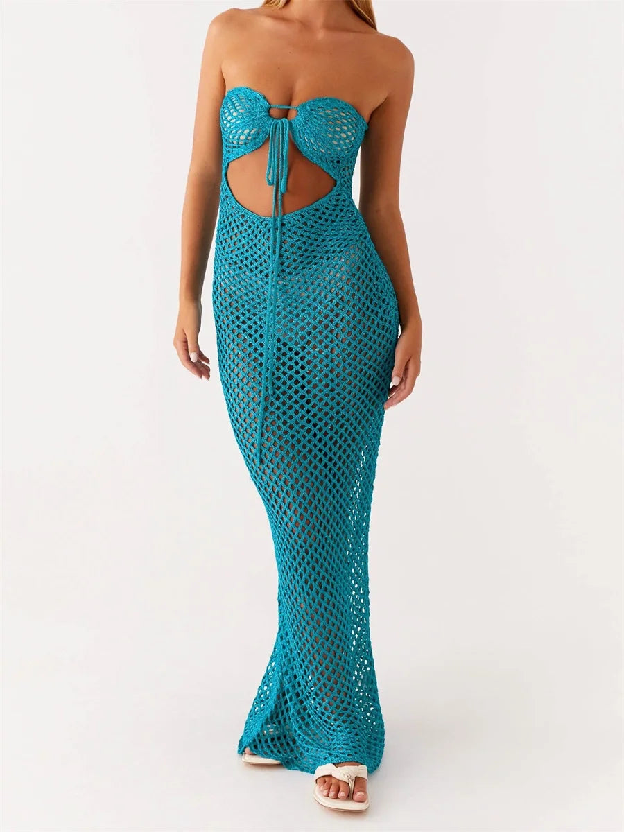 Cyflymder Women s Crochet Dress with Lace-Up Front and Backless Design Solid Color Strapless Tube Dress for Summer Beachwear and Bikini