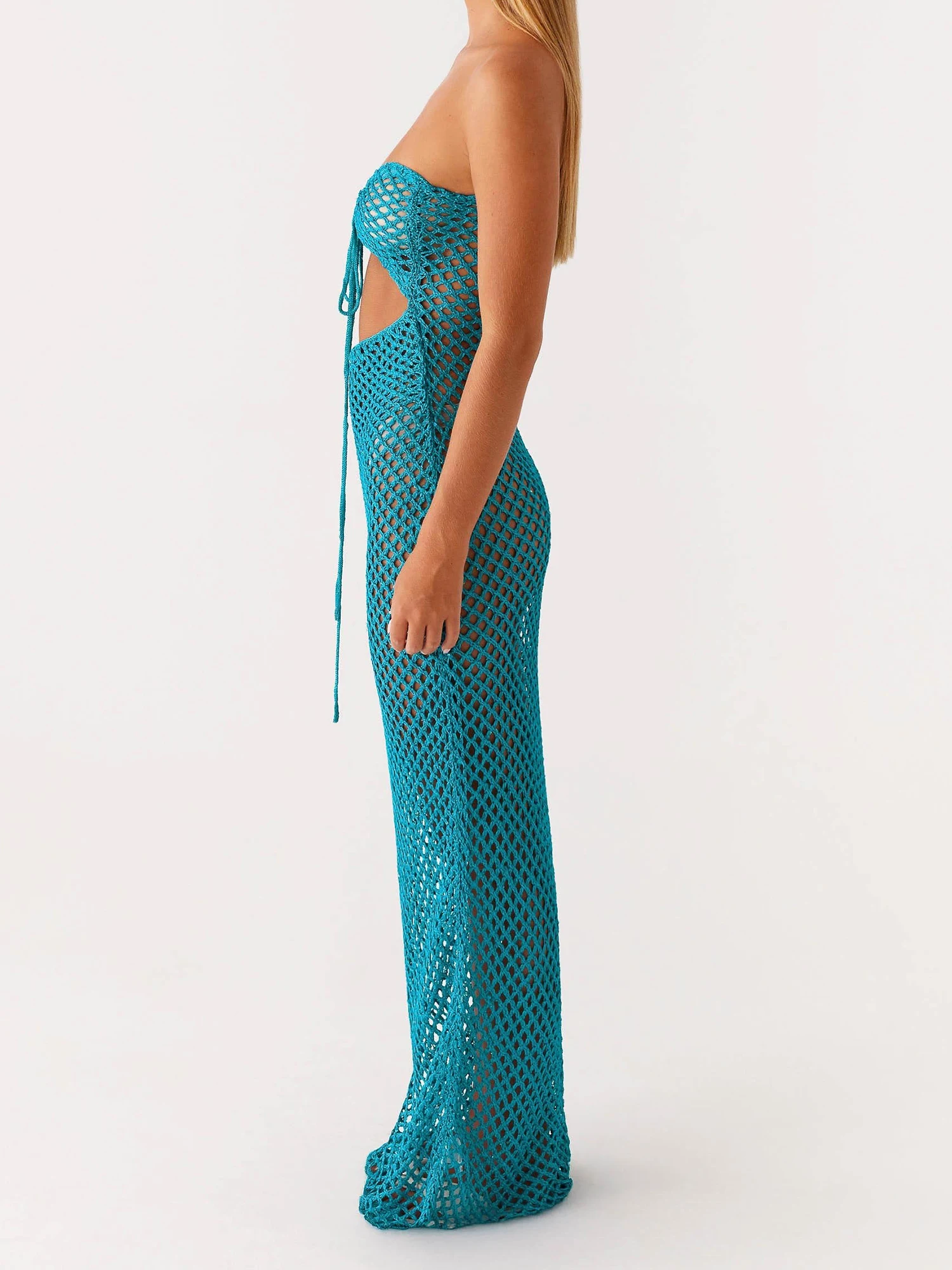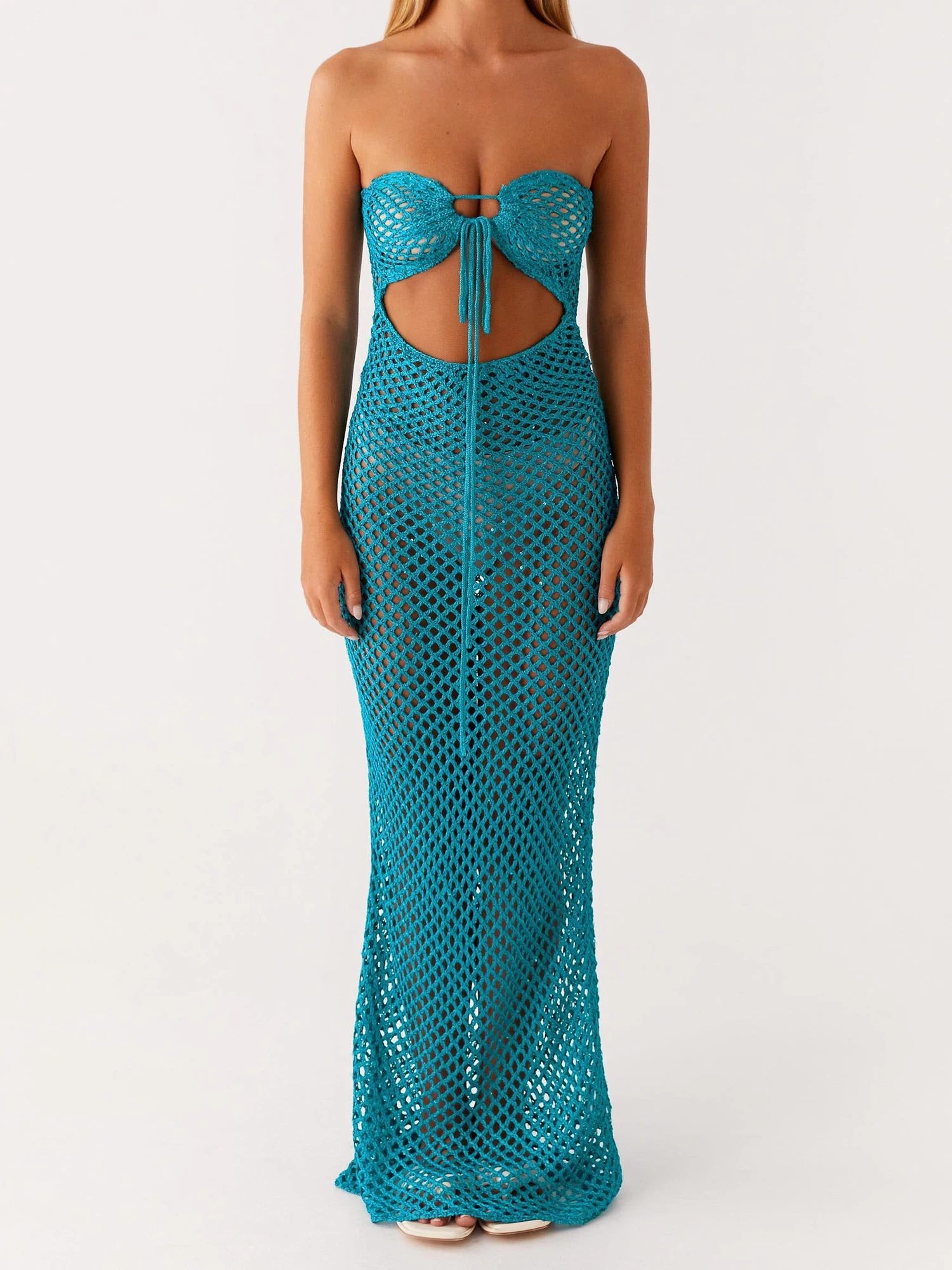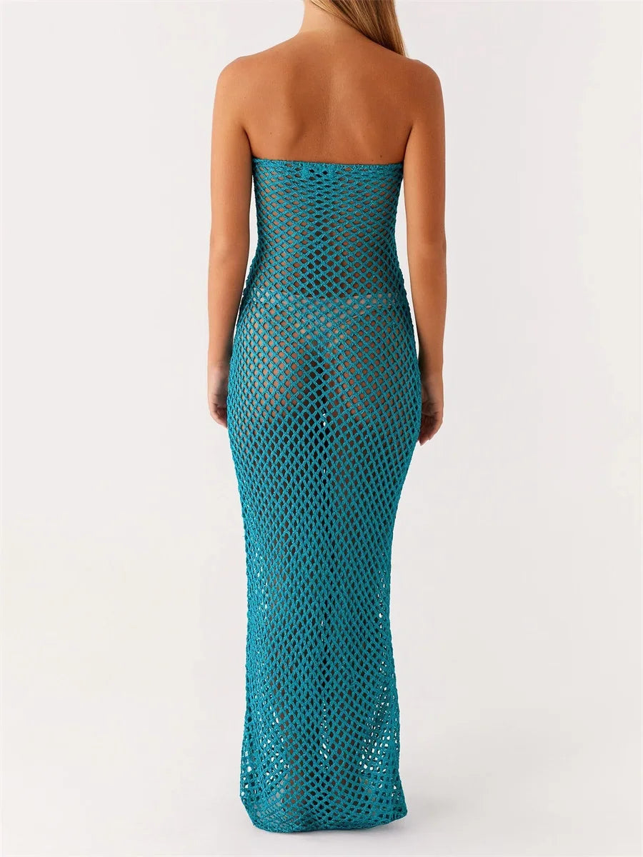 Cyflymder Women s Crochet Dress with Lace-Up Front and Backless Design Solid Color Strapless Tube Dress for Summer Beachwear and Bikini