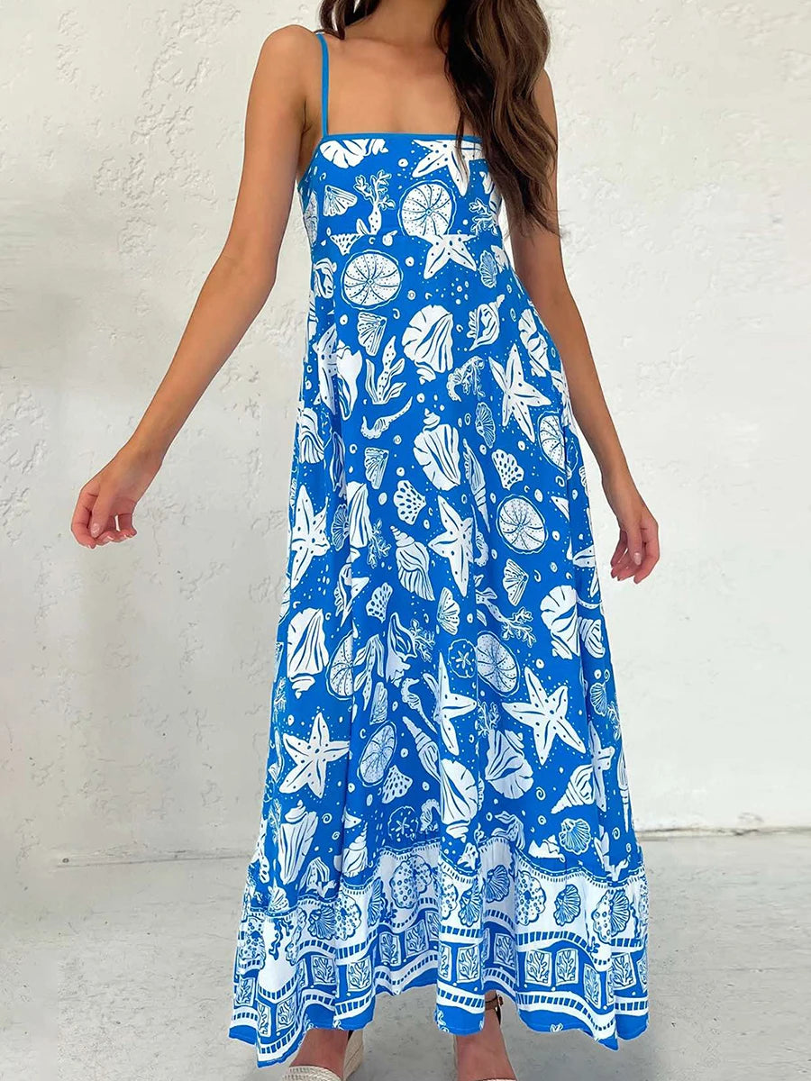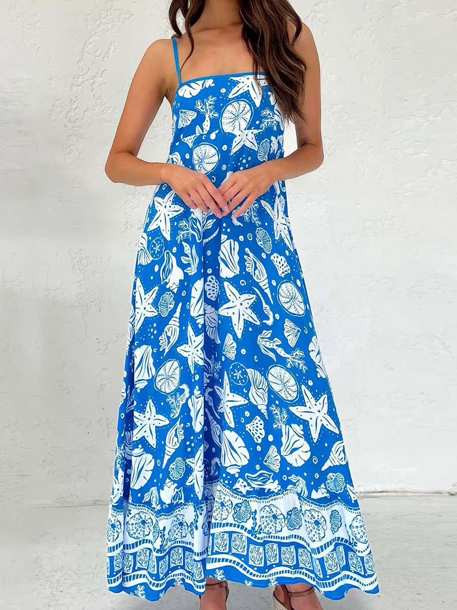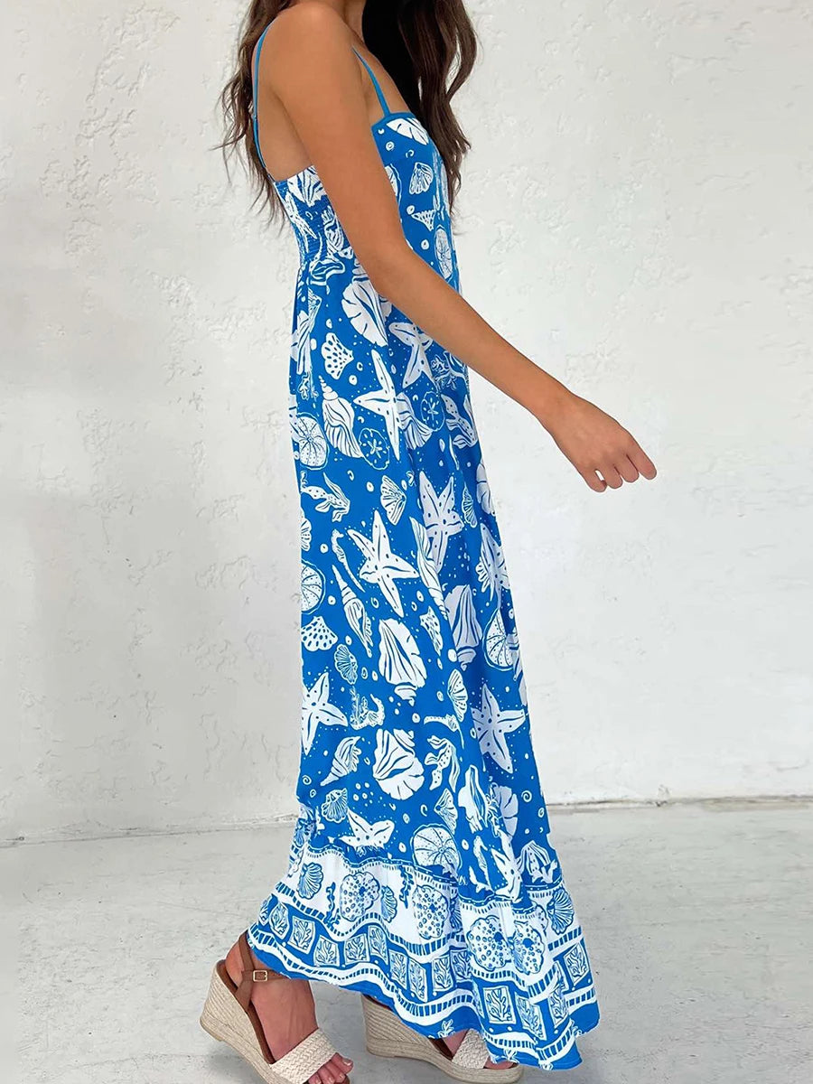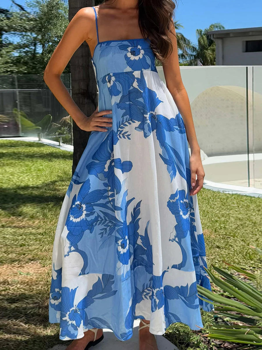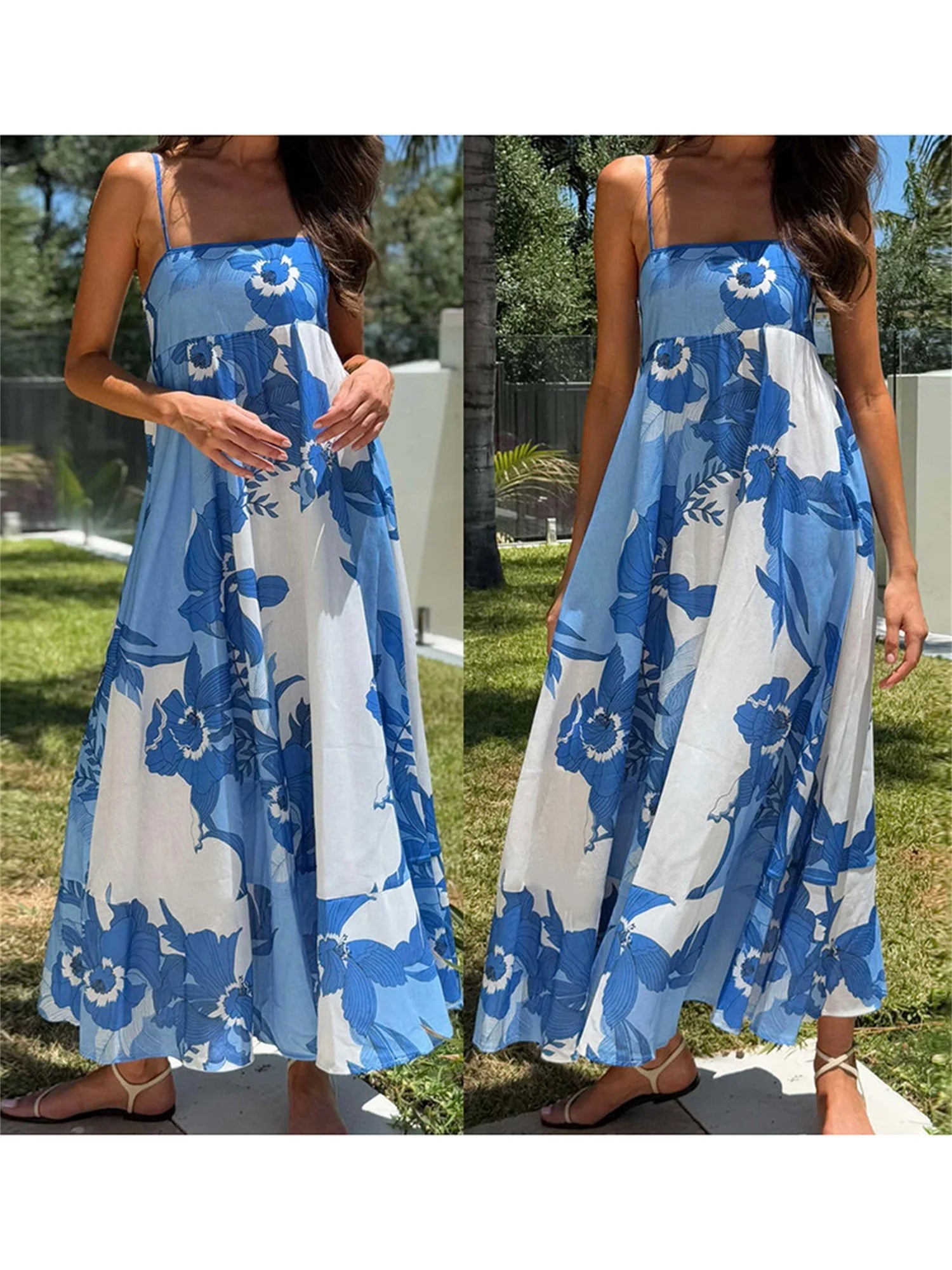 Cyflymder Women s Elegant Floral Print Sleeveless Maxi Dress with Adjustable Spaghetti Straps and A-Line Silhouette for Summer Beach