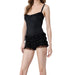 Cyflymder Women s Floral Print Off Shoulder Romper Ruffle Sleeveless Jumpsuit Casual Summer Beach Playsuit with Belt