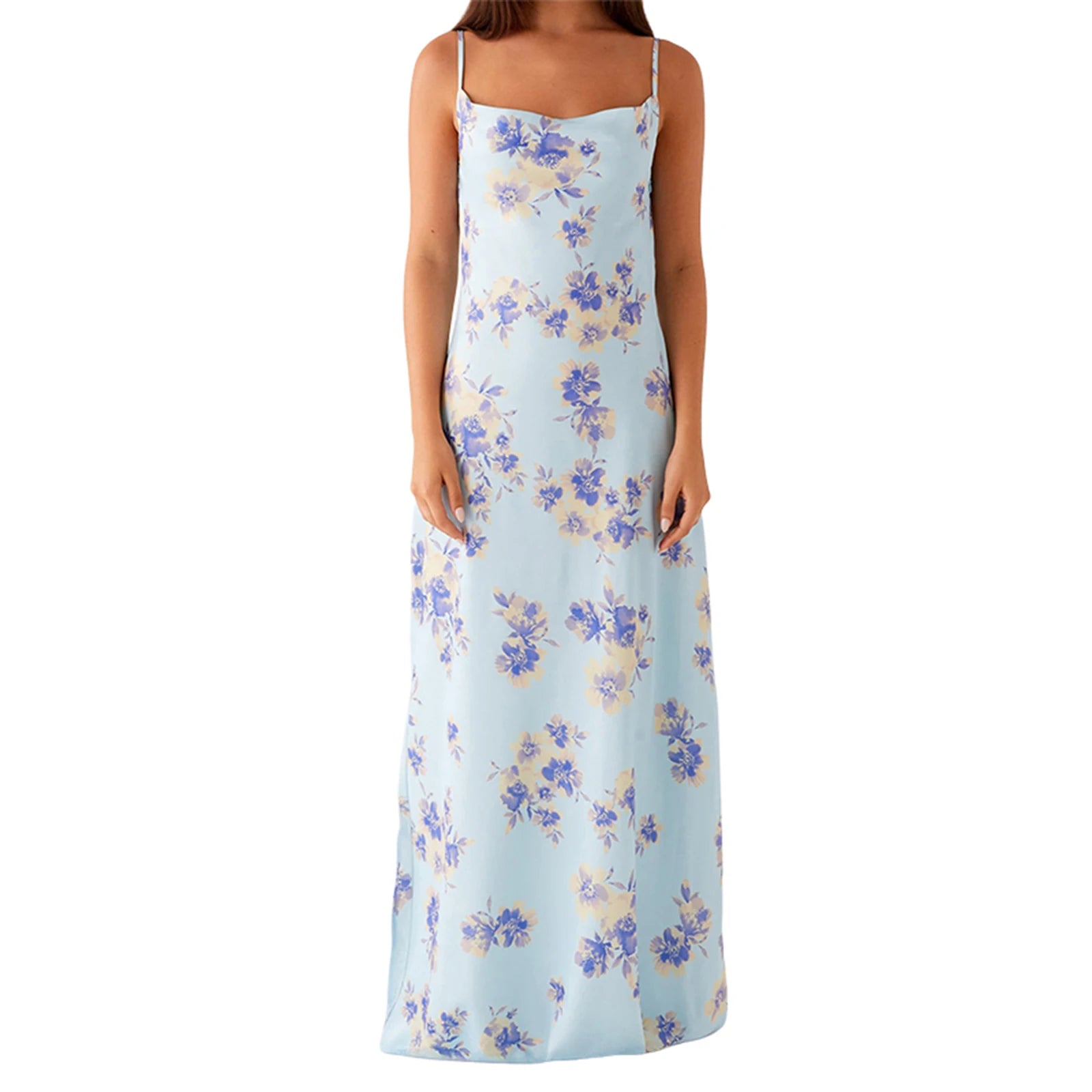Cyflymder Women s Floral Print Spaghetti Strap Maxi Dress with Sleeveless Open Back Design for Summer Beach Parties and Events