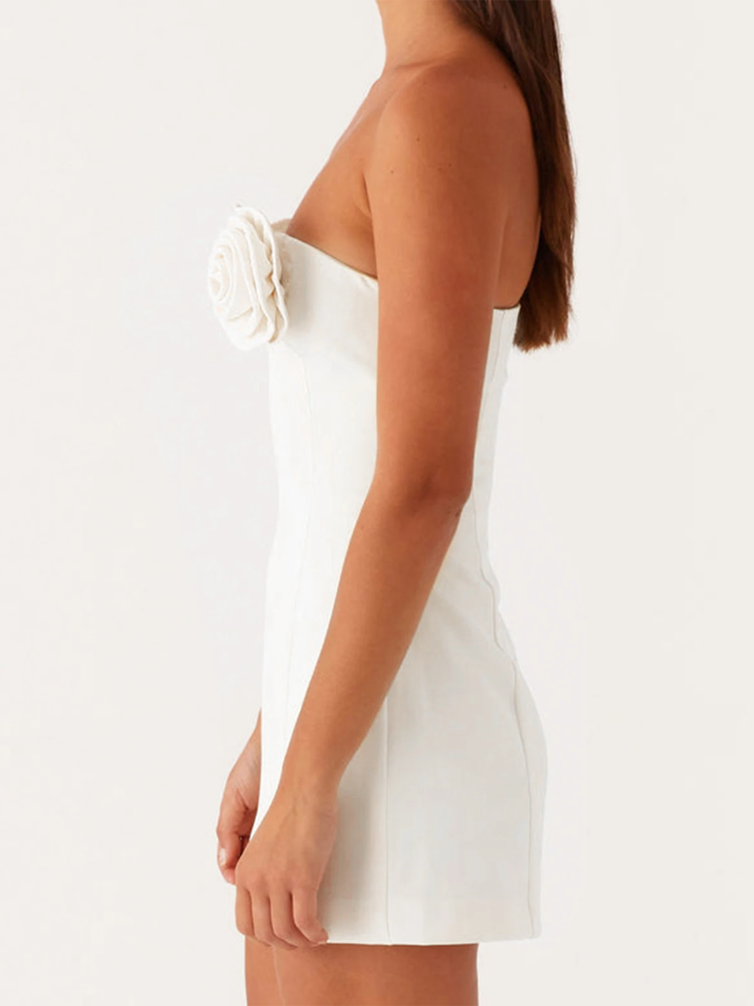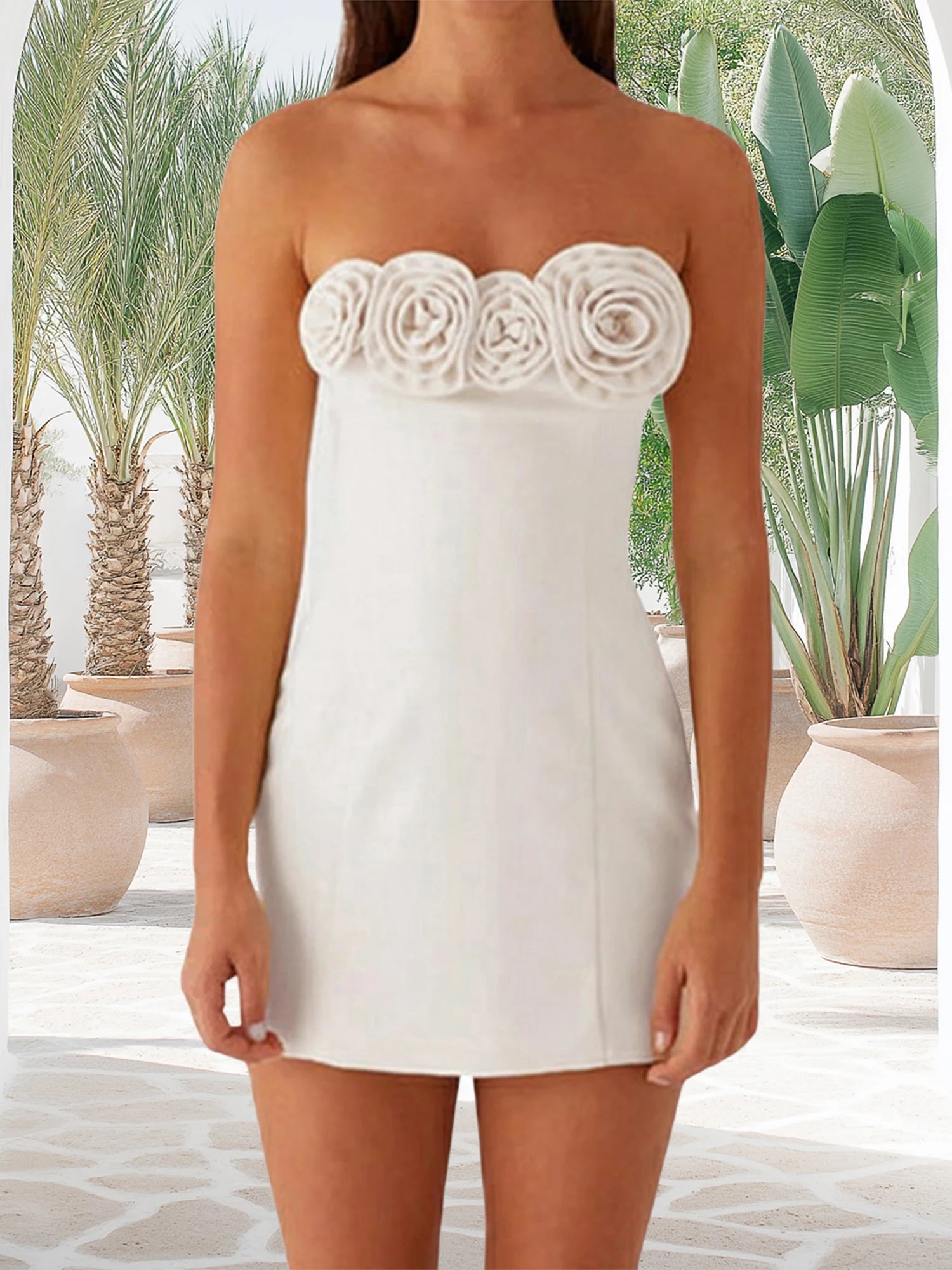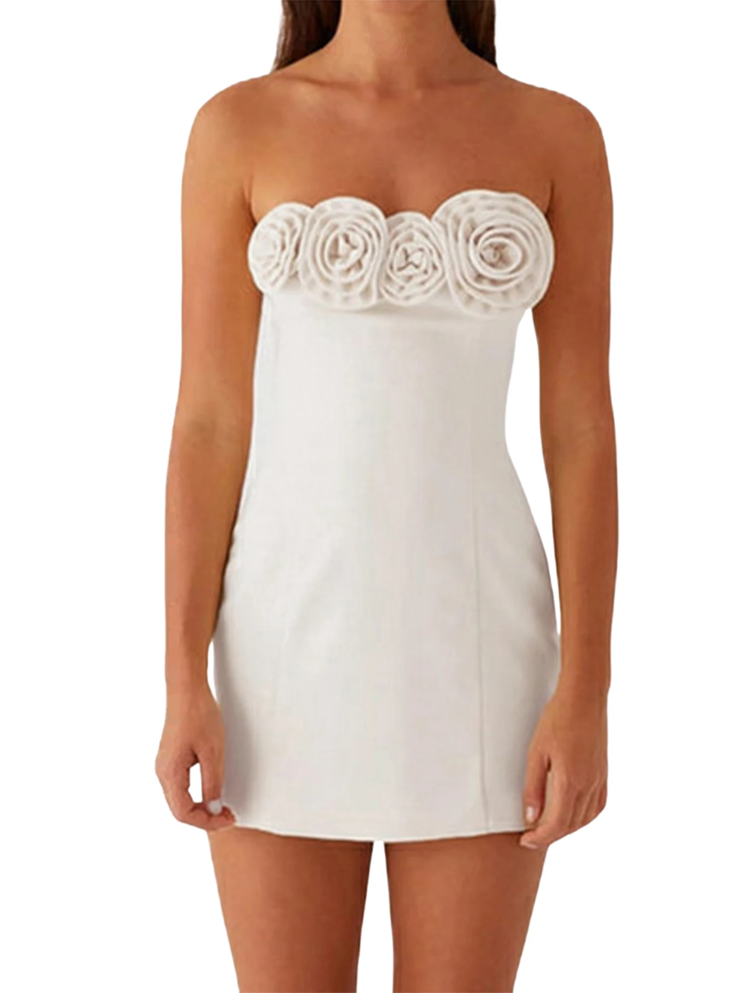 Cyflymder Women s Floral Print Strapless Backless Fit Mini Dress for Summer Clubwear Tube Dress with Flattering Silhouette