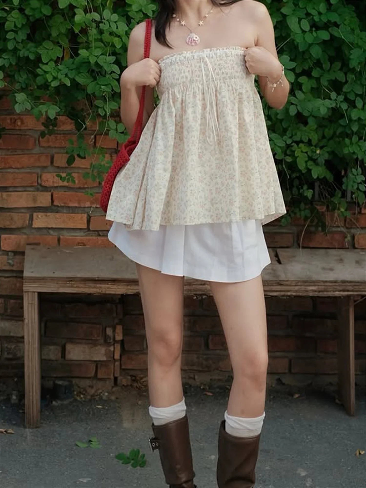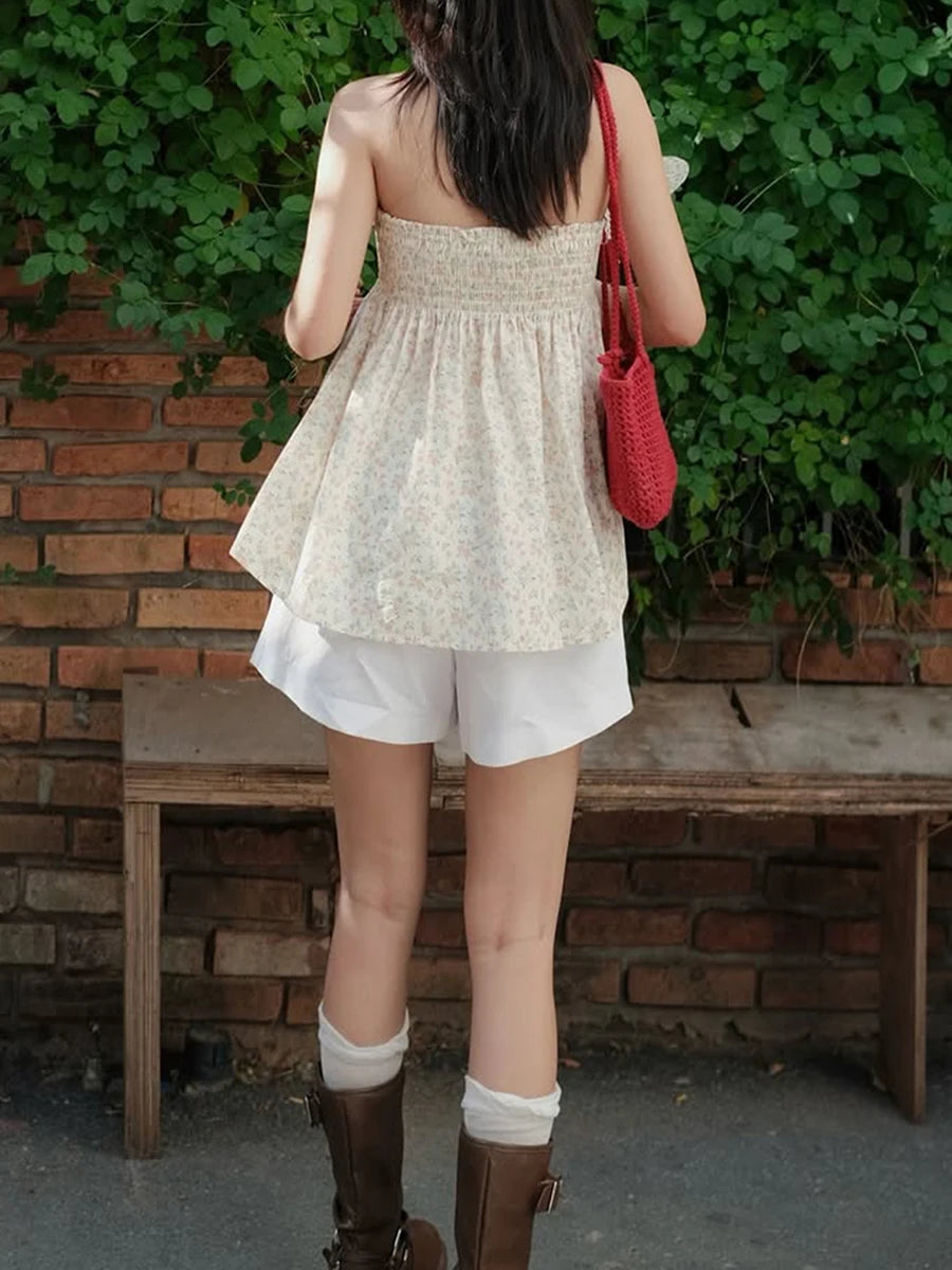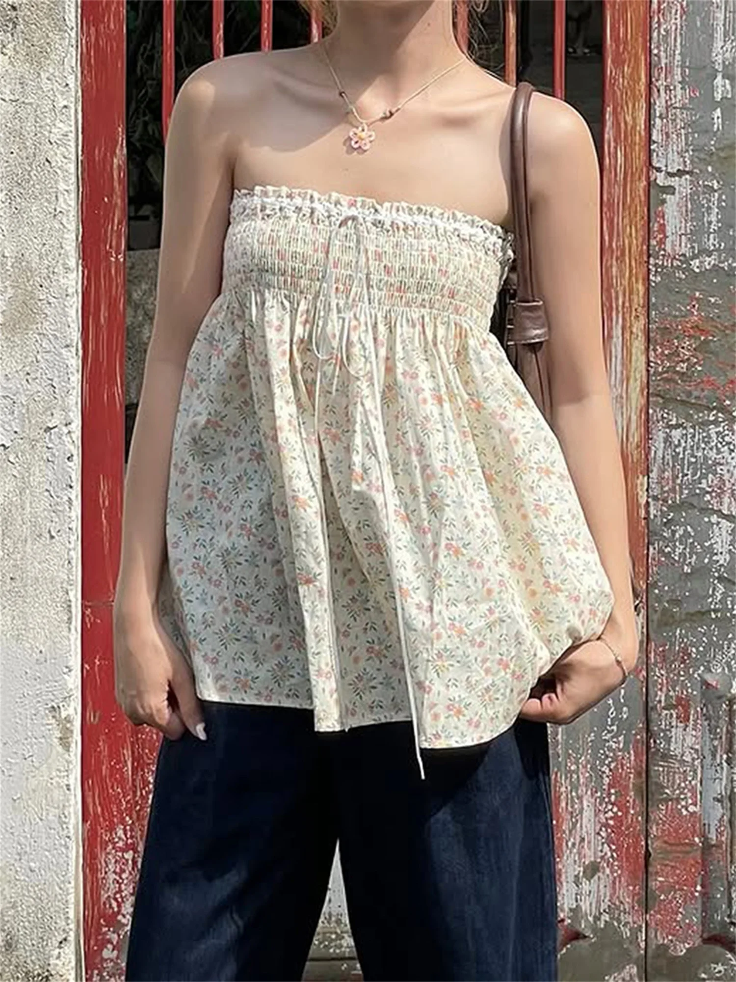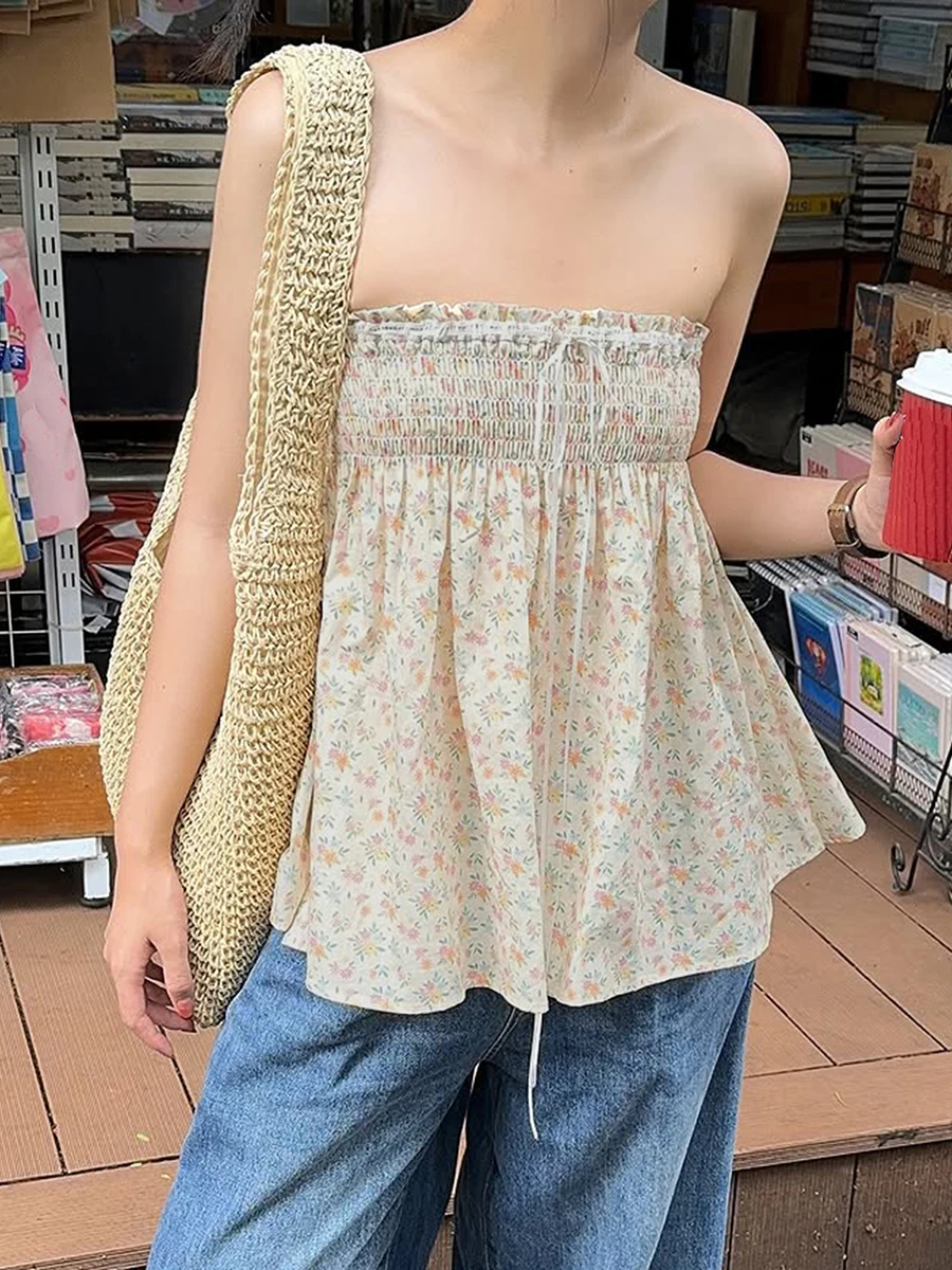 Cyflymder Women s Floral Print Strapless Tube Top with Pleated Detailing Backless Design and Perfect for Summer Clubwear