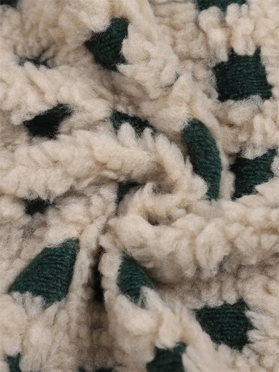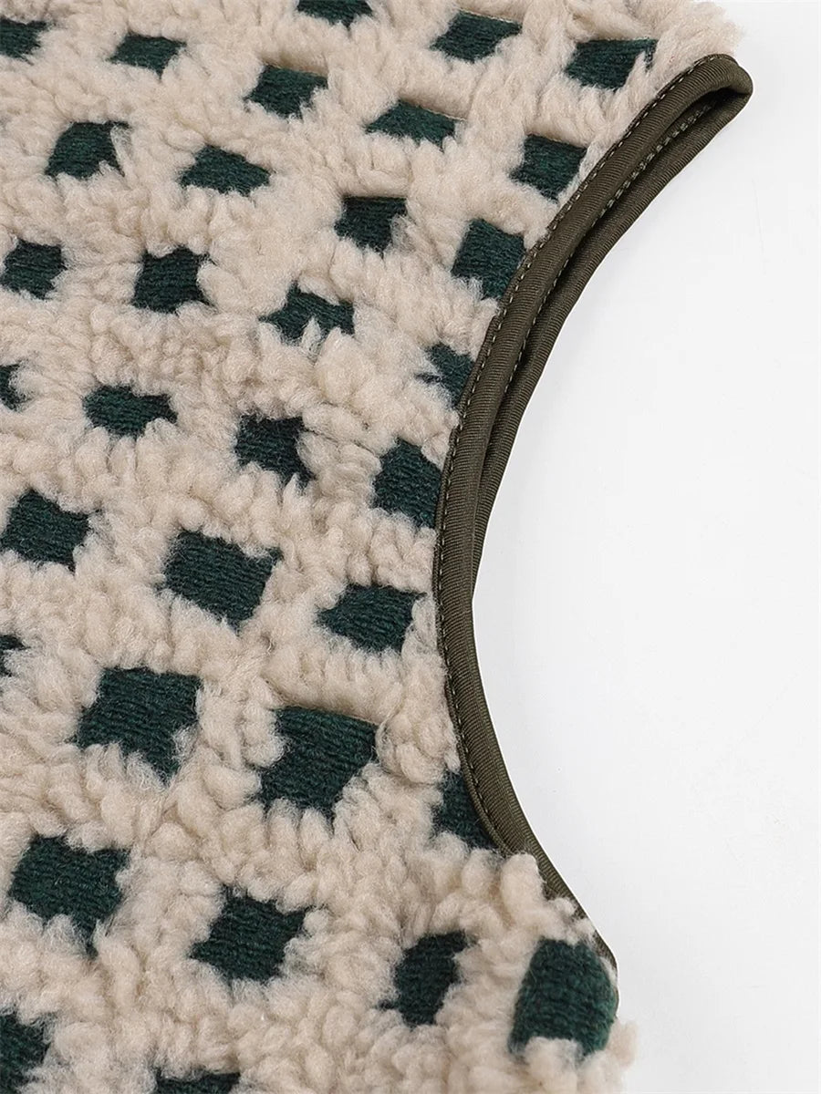 Cyflymder Women’s Fuzzy Checkered Vest Sleeveless Stand Collar Zip Up Vest Jacket Loose Spring Fall Warm Outwear