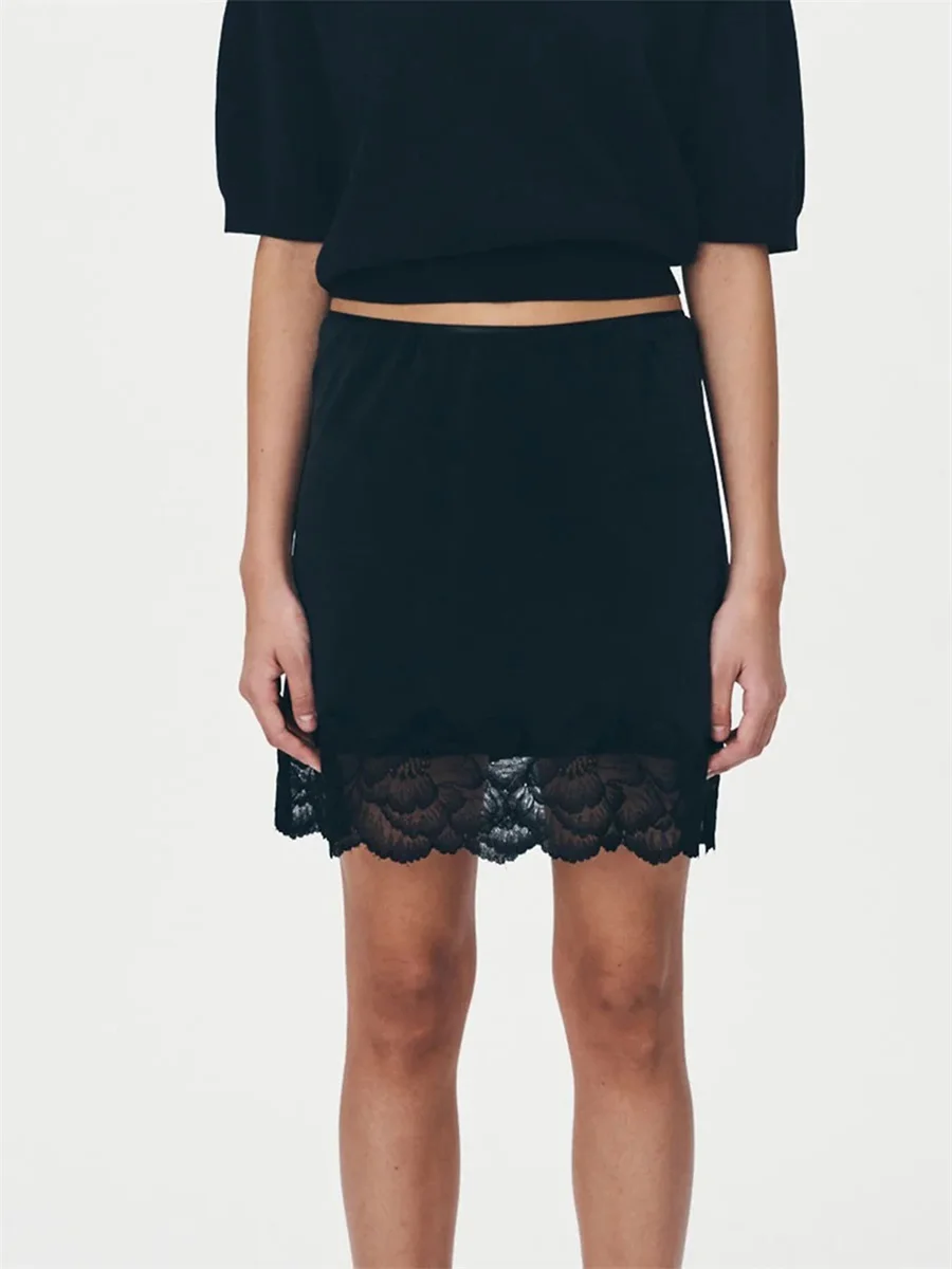Cyflymder Women s Lace Trimmed Half Slip Skirt Extender with Adjustable Elastic Waistband - Mini Underskirt Dress Enhancer