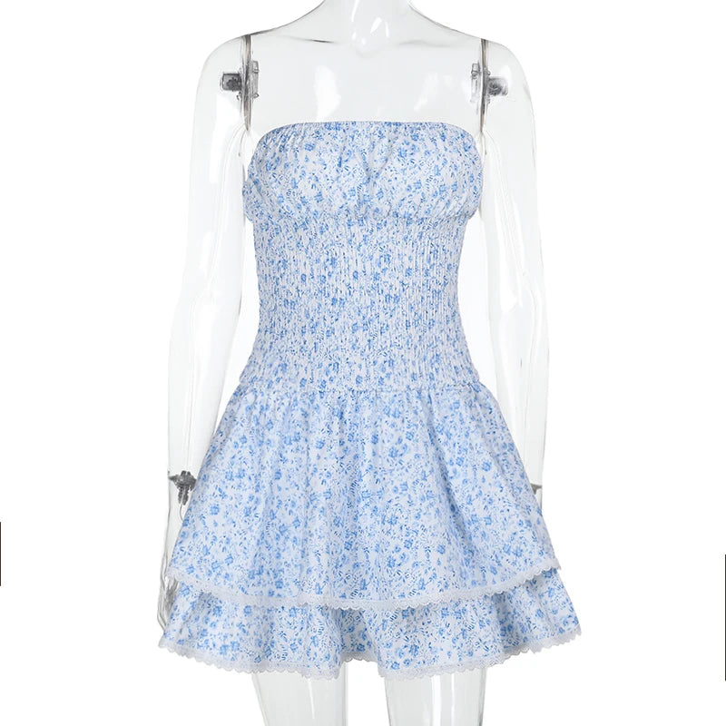 Cyflymder Women s Mini Floral Bandeau Dress Sleeveless Off Shoulder Tiered Tube Top Dress