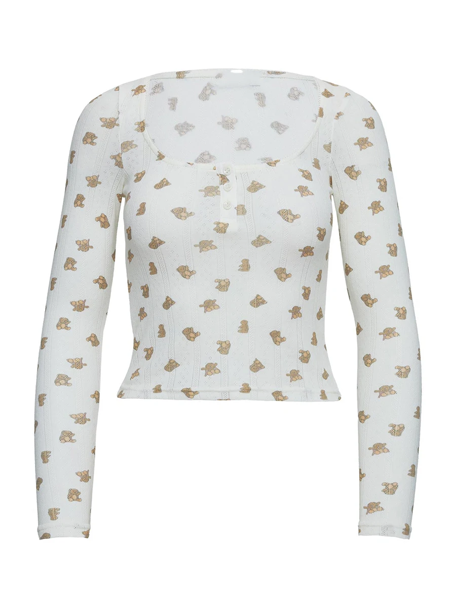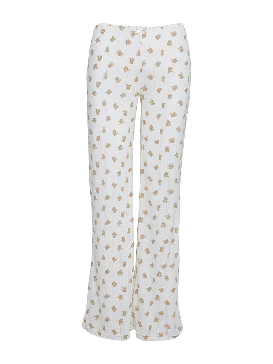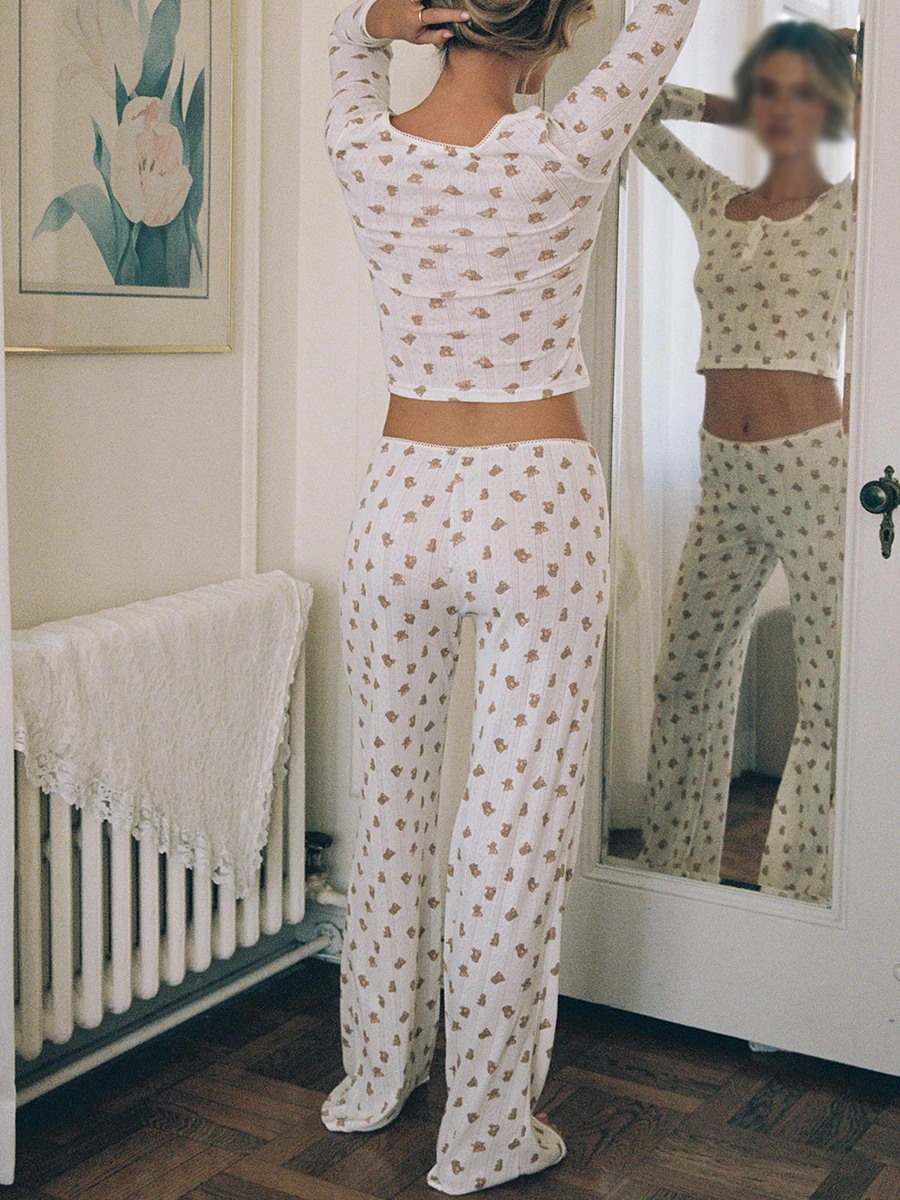Cyflymder Women s Pajama Set with Cute Heart and Bear Print Long Sleeve Crop Tops and Elastic Waist Long Pants 2 Piece Lounge Outfit