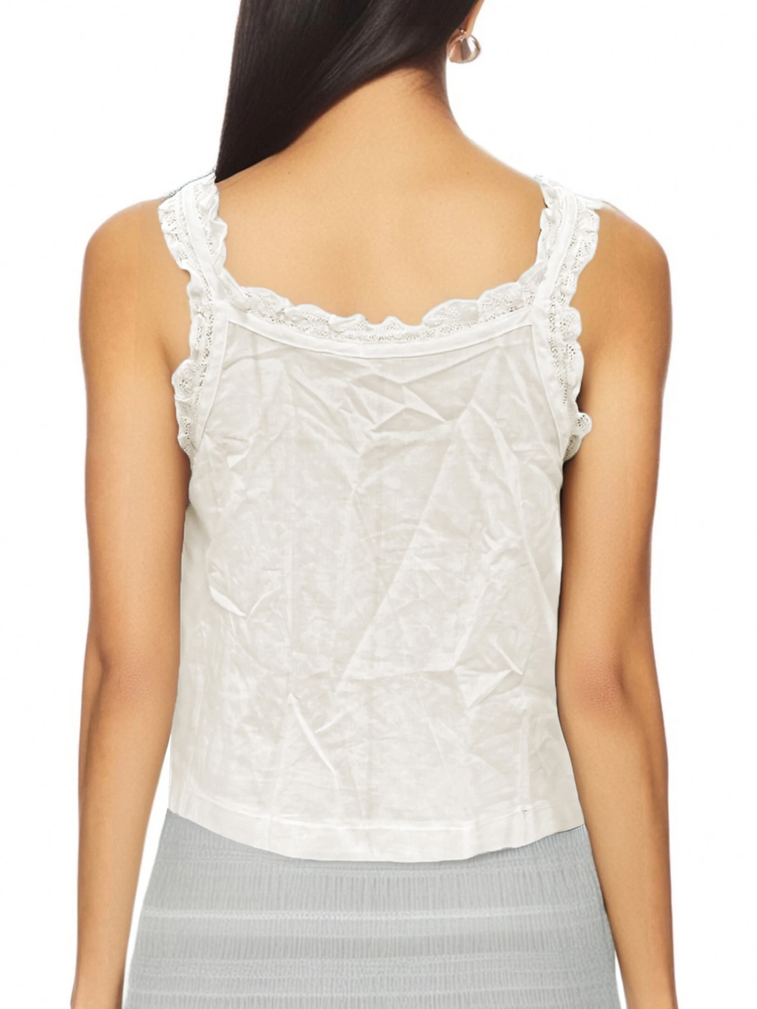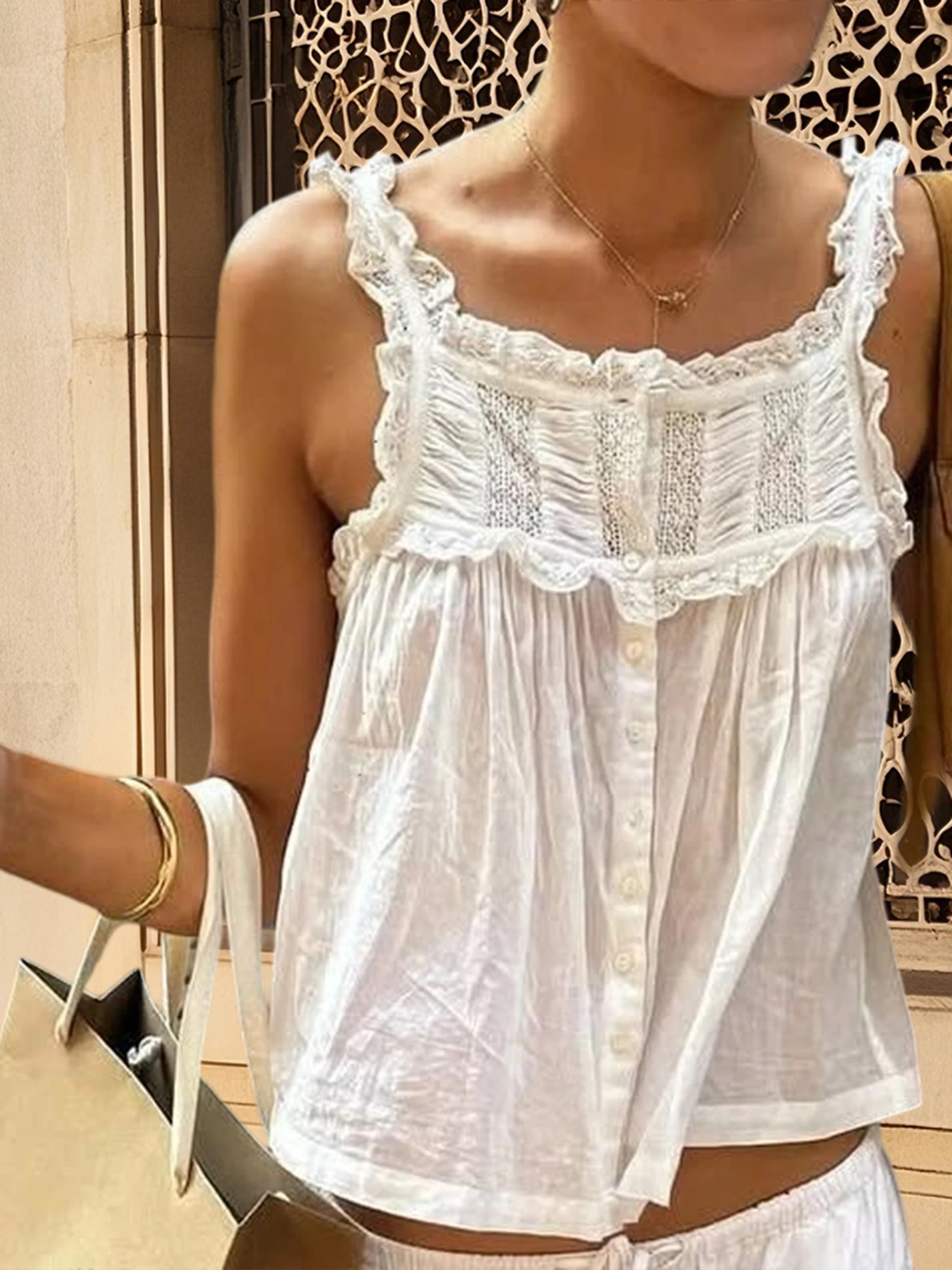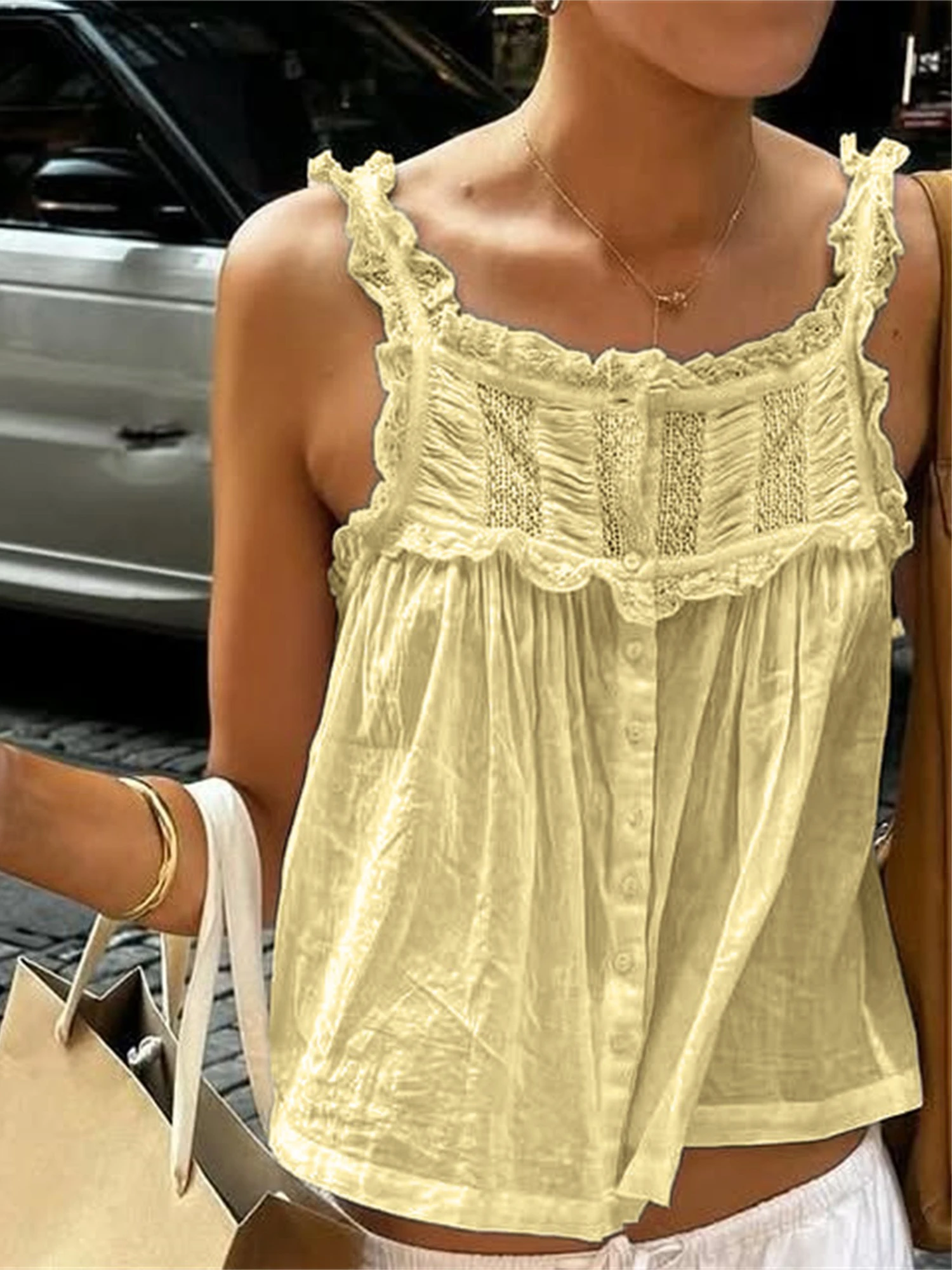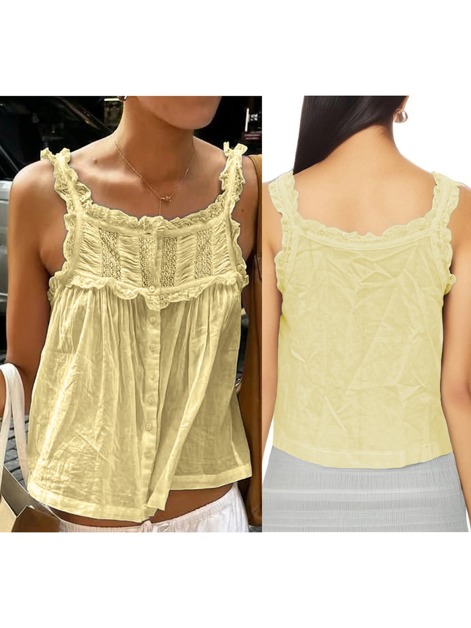 Cyflymder Women s Sleeveless Lace Patchwork Tank Top with Button Detail and Casual Aesthetic Streetwear Style for Summer Wear