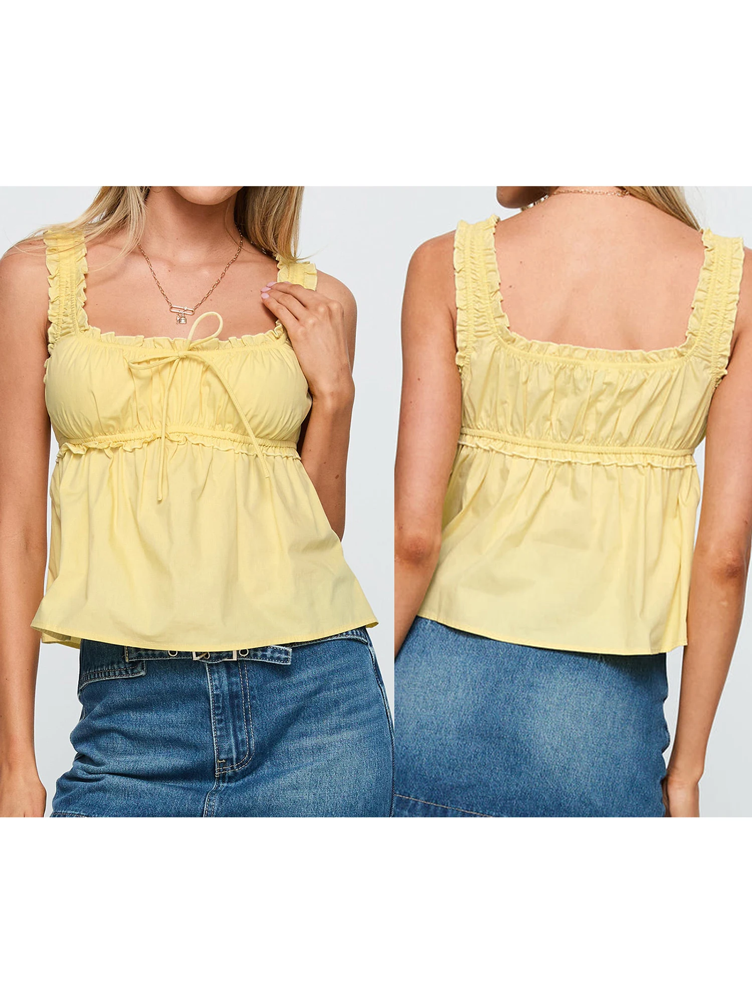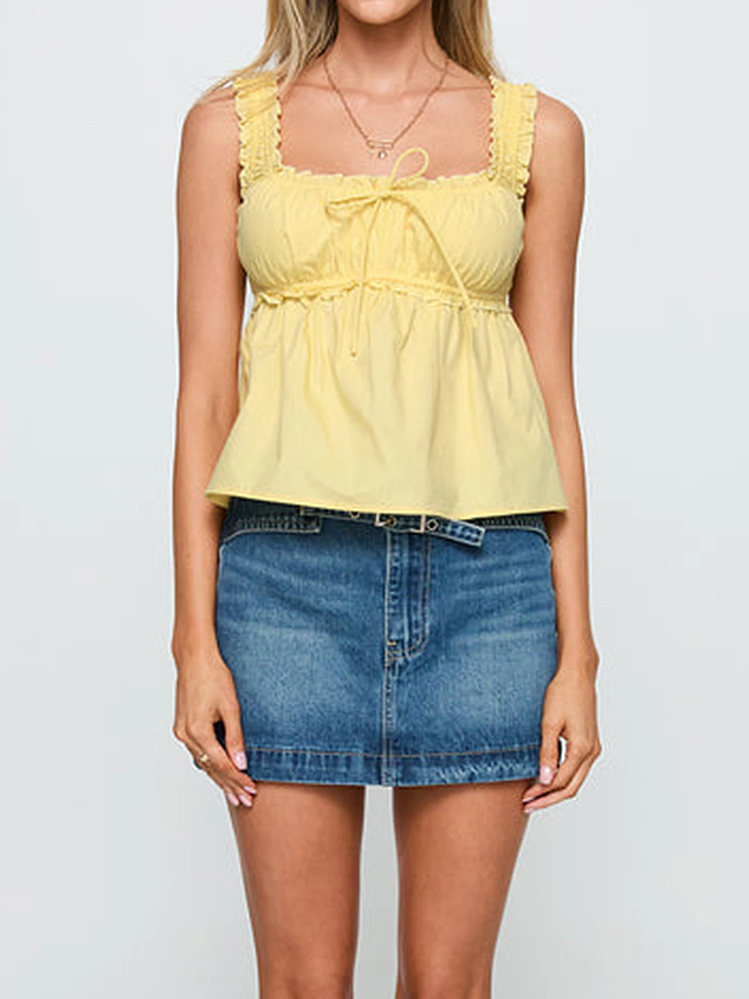 Cyflymder Women s Sleeveless Ruffle Trimmed Babydoll Tank Top with Bow Detail and Loose Hem - Chic Solid Camisole for Summer Style