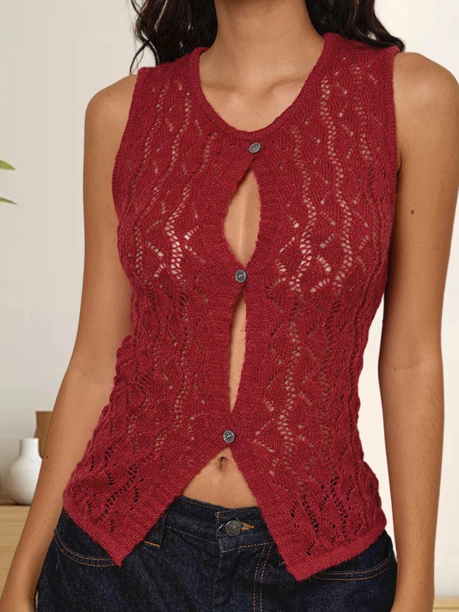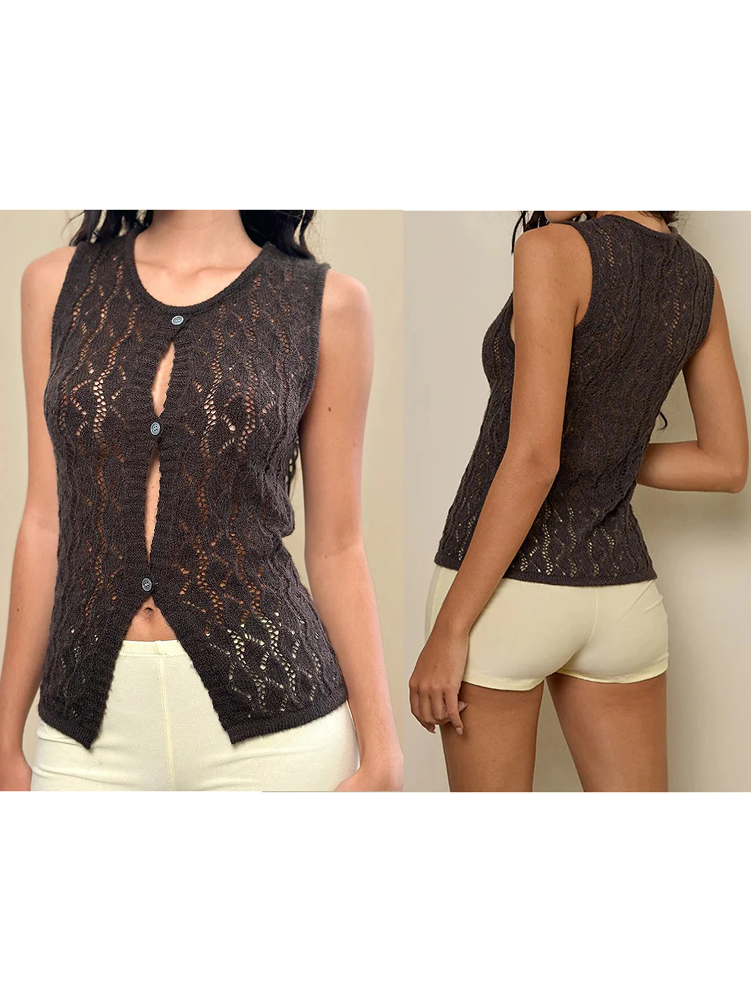 Cyflymder Women s Sleeveless V-Neck Knit Top with Button Detail Solid Color Fit Casual Tank Vest Summer Fashion Blouse