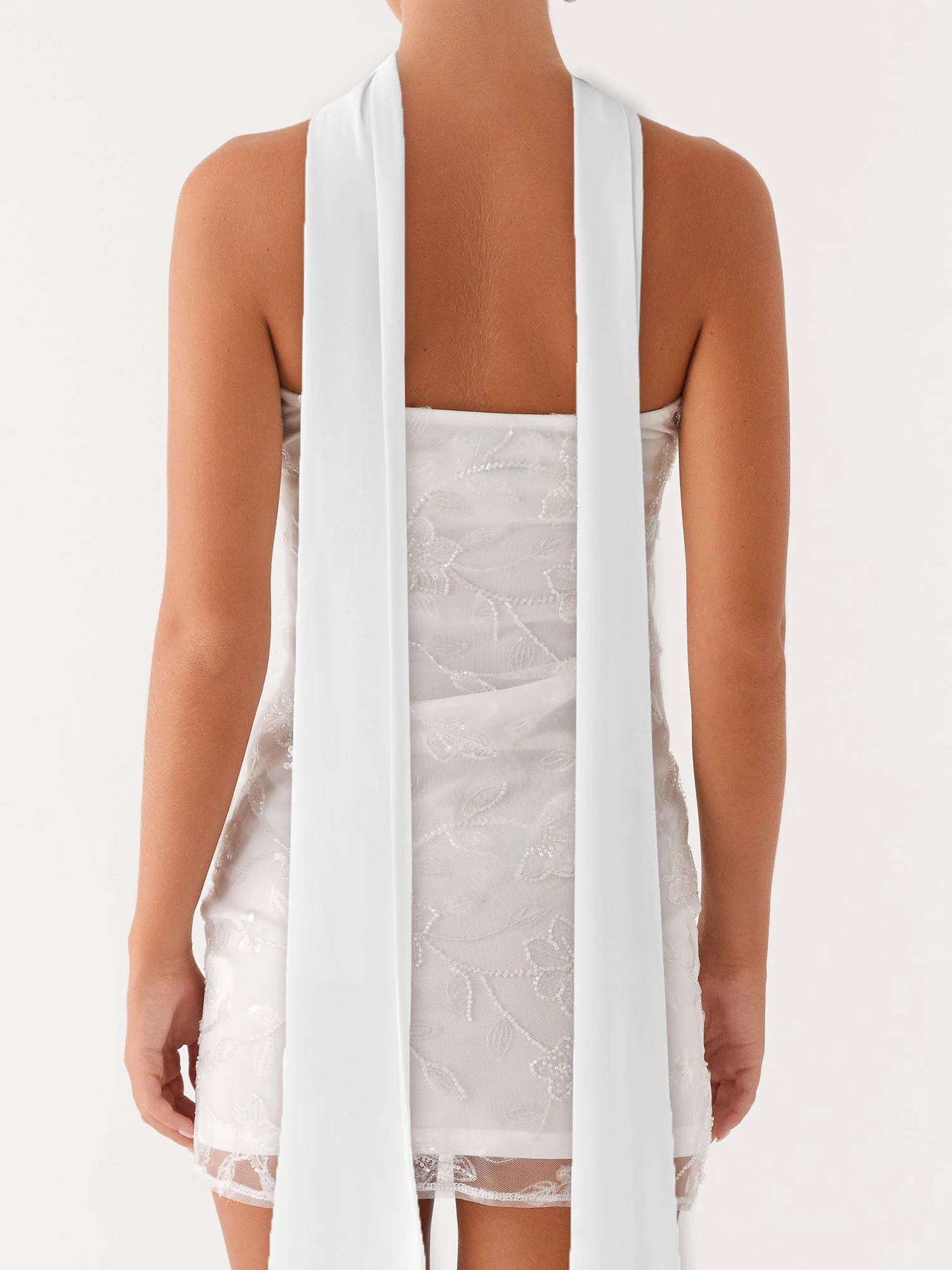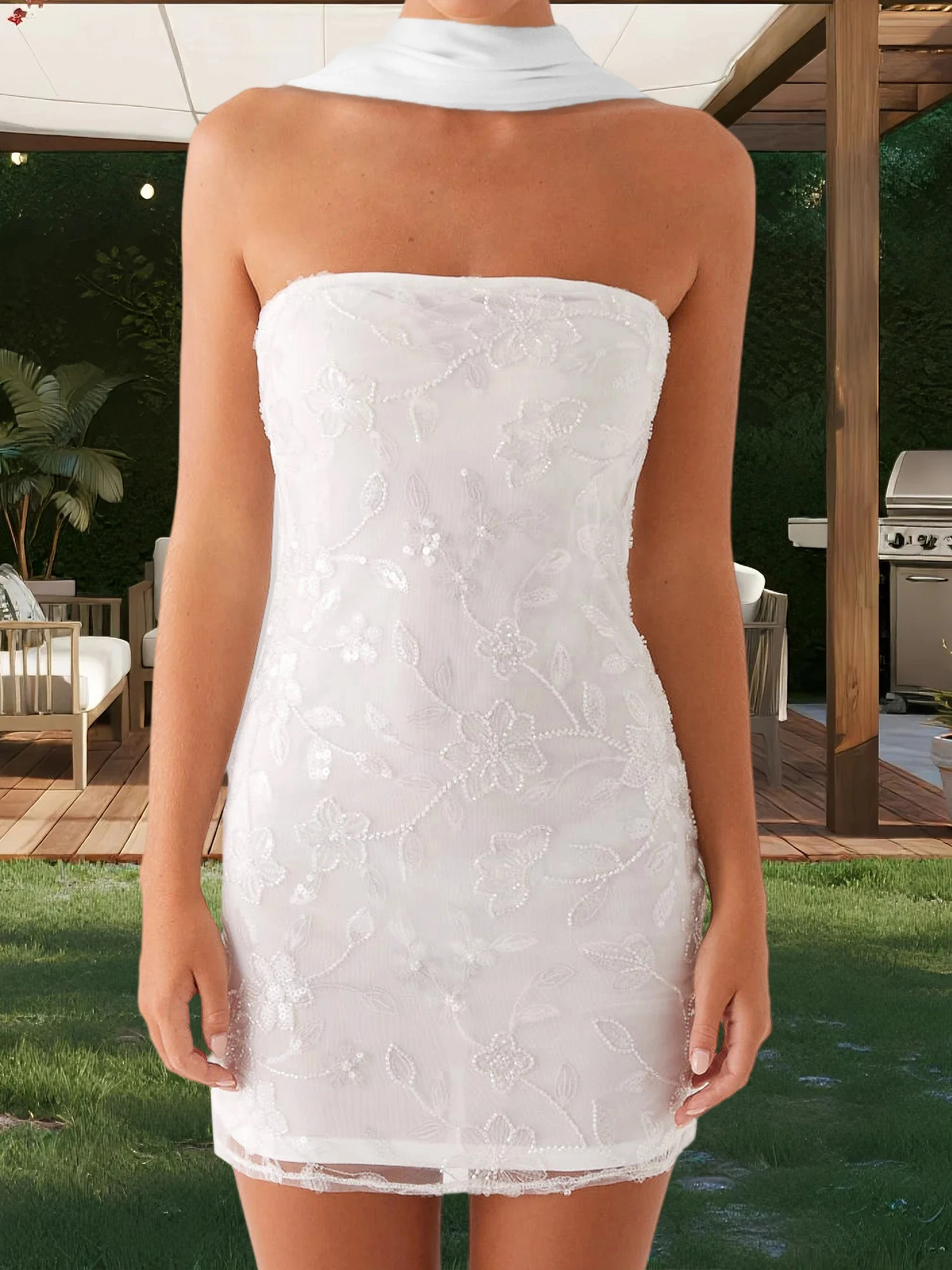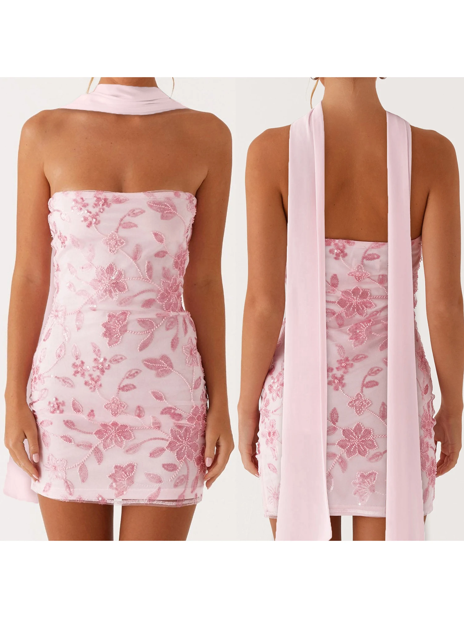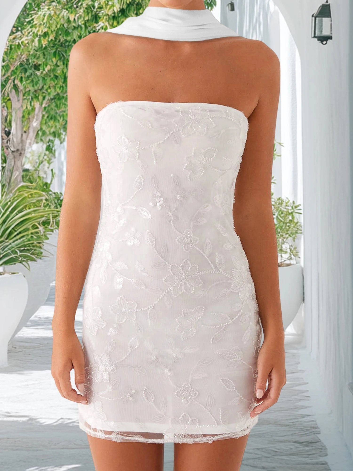 Cyflymder Women s Summer Floral Embroidered Bandeau Dress with Off Shoulder Design and Matching Scarf for a Stylish Look