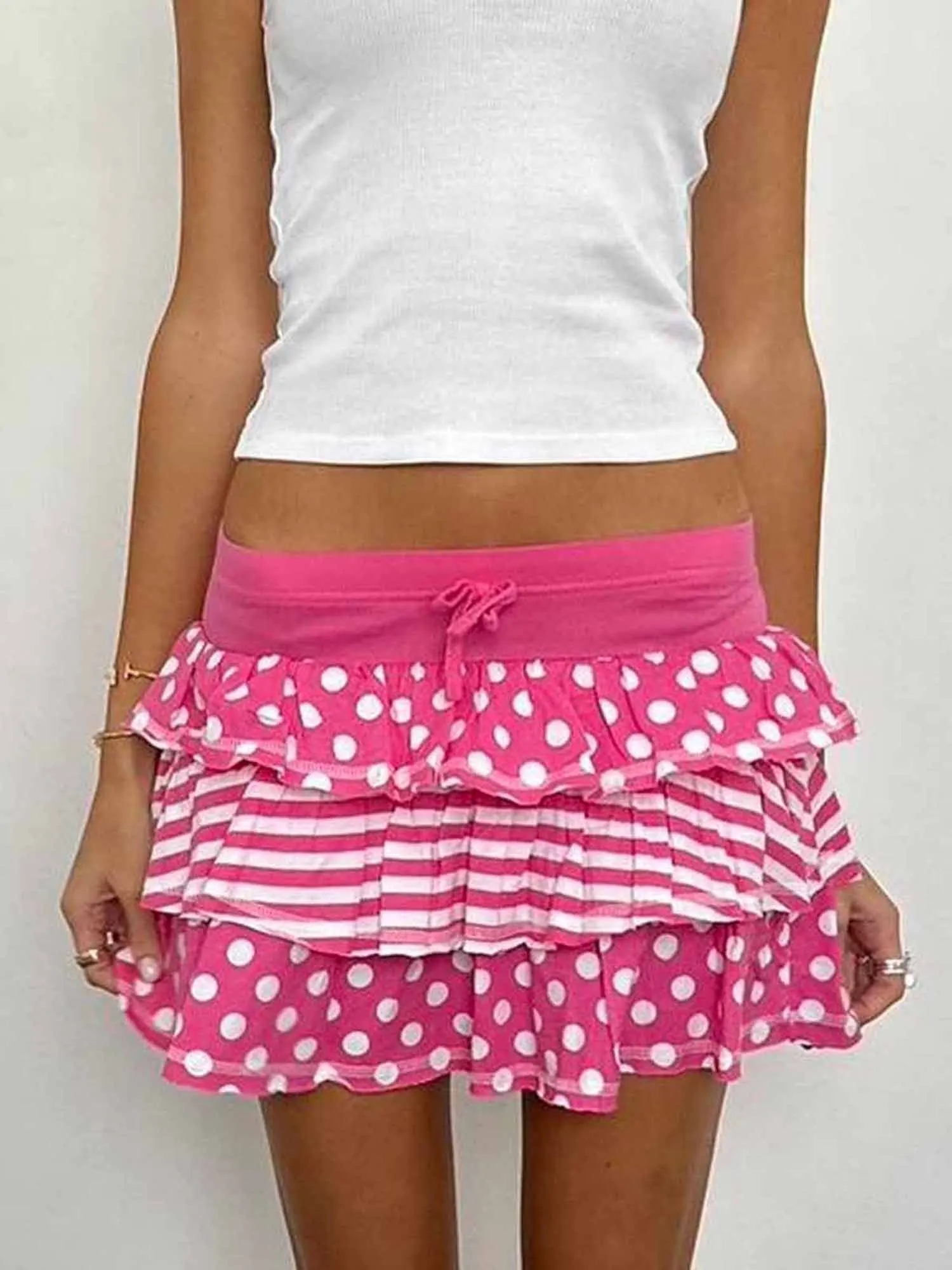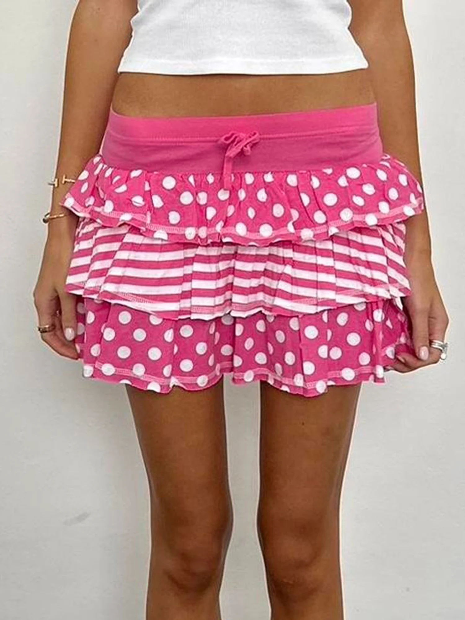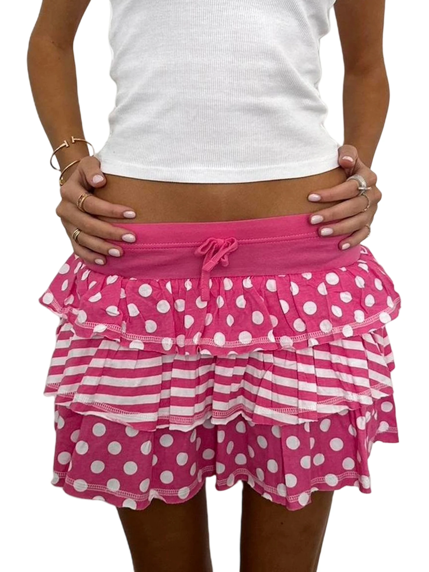 Cyflymder Women s Summer Mini Skirts Pink Dot Print Tiered Skirt for Daily Travel Parties