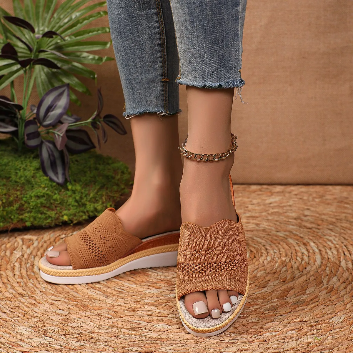 Cyflymder Women Sandals Elegant Woman Shoes With Low Heels Wedge Sandals Summer Mujer Peep Toe Platform Sandals Ladies Slippers