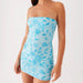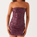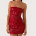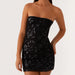 Cyflymder Women Sequin Beaded Strapless Dress Y2K Sparkle Glitter Tube Mini Dress Rhinestone Floral Sundresses Beach Night Dress