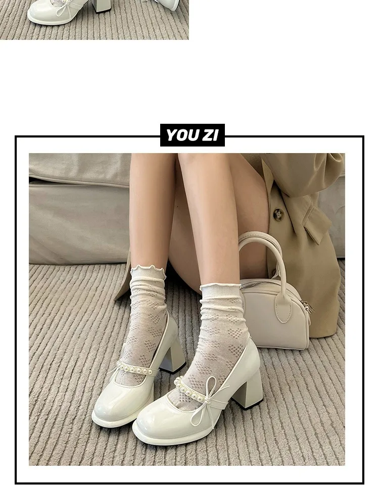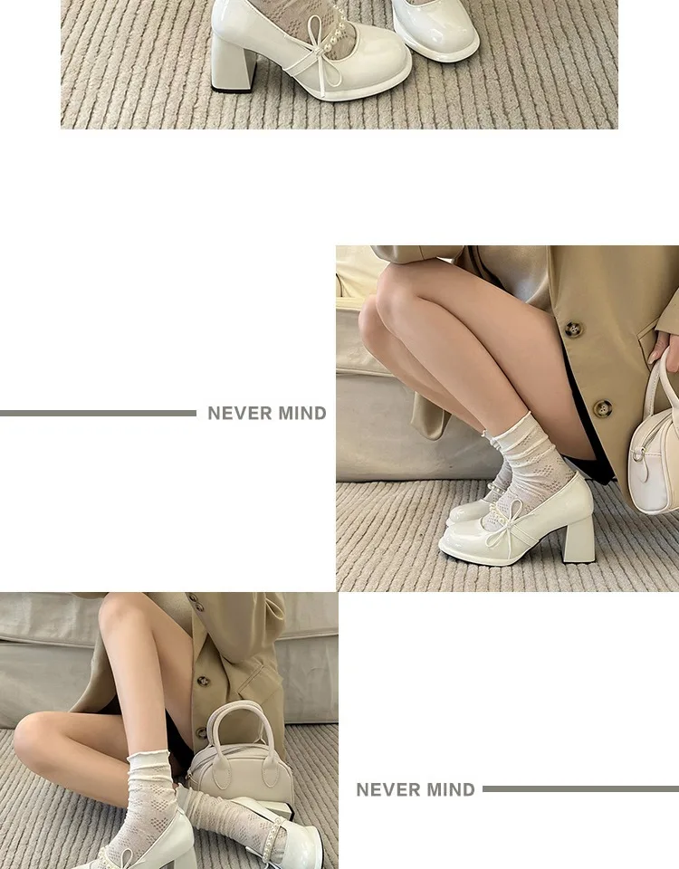 Cyflymder Women Shoes 2025 Spring Pumps Summer High Heels Mary Jane Sandals Ladies Latest Sweet Lolita Beige Bow African New Brief