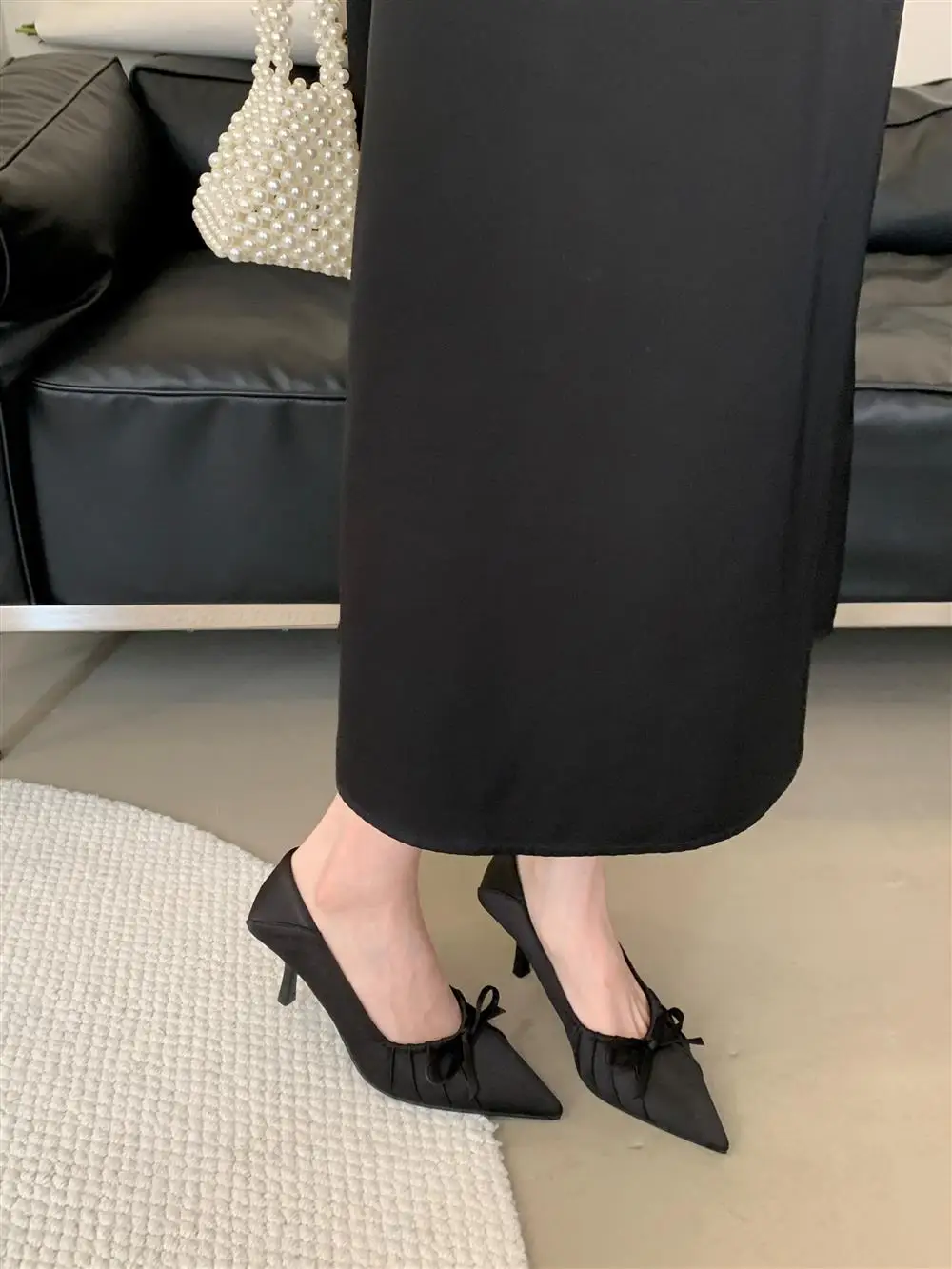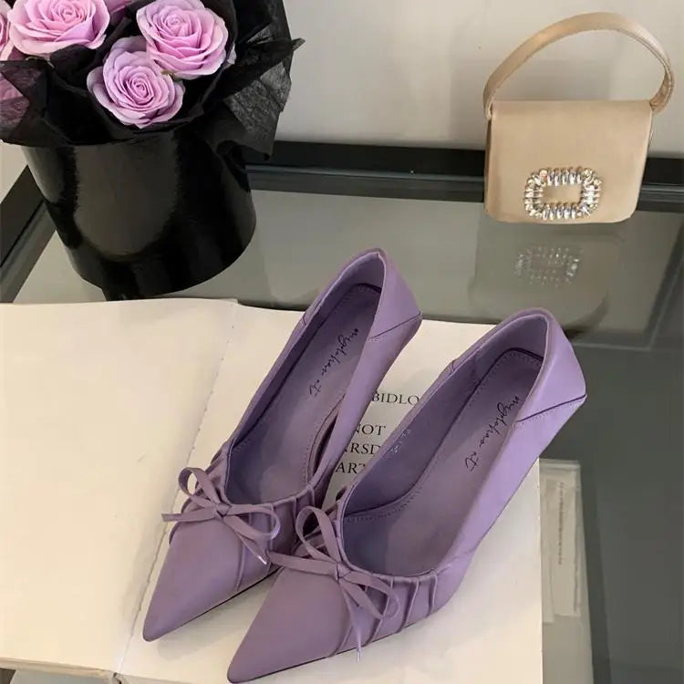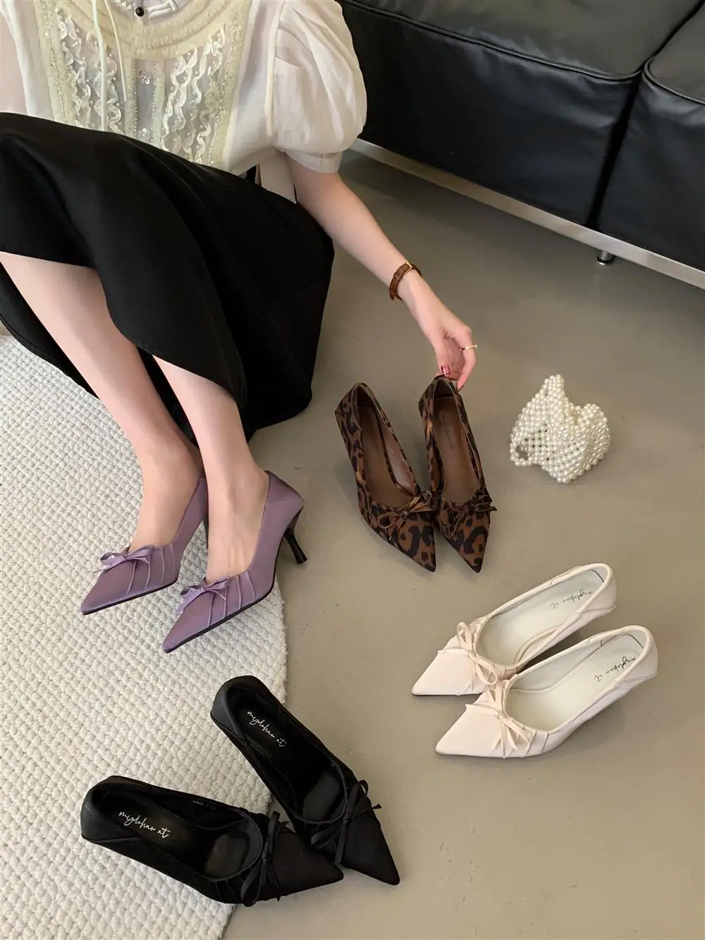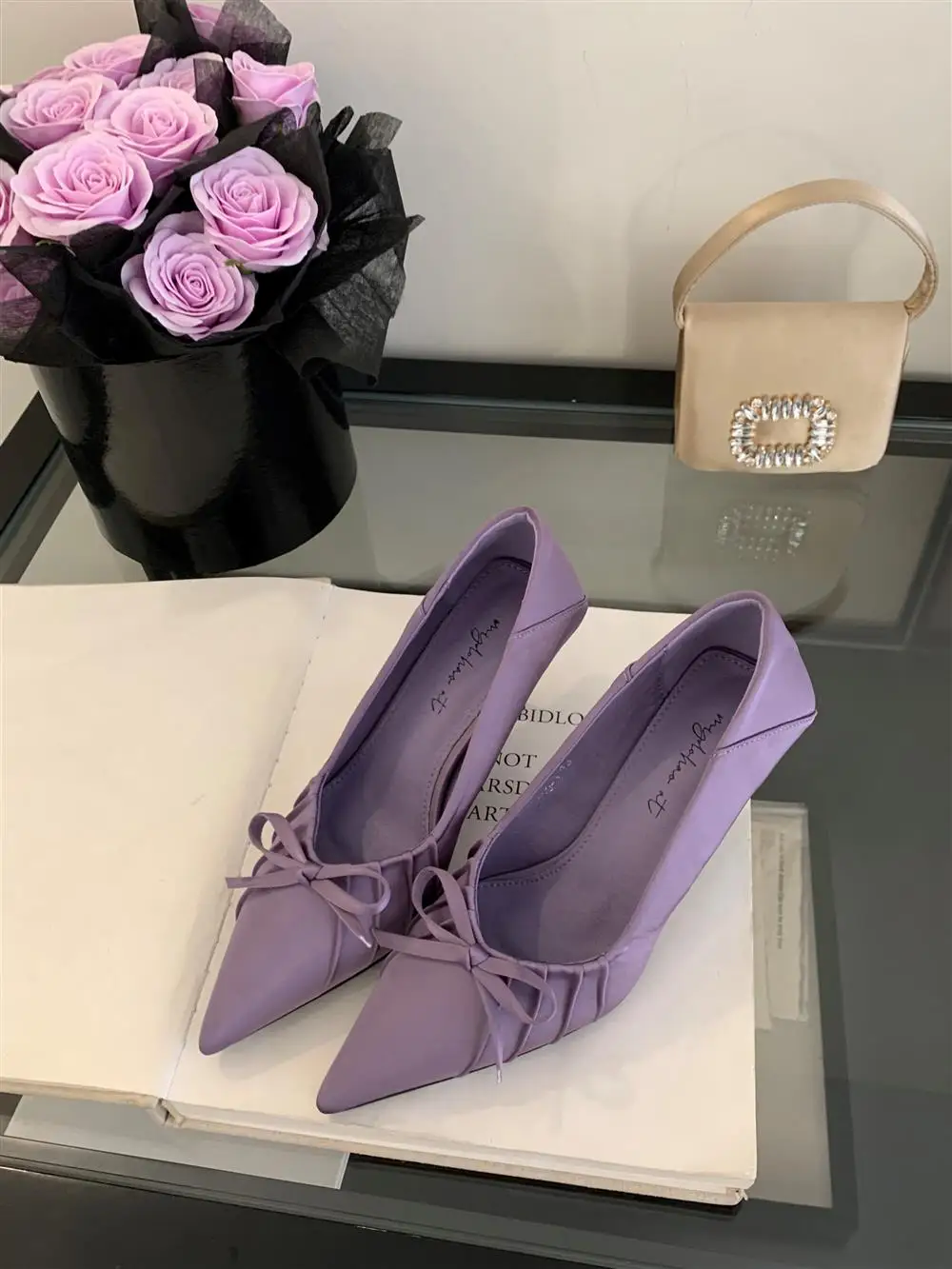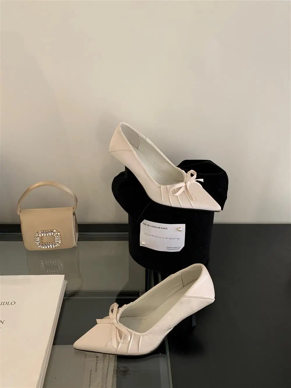 Cyflymder Women Shoes Orange Sandals Ladies High Heels Stiletto Pointed Pumps Shallow Mouth White African Sheepskin Fine Retro Satin Toe B
