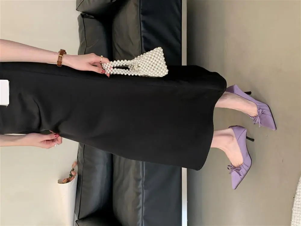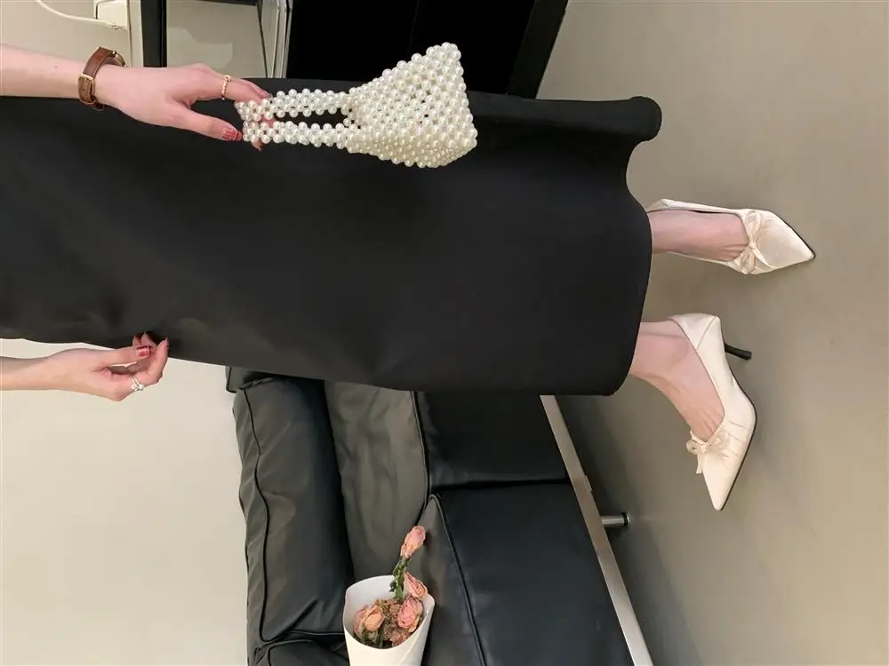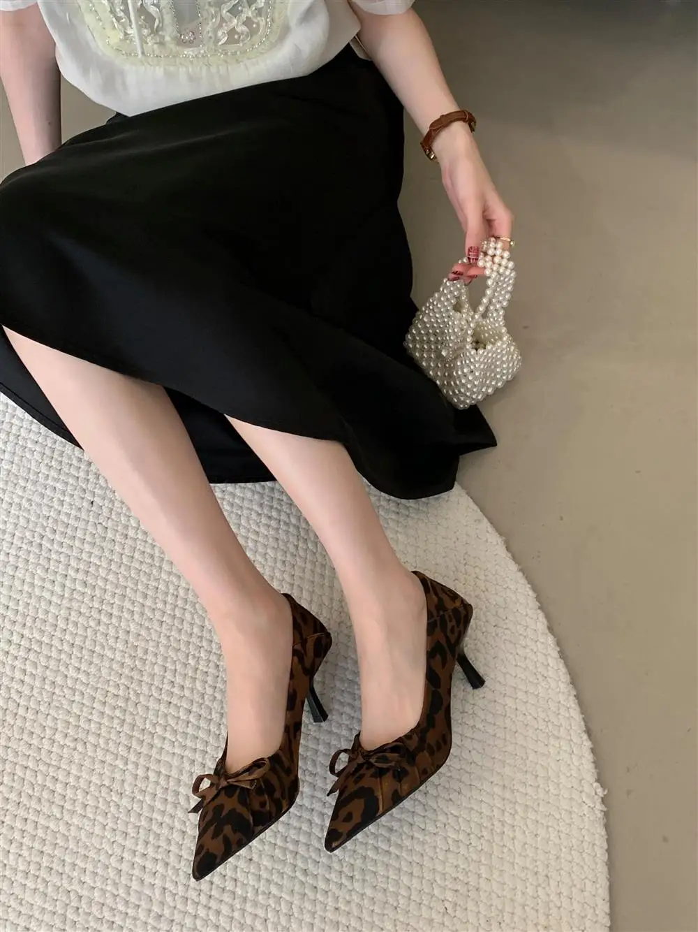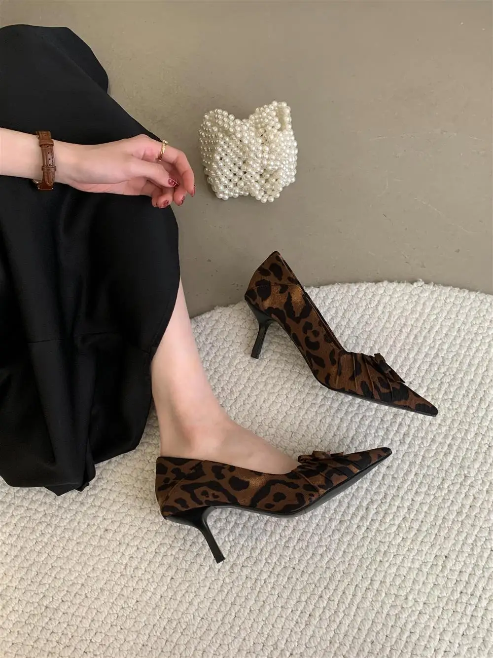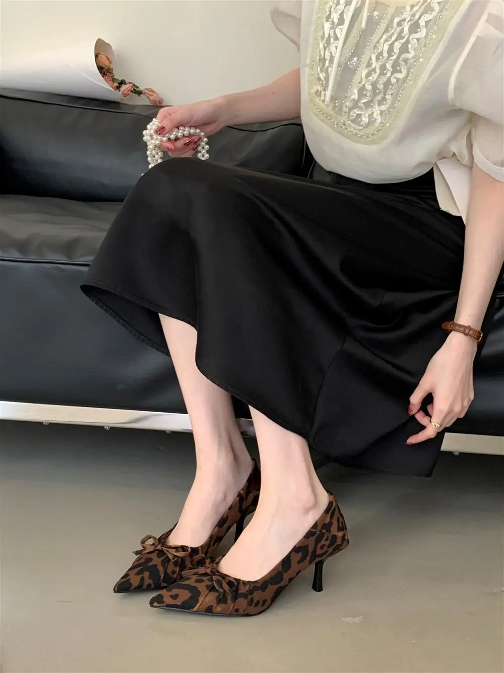Cyflymder Women Shoes Orange Sandals Ladies High Heels Stiletto Pointed Pumps Shallow Mouth White African Sheepskin Fine Retro Satin Toe B