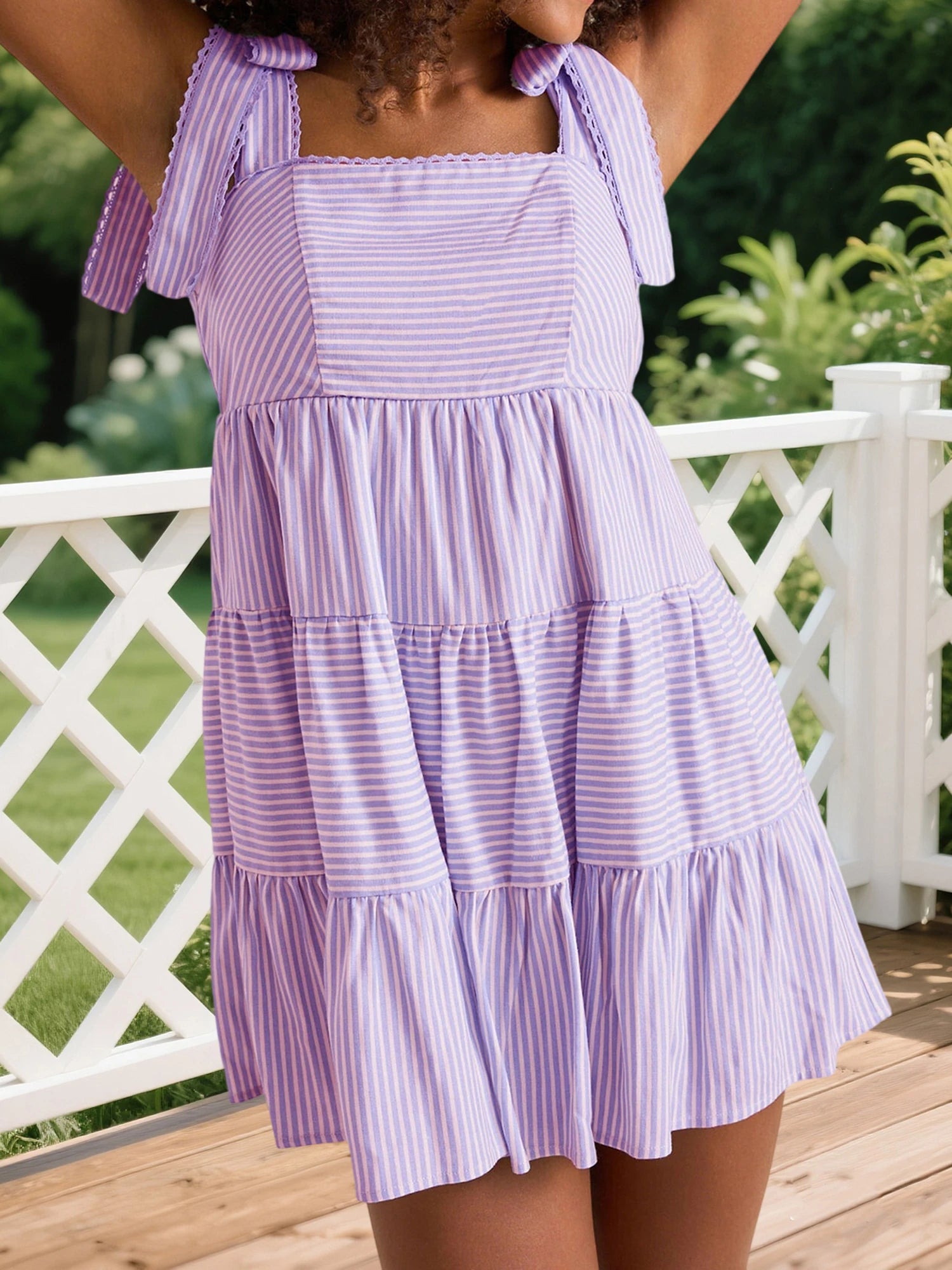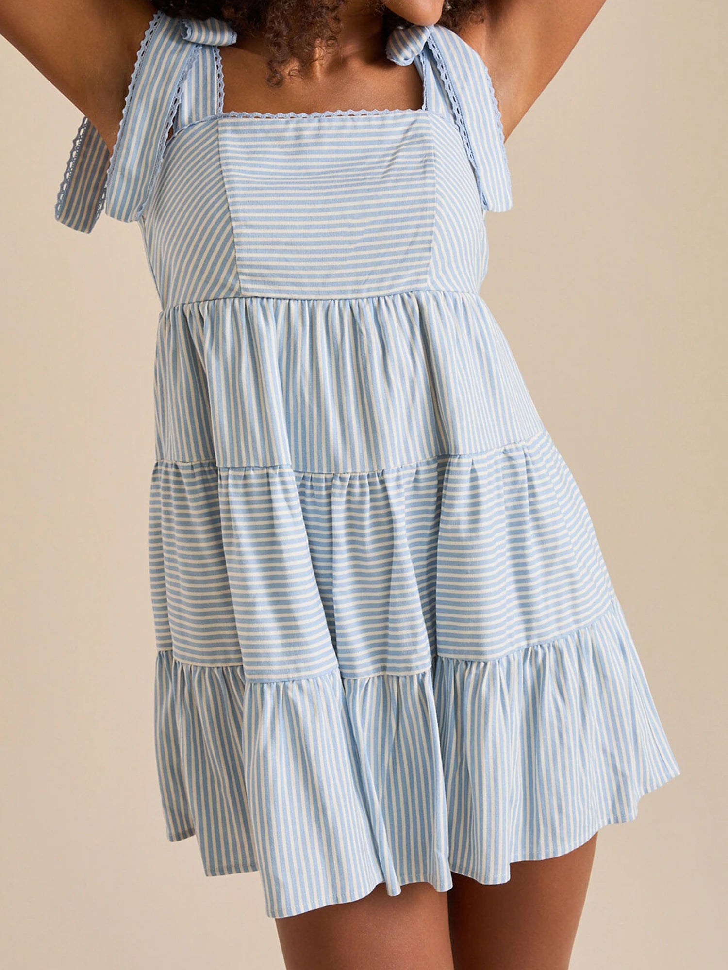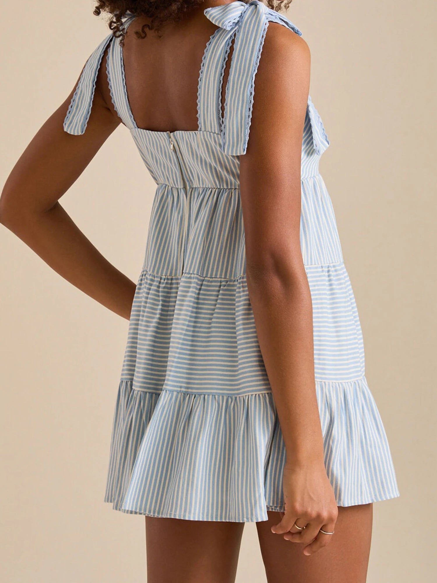 Cyflymder Women Sleeveless Mini Dress Casual Summer Tie up Strap Striped Print A-Line Party Dress for Beach Club Streetwear