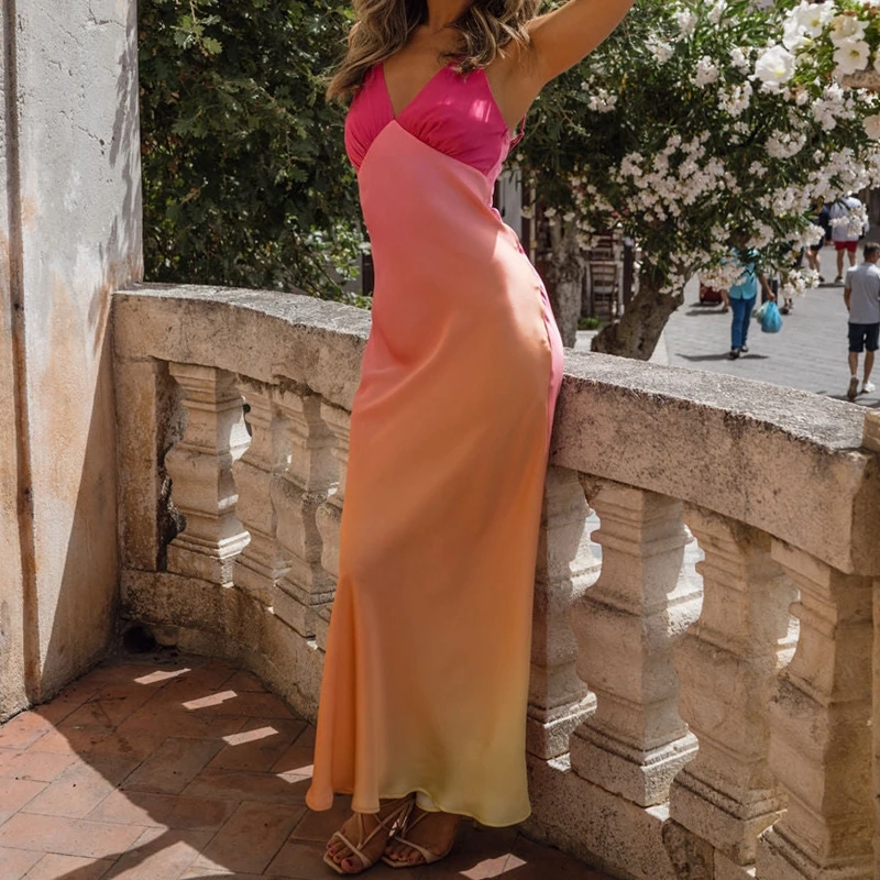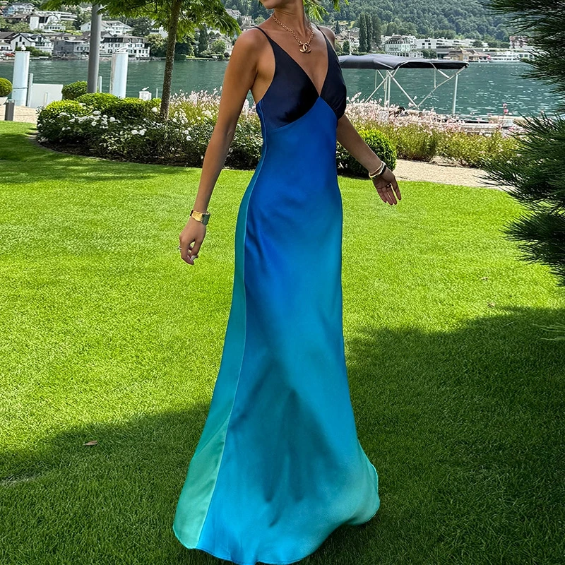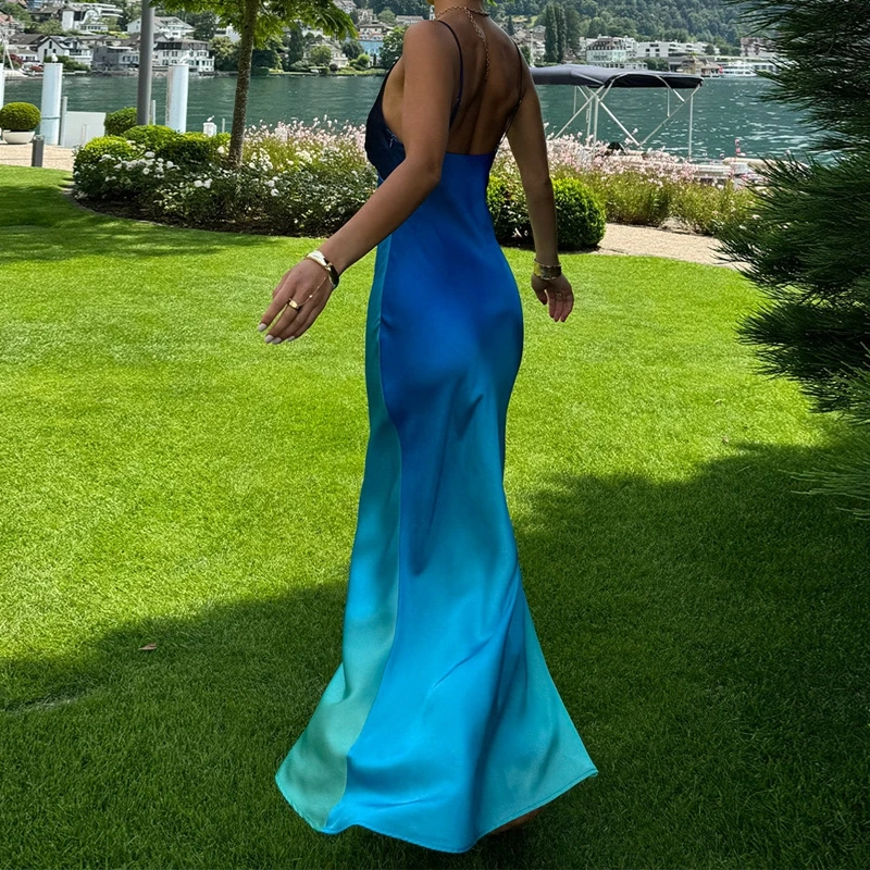 Cyflymder Women Spaghetti Strap Maxi Dress Sexy V Neck Cutout Bodycon Long Dress Backless Party Cocktail Dress Bridesmaid